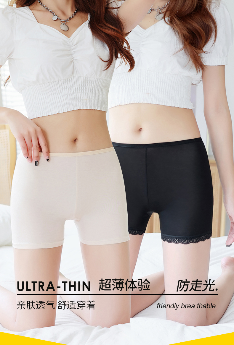 | 产品名称 : | 冰丝安全裤女夏薄款防走光不卷边可外穿大码保险蕾丝无痕打底短裤 |