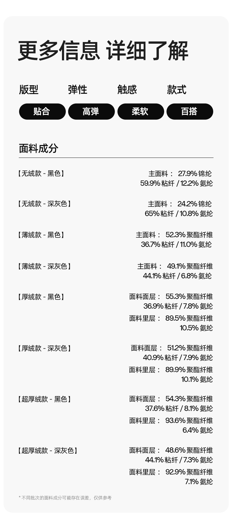 | 颜色分类: | 尝鲜价【倍暖】 经典黑 (适合-15-0°C) 尝鲜价【倍暖】 高级灰 (适合-15-0°C) 尝鲜价 【舒暖】经典黑 (适合0-15°C) 尝鲜价 【舒暖】高级灰 (适合0-15°C) 尝鲜价 【轻暖】 经典黑(适合10-22°C) 尝鲜价【轻暖】 高级灰 (适合10-22°C) 尝鲜价【无绒】经典黑 (适合20-28°C) 尝鲜价 【无绒】高级灰(适合20-28°C) 更优惠【舒暖组合装】经典黑+高级灰 更优惠【轻暖组合装】经典黑+高级灰 更优惠【轻暖组合装】经典黑*2 随心搭【轻暖+舒暖】经典黑 更优惠【无绒组合装】经典黑*2 更优惠【无绒组合装】经典黑+高级灰 随心搭【无绒+舒暖】经典黑 随心搭【无绒+轻暖】经典黑 随心搭【无绒+轻暖】高级灰 |