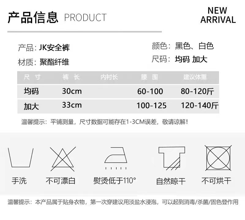 | 产品名称 : | 安全裤夏防走光薄款jk可外穿白色少女花苞保险裤短裤南瓜裤打底裤 |