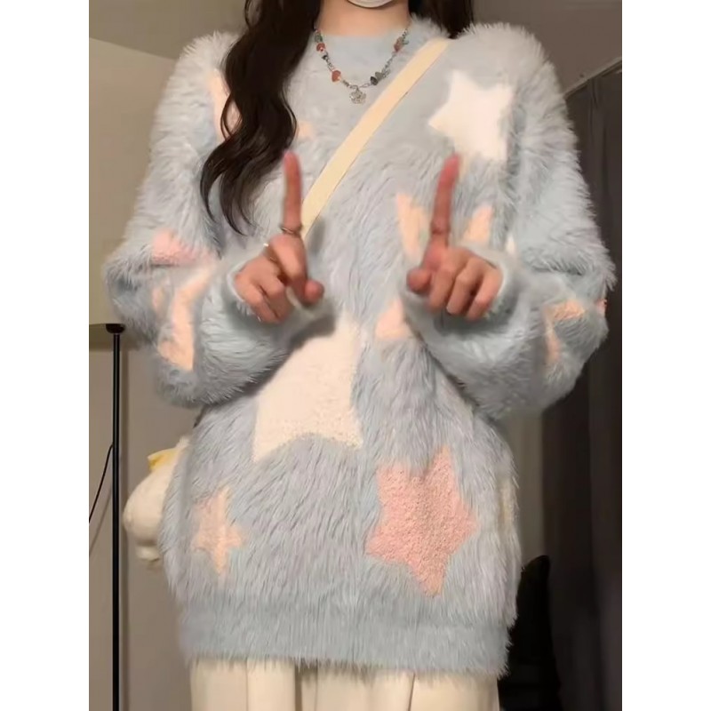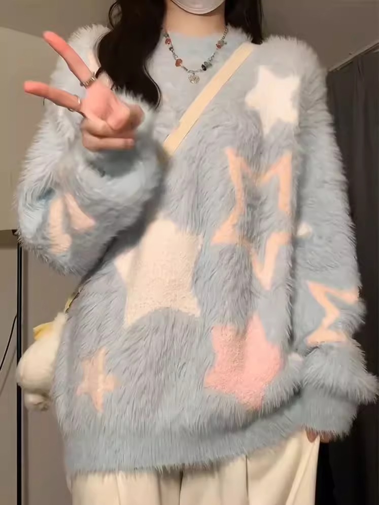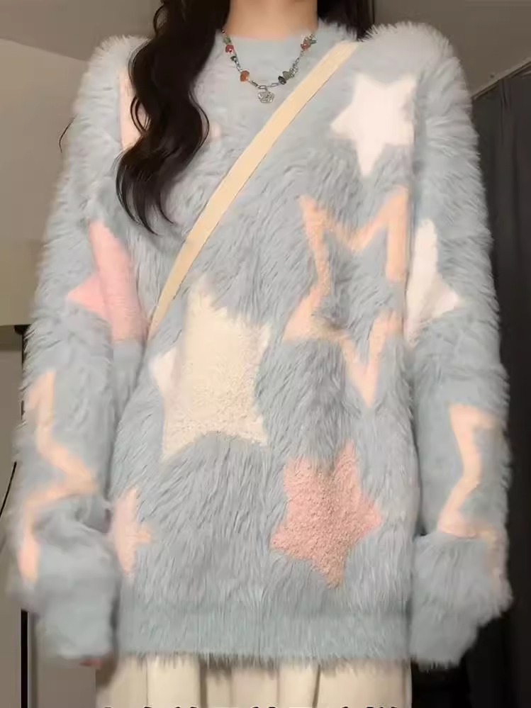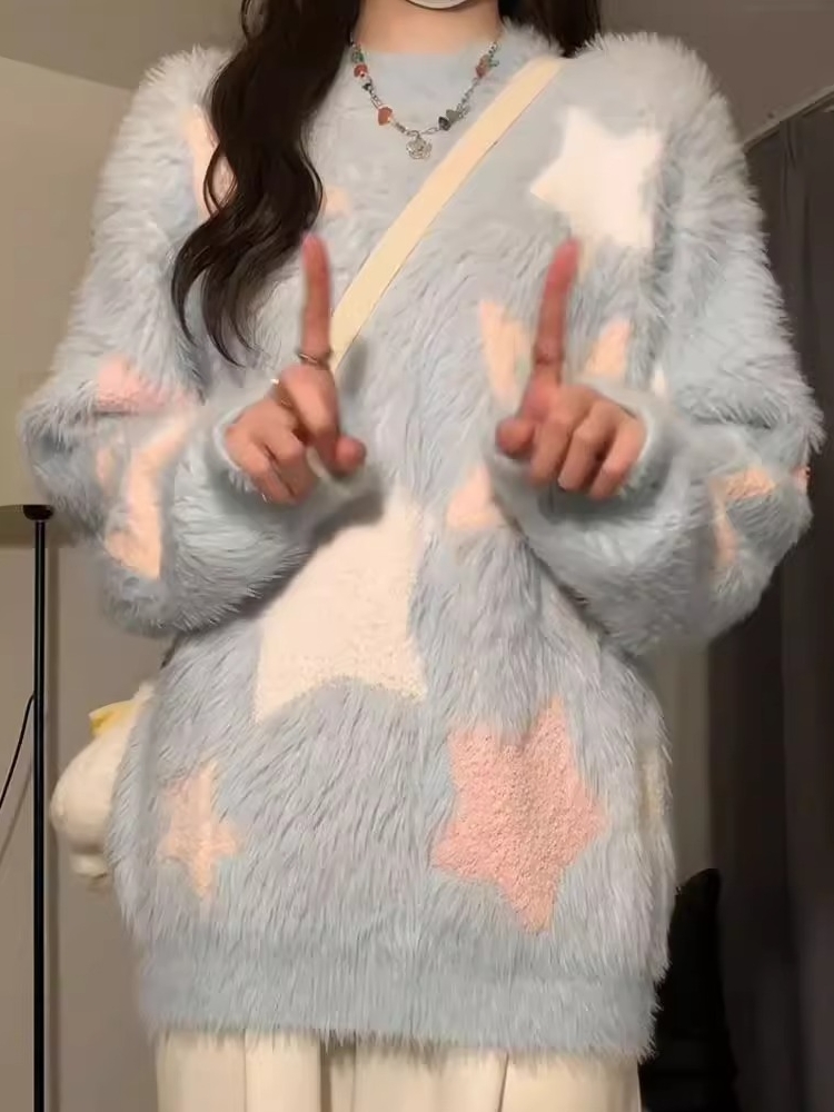 | 产品名称 : | 星星软糯慵懒风蓝色毛衣女秋冬水貂毛套头圆领加厚上衣宽松显瘦 |