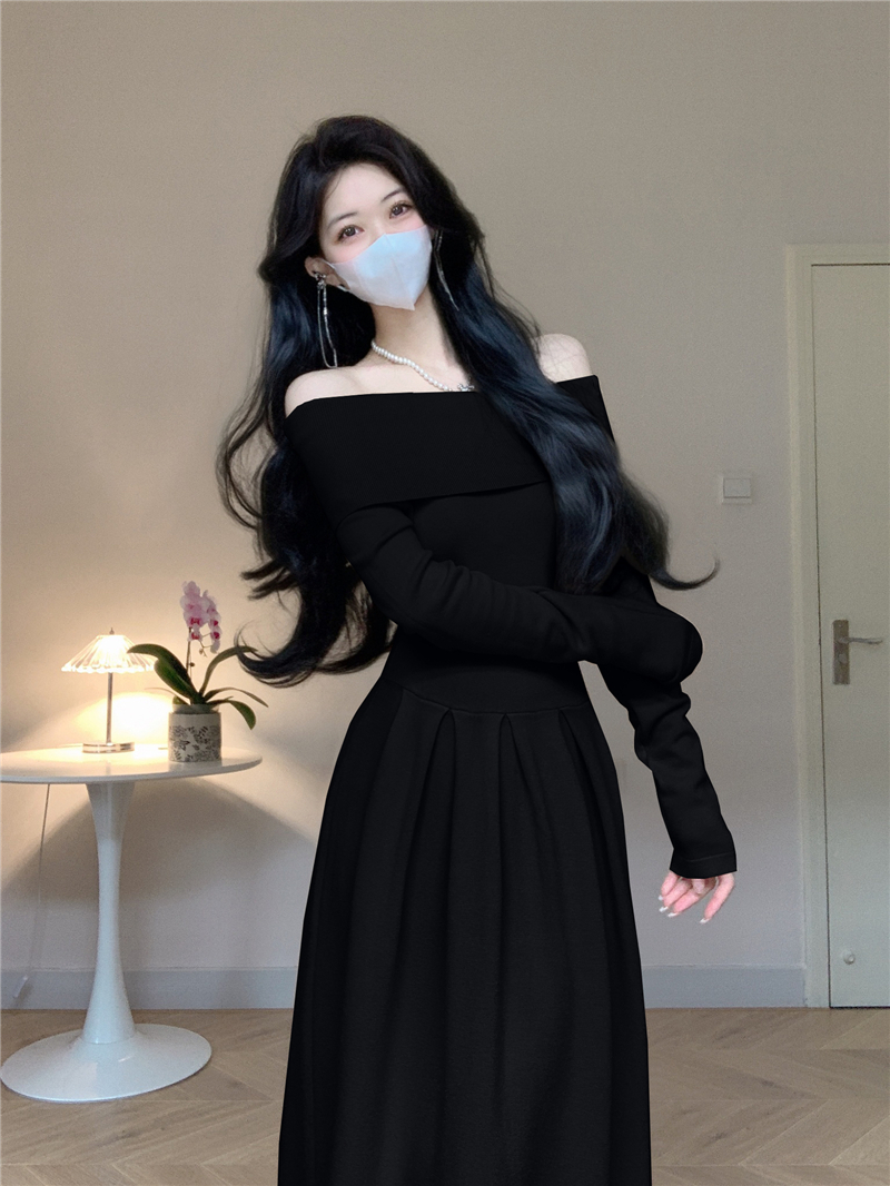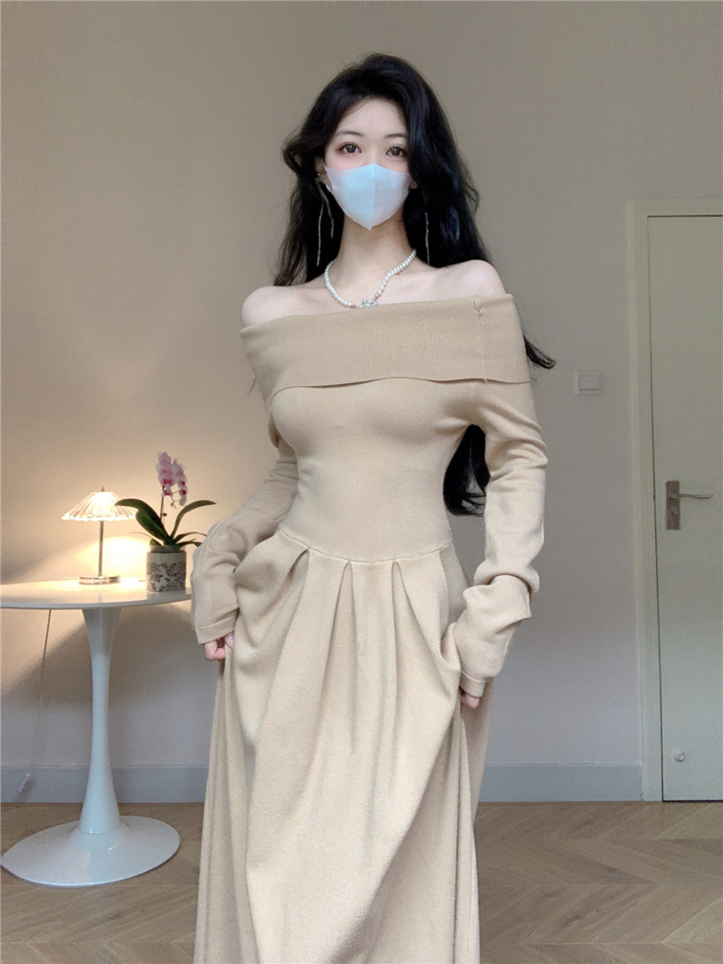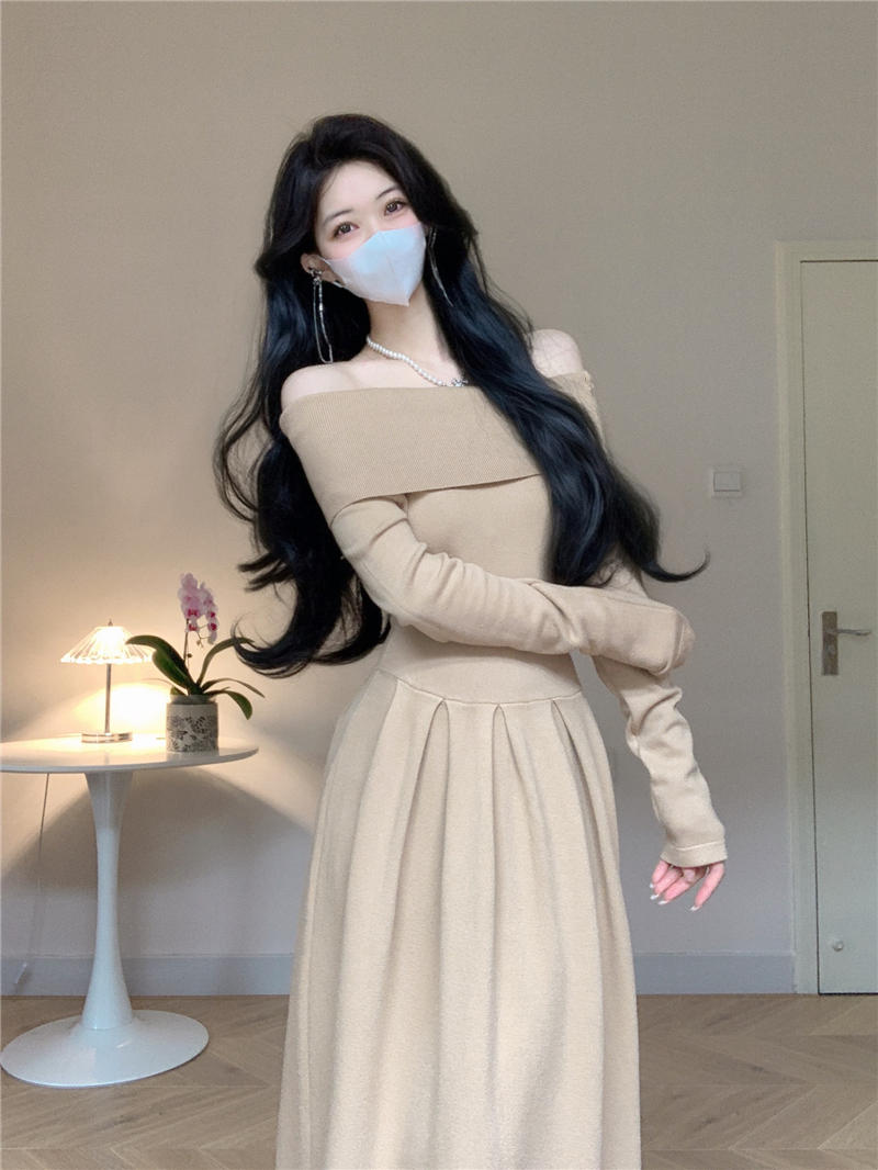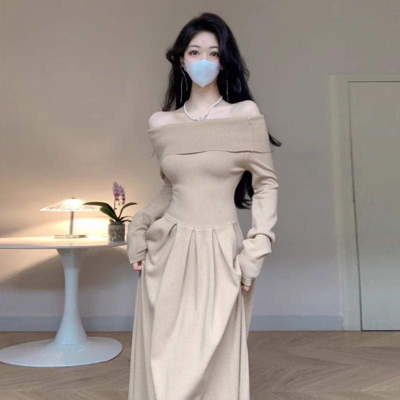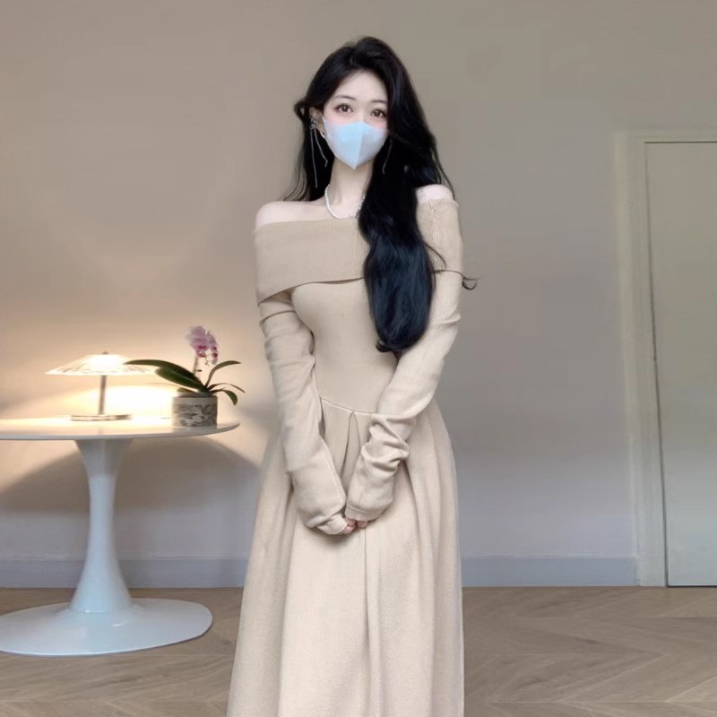 | 产品名称 : | 法式一字肩长袖针织连衣裙女早秋冬季小个子气质高级感收腰长裙子 |