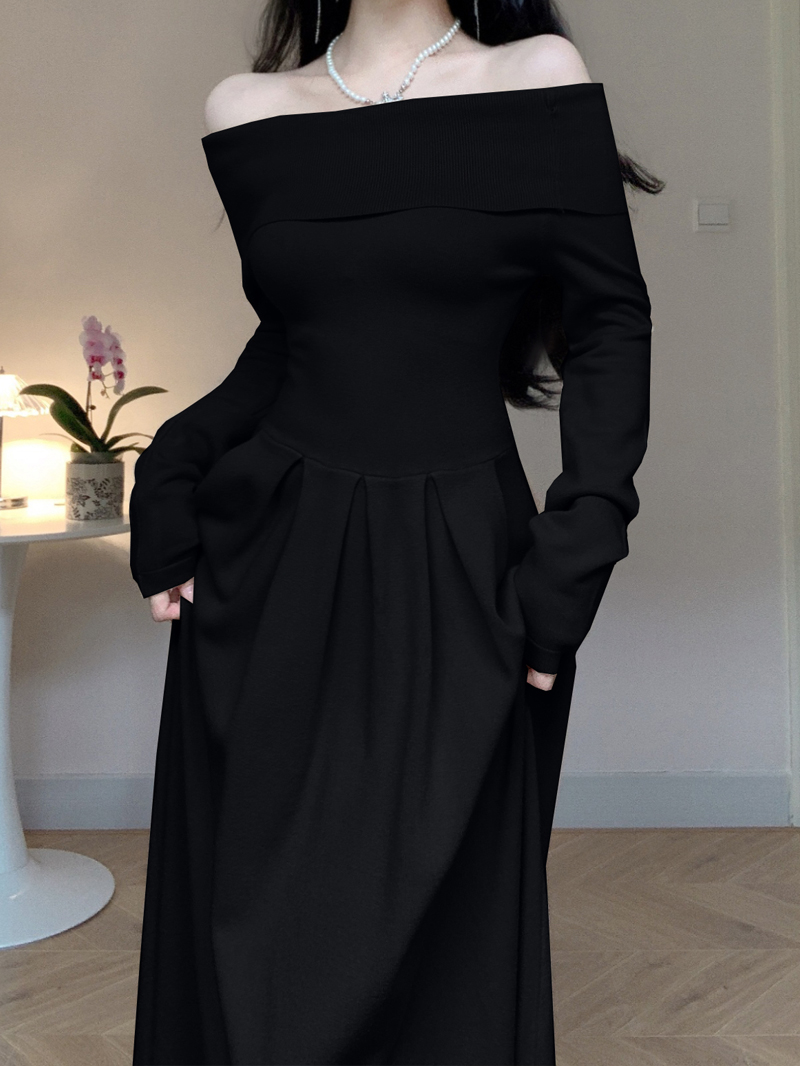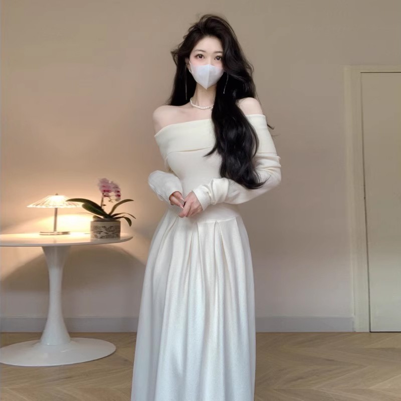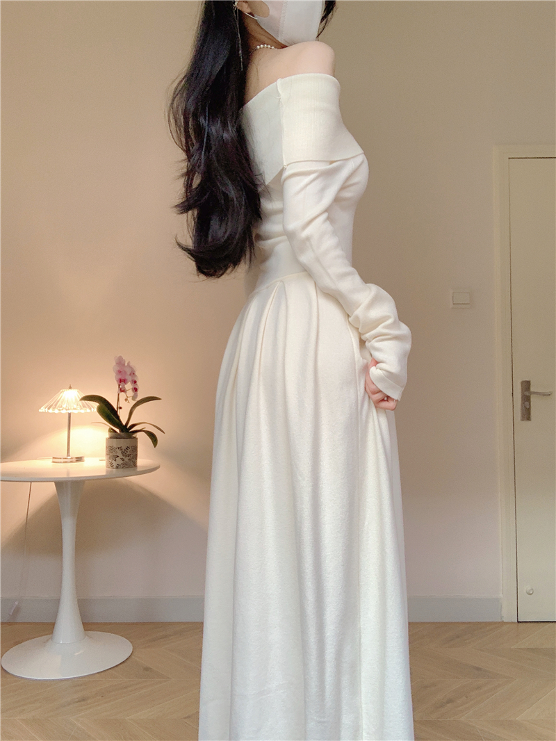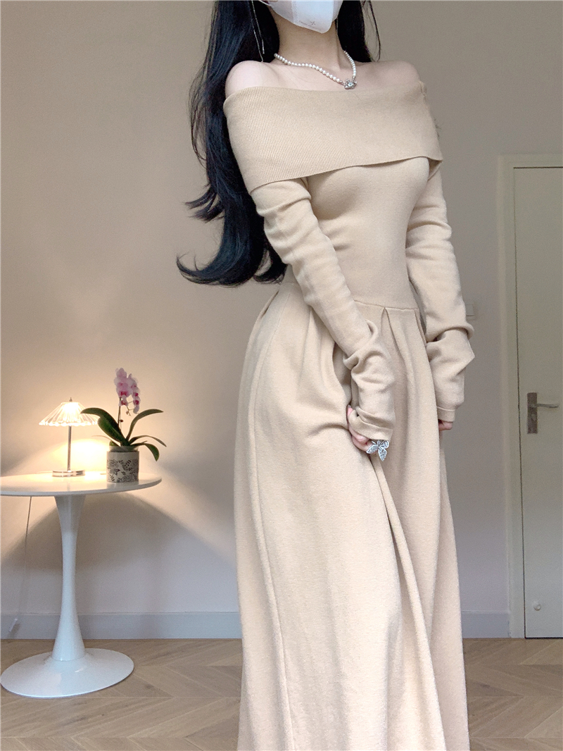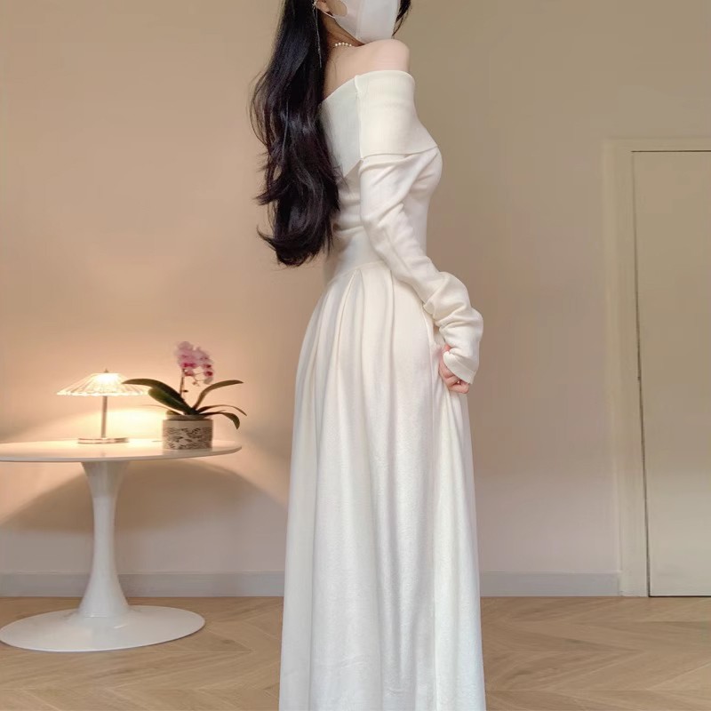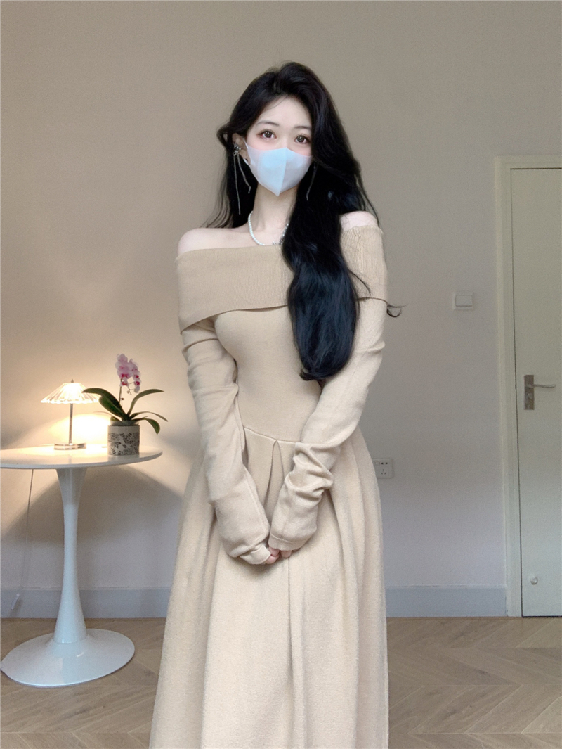| 产品名称 : | 法式一字肩长袖针织连衣裙女早秋冬季小个子气质高级感收腰长裙子 |