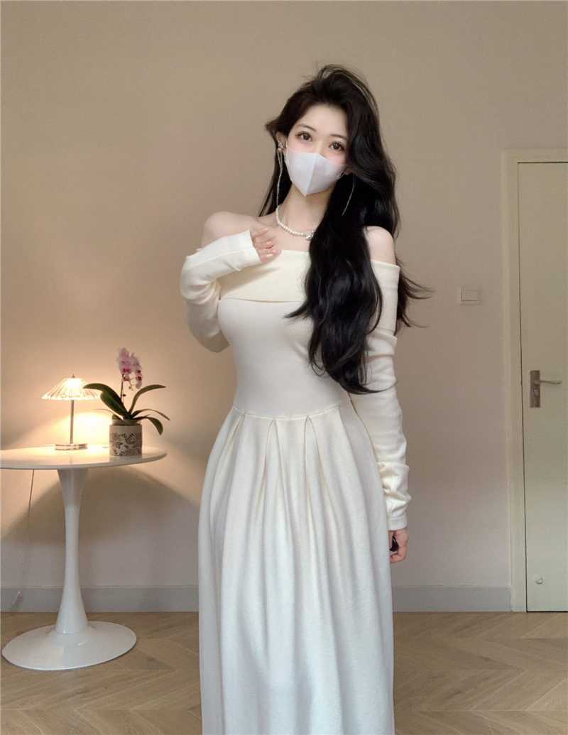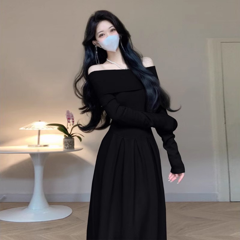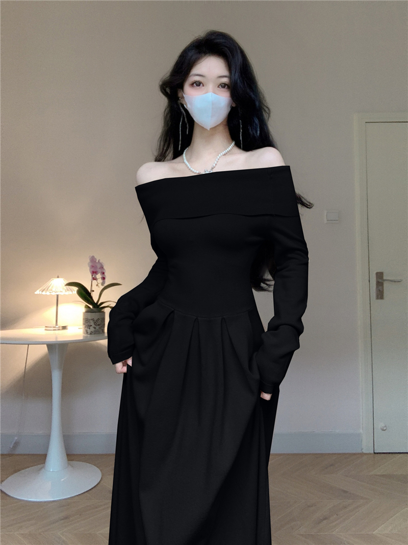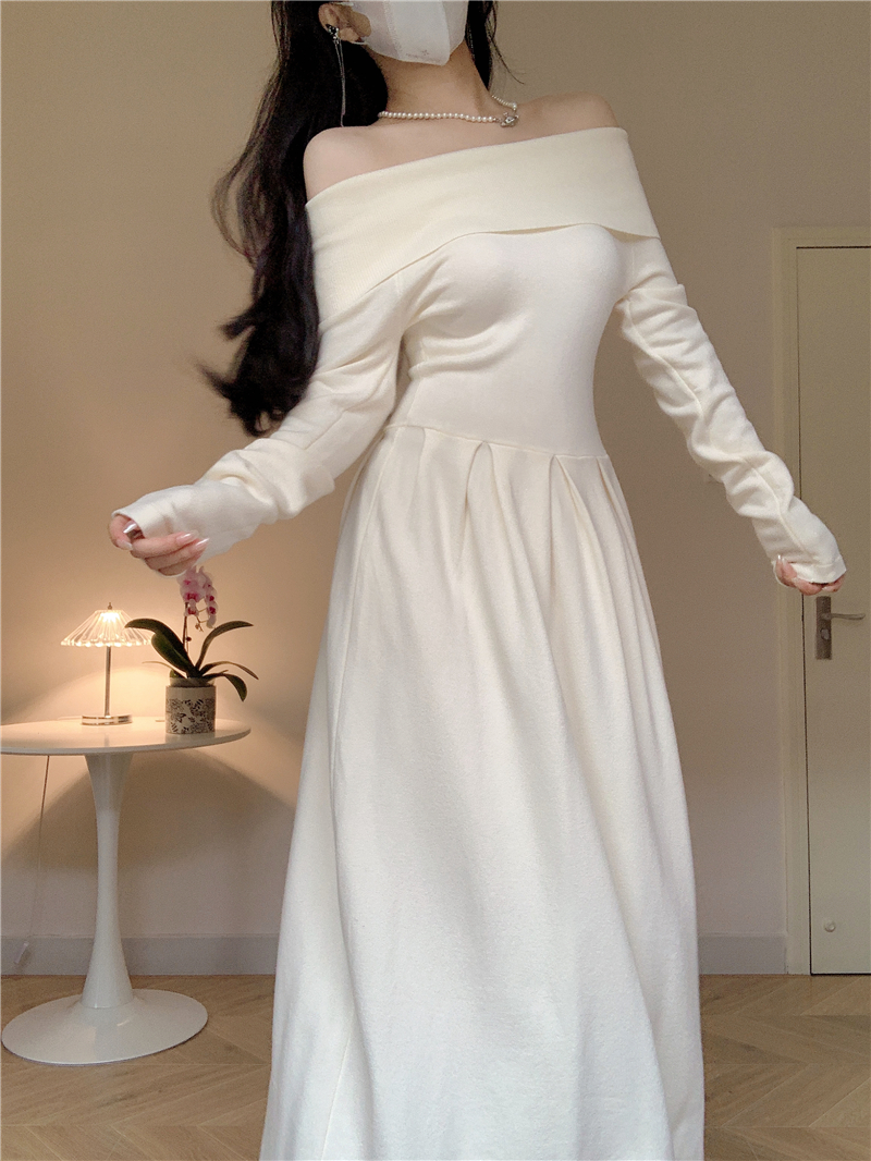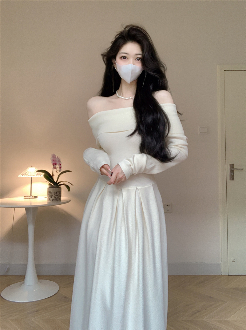 | 产品名称 : | 法式一字肩长袖针织连衣裙女早秋冬季小个子气质高级感收腰长裙子 |