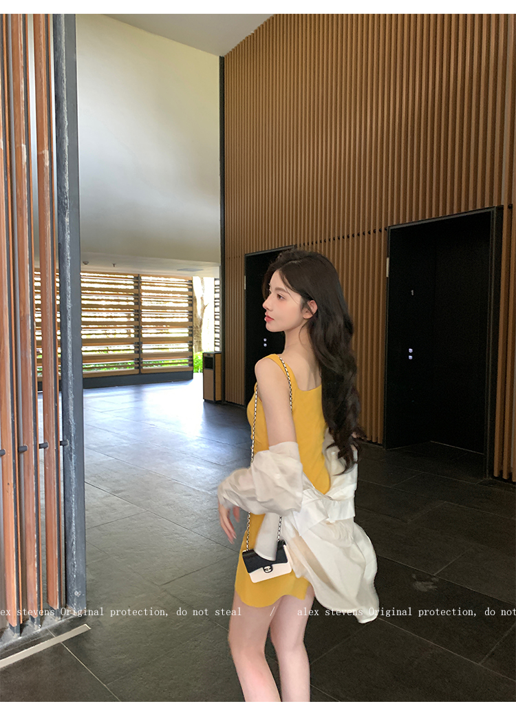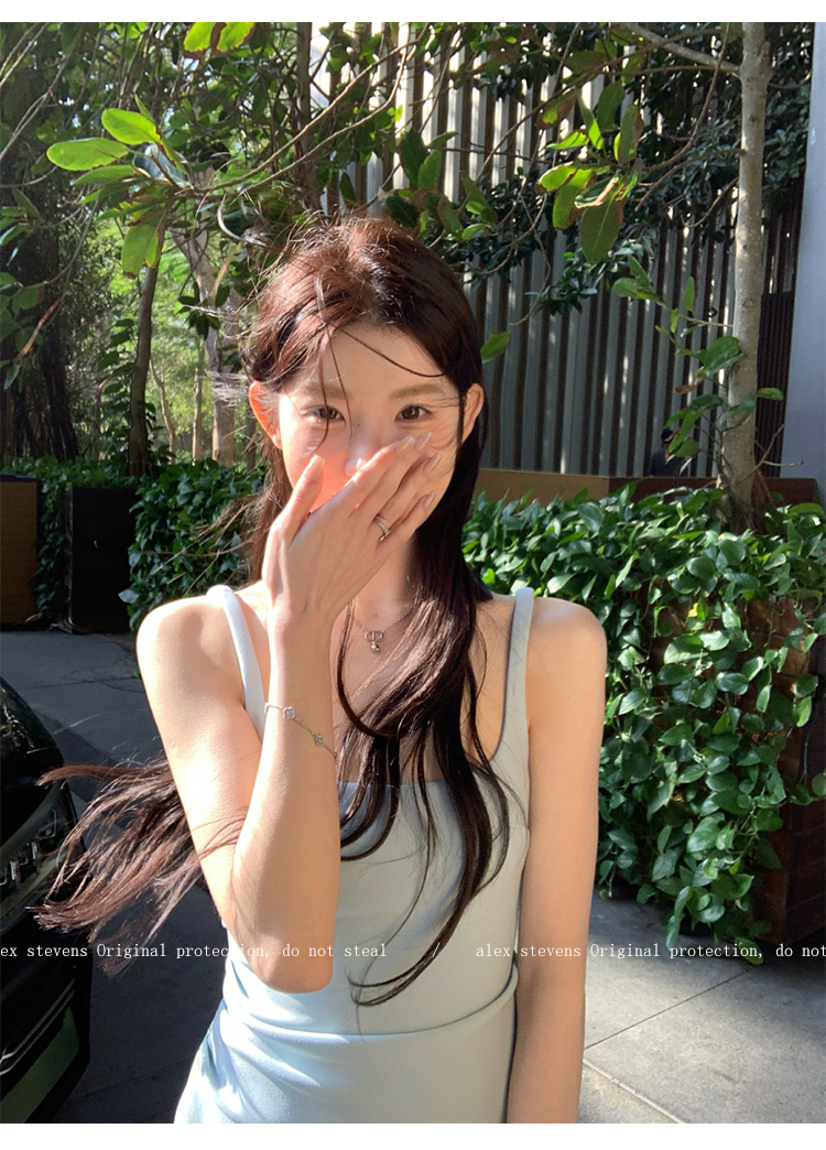 背心款的肩部带有一点宽度,凸显手臂线条流畅纤细,更显秀气