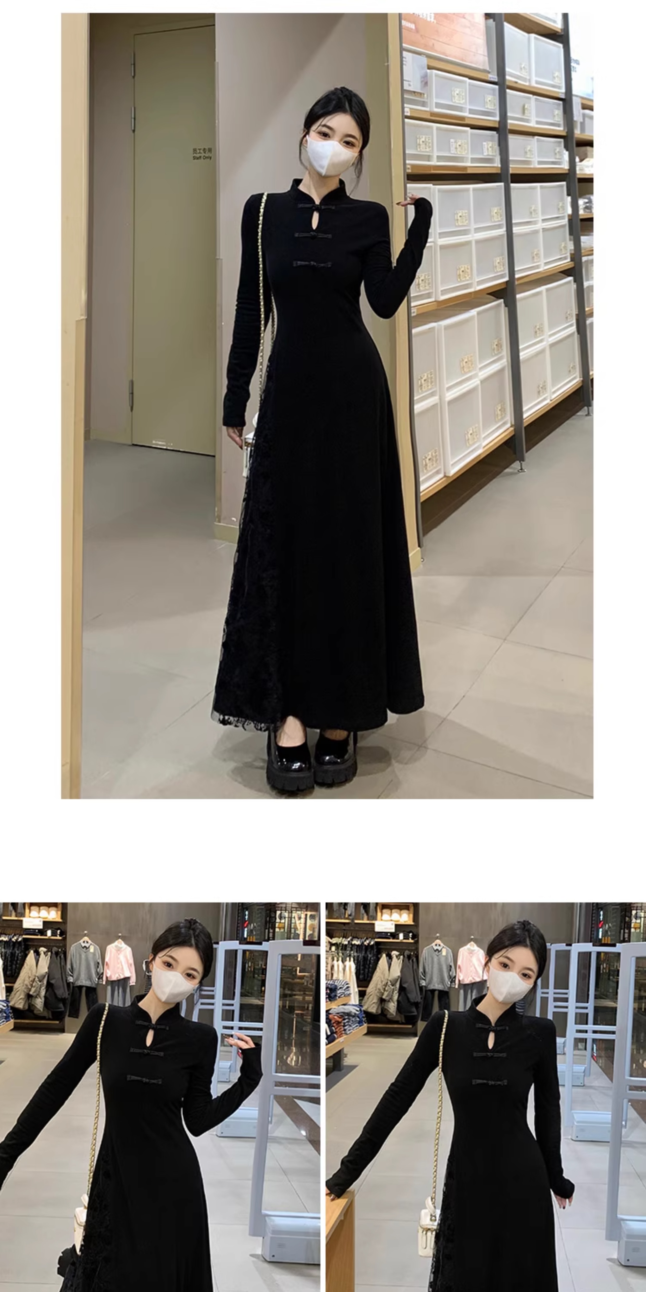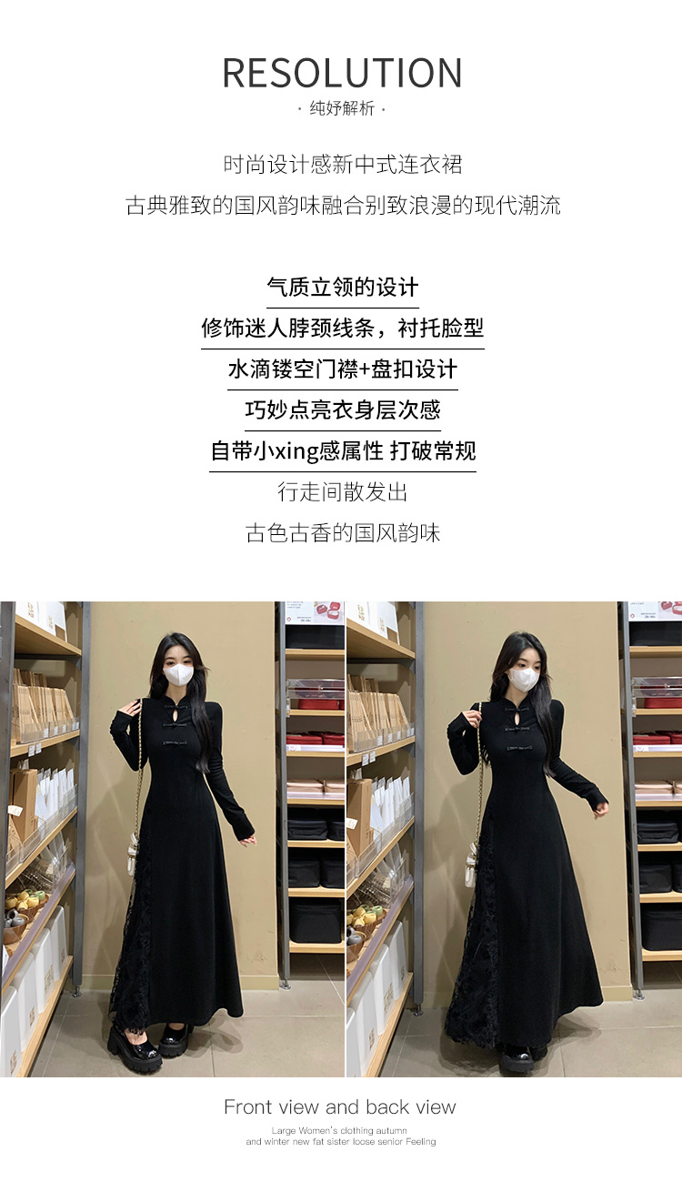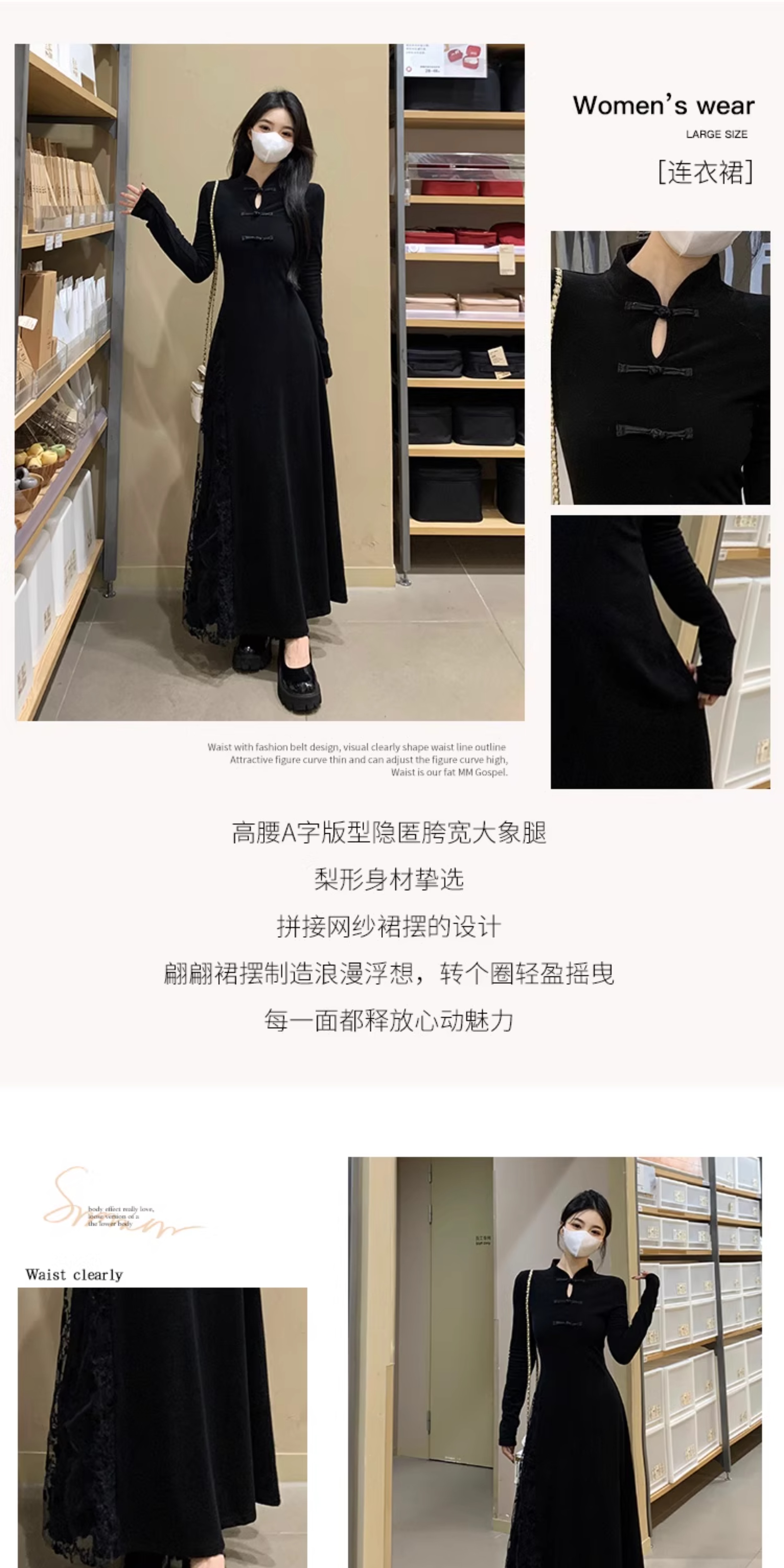 | 产品名称 : | 大码新中式蕾丝连衣裙女秋冬改良旗袍高级感气质收腰显瘦国风裙子 |