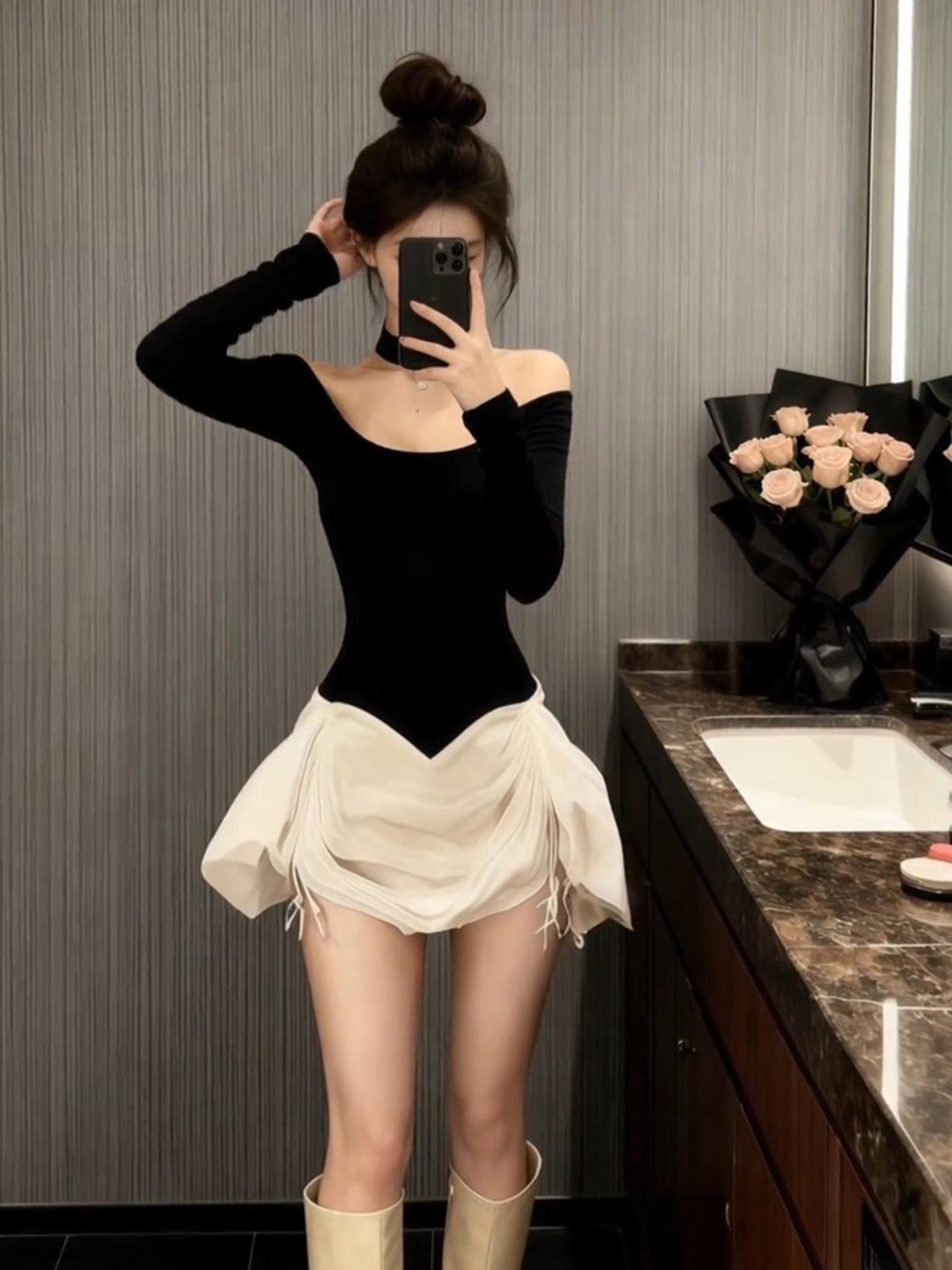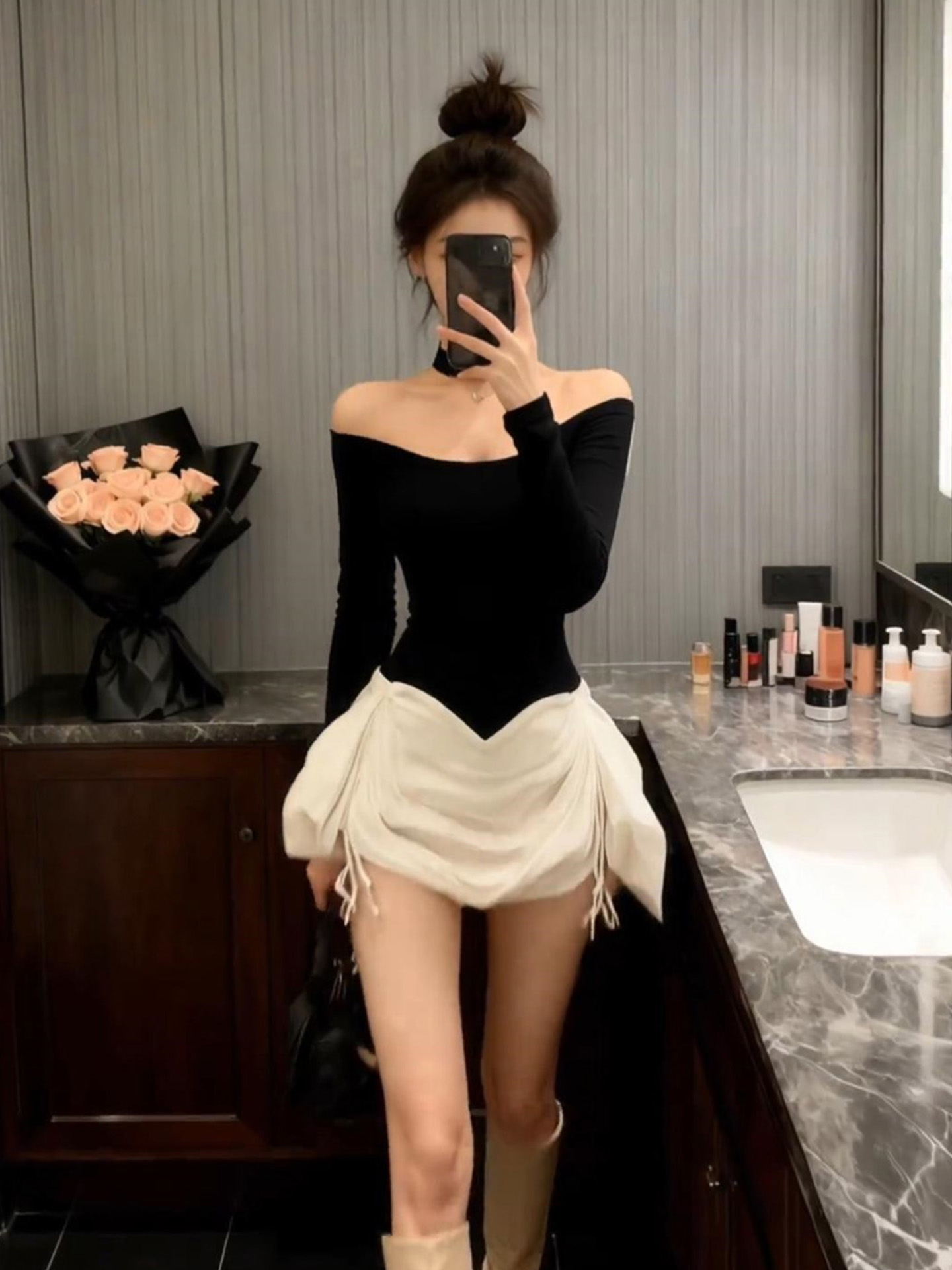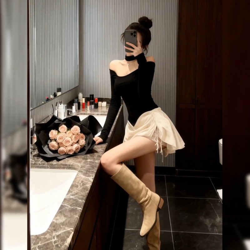 | 产品名称 : | 气质黑色一字肩连衣裙2025秋冬新款富家千金穿搭短裙法式裙子女装 |