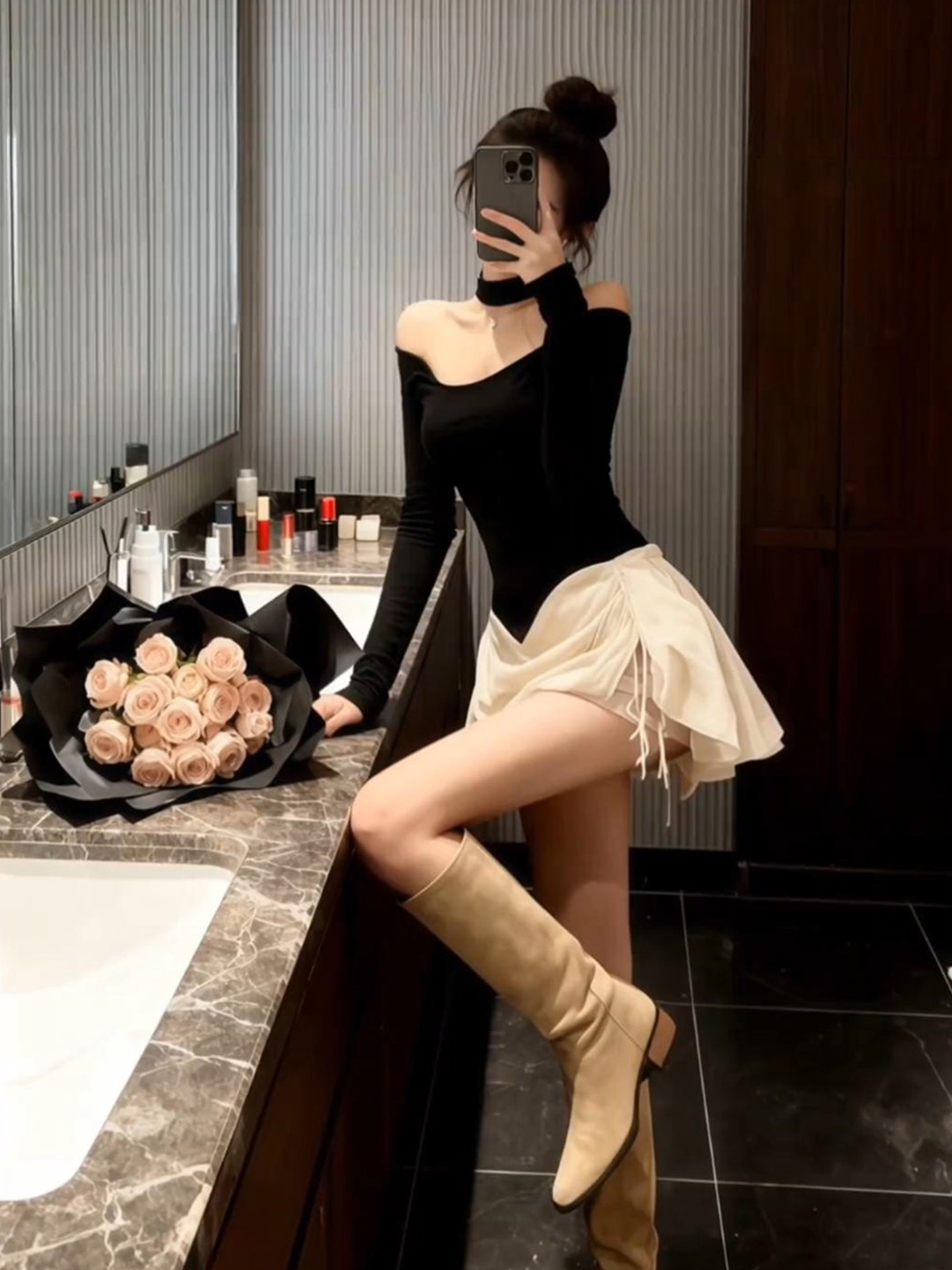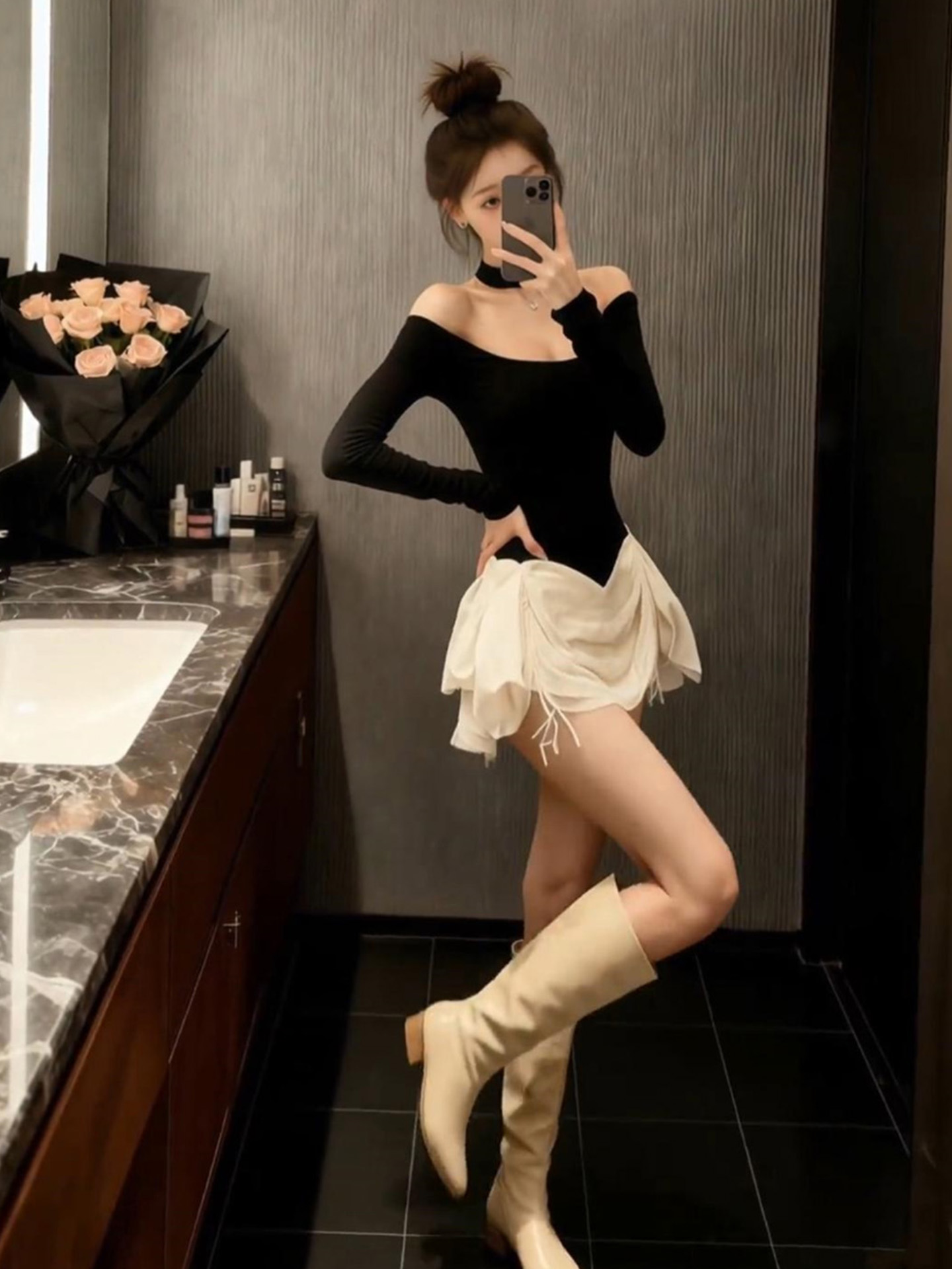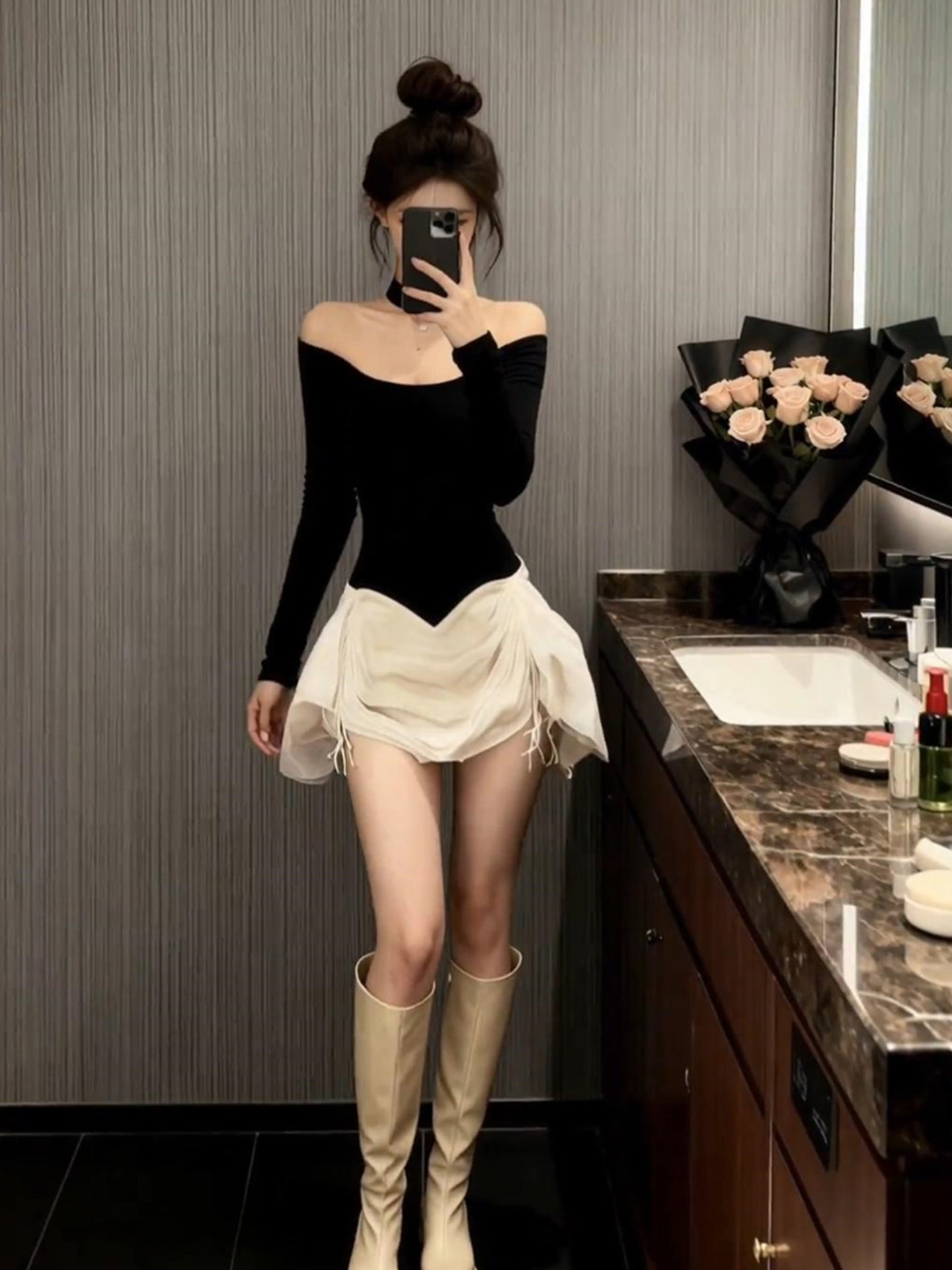 | 产品名称 : | 气质黑色一字肩连衣裙2025秋冬新款富家千金穿搭短裙法式裙子女装 |