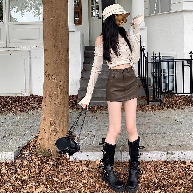 | 产品名称 : | 美拉德辣妹pu皮半身裙女大码胖mm春秋高腰a字裙小个子包臀短裙子 |