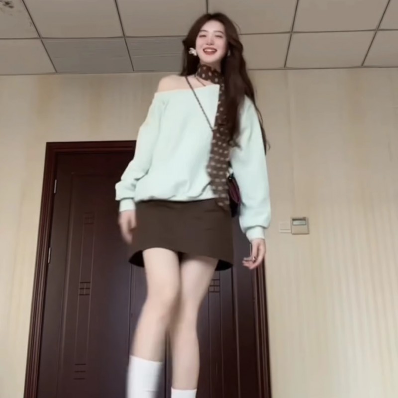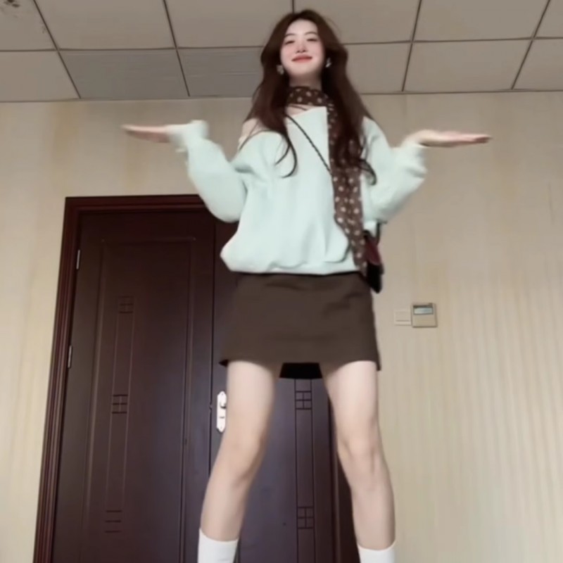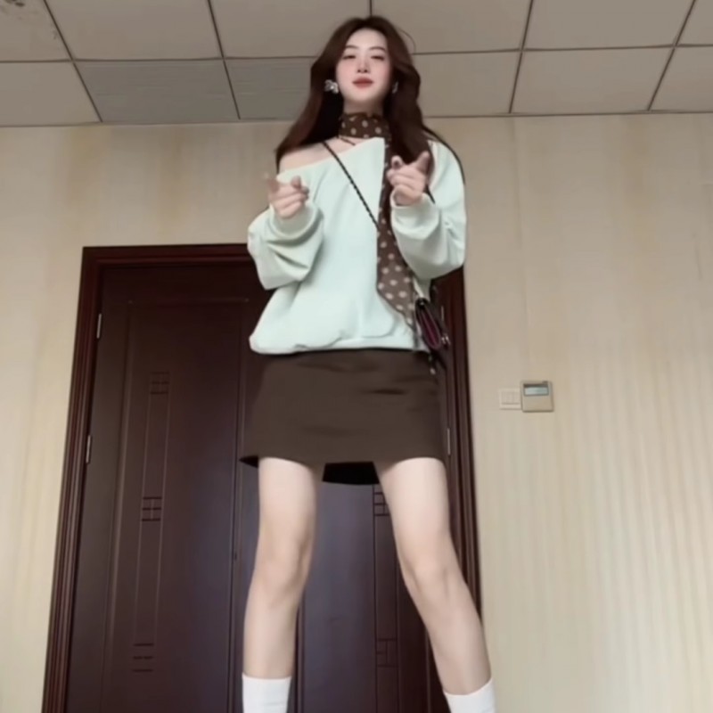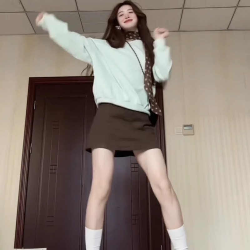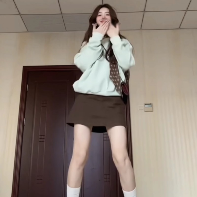 韩系穿搭棕色半身裙女小个子春秋新款高腰显瘦短裙带安全裤a字裙