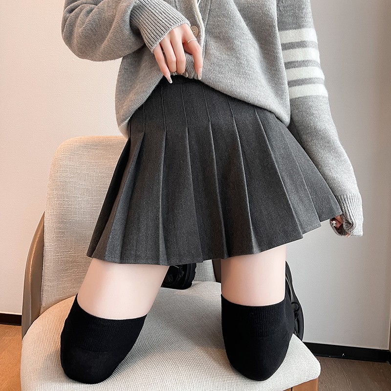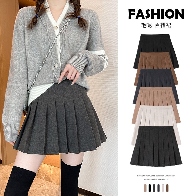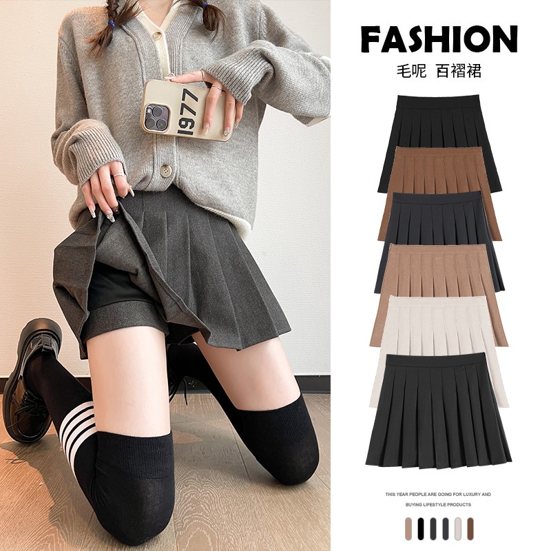 | 产品名称 : | 深灰色百褶裙女高腰显瘦秋冬2025新款西装半身裙jk毛呢短裙a字裙 |