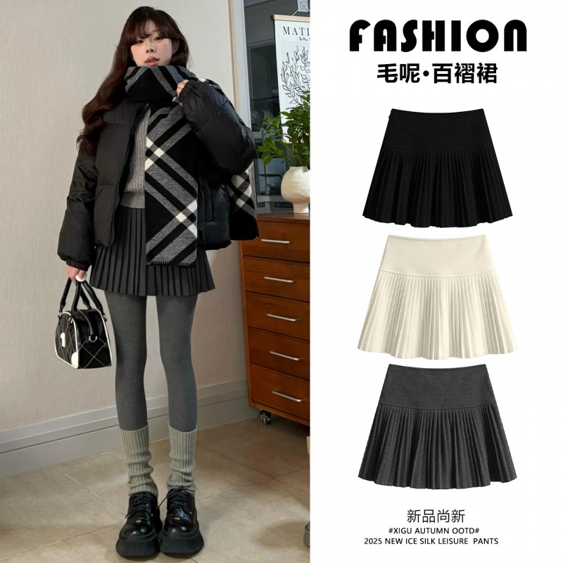 产品名称 : 灰色毛呢百褶裙女秋冬2025新款高腰a字半身裙jk梨形伯克利短裙子