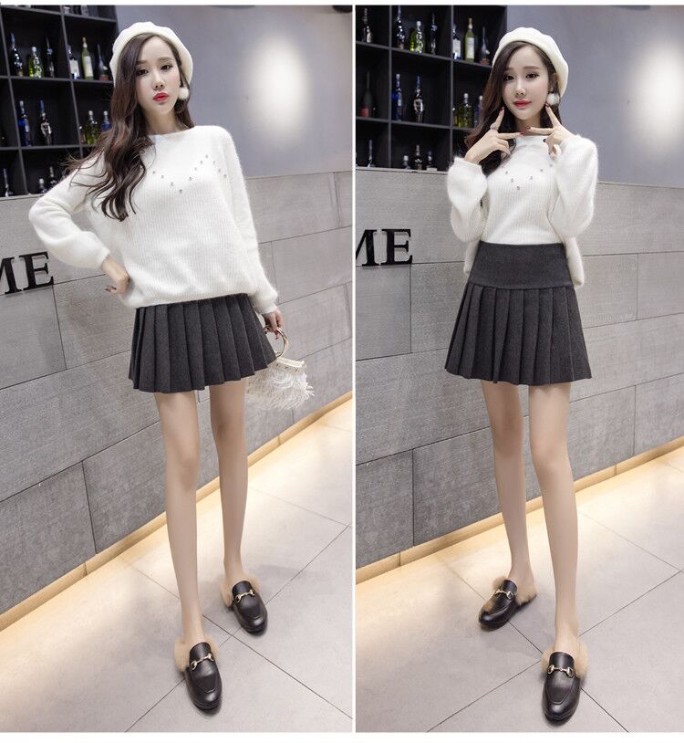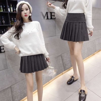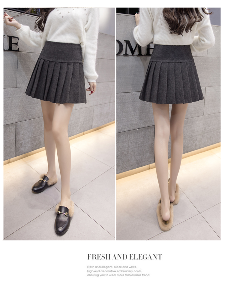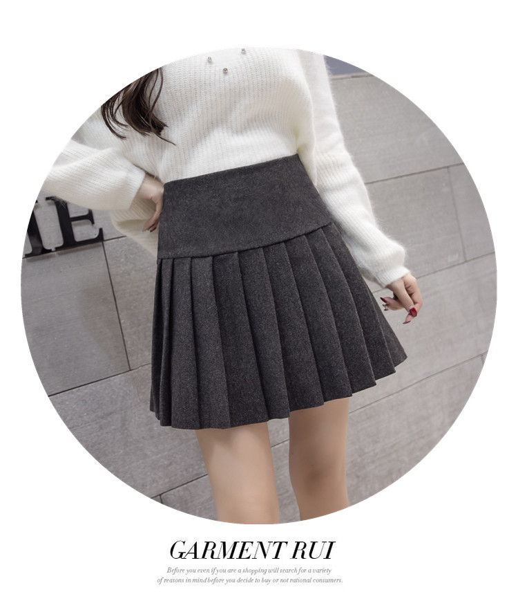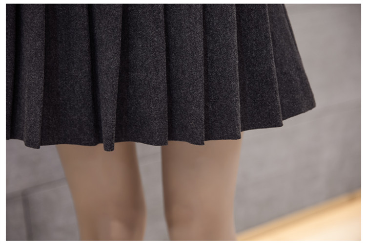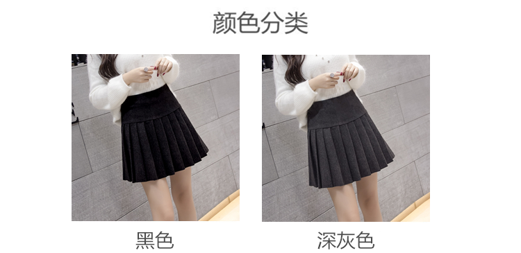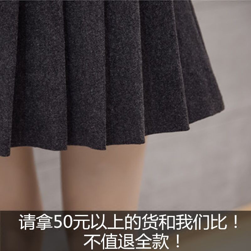 秋冬毛呢裙百褶裙女高腰A字裙显瘦学院风短裙韩版学生黑色半身裙