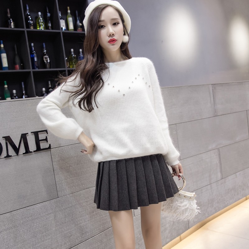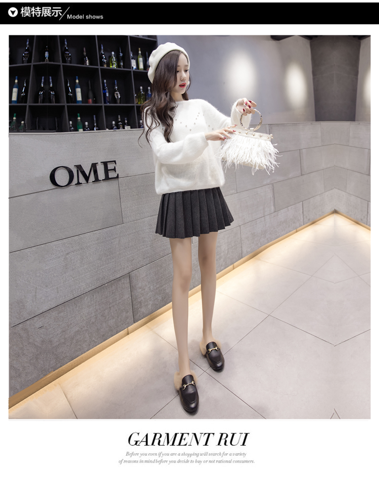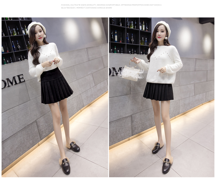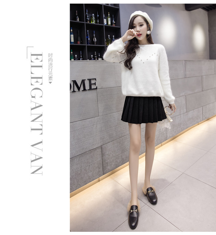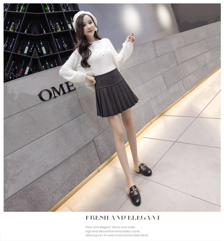 秋冬毛呢裙百褶裙女高腰A字裙显瘦学院风短裙韩版学生黑色半身裙
