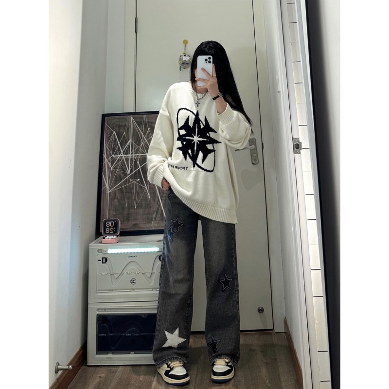 | 产品名称 : | 高街星星牛仔裤女秋冬2025年新款大码胖mm直筒垂感宽松阔腿长裤潮 |