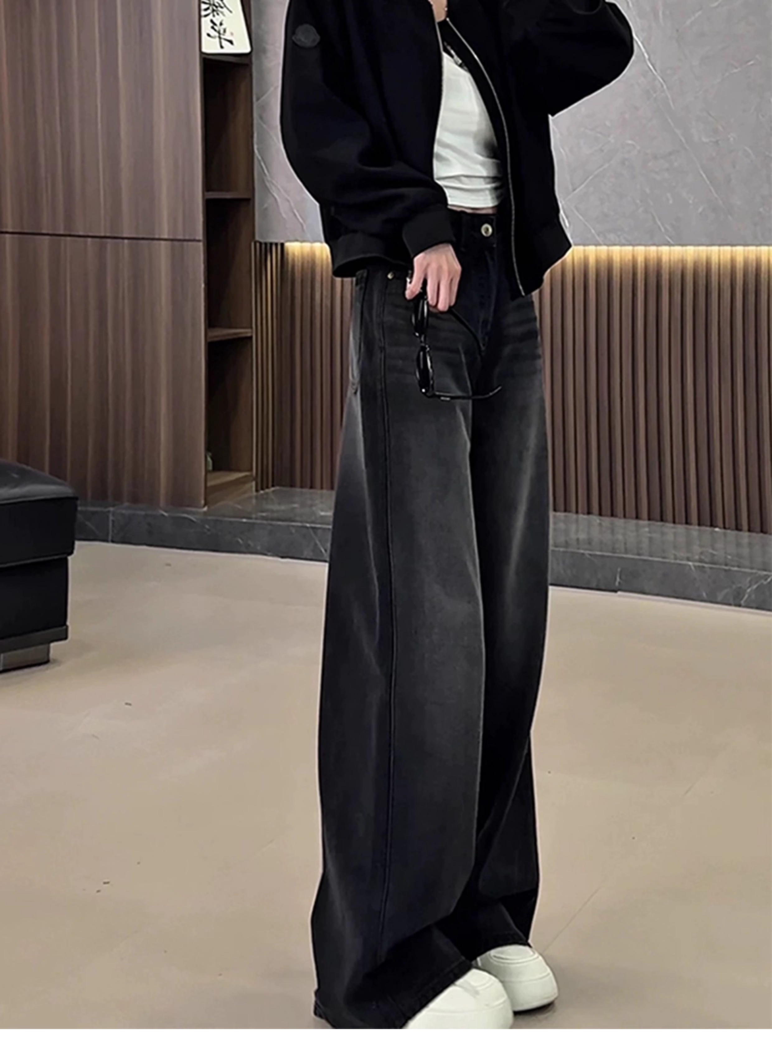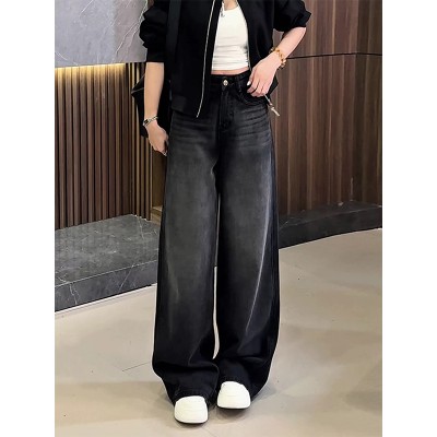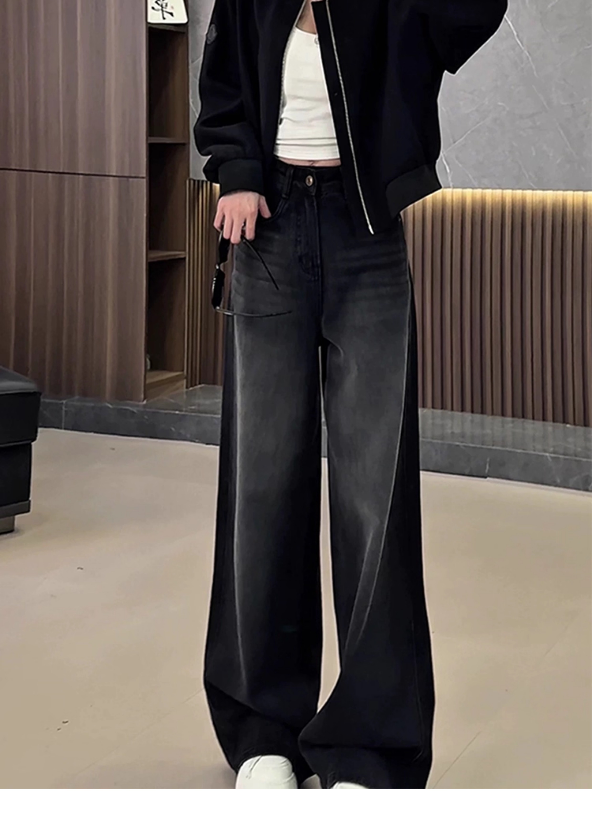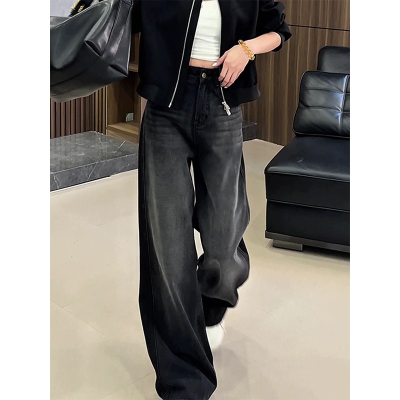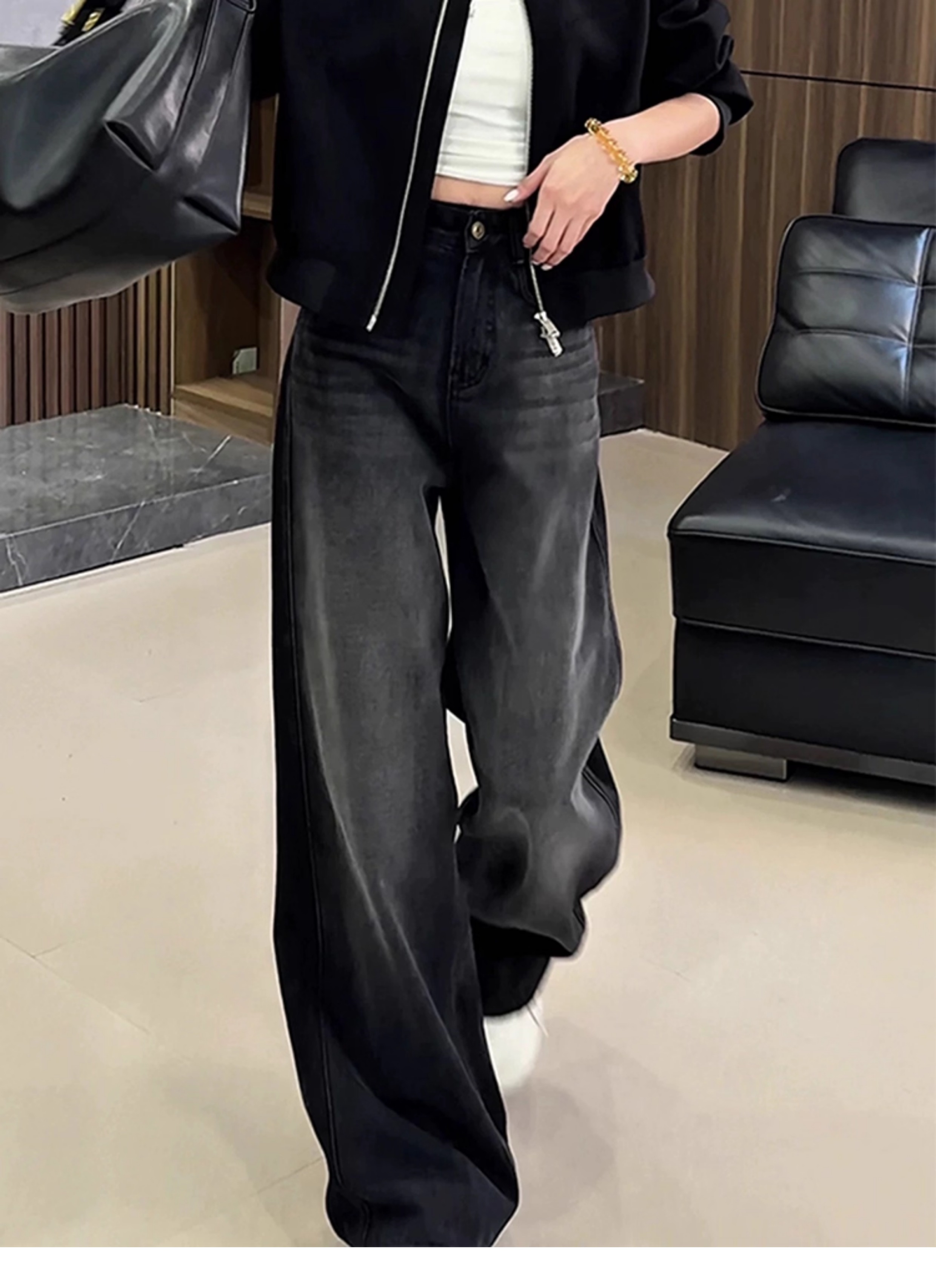 | 产品名称 : | 大码黑色加绒牛仔裤女秋冬胖mm梨形身材宽松高腰显瘦直筒阔腿裤子 |