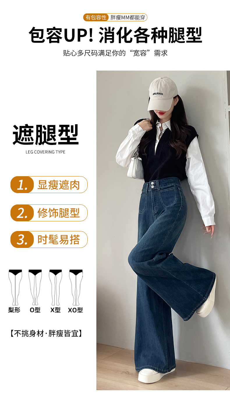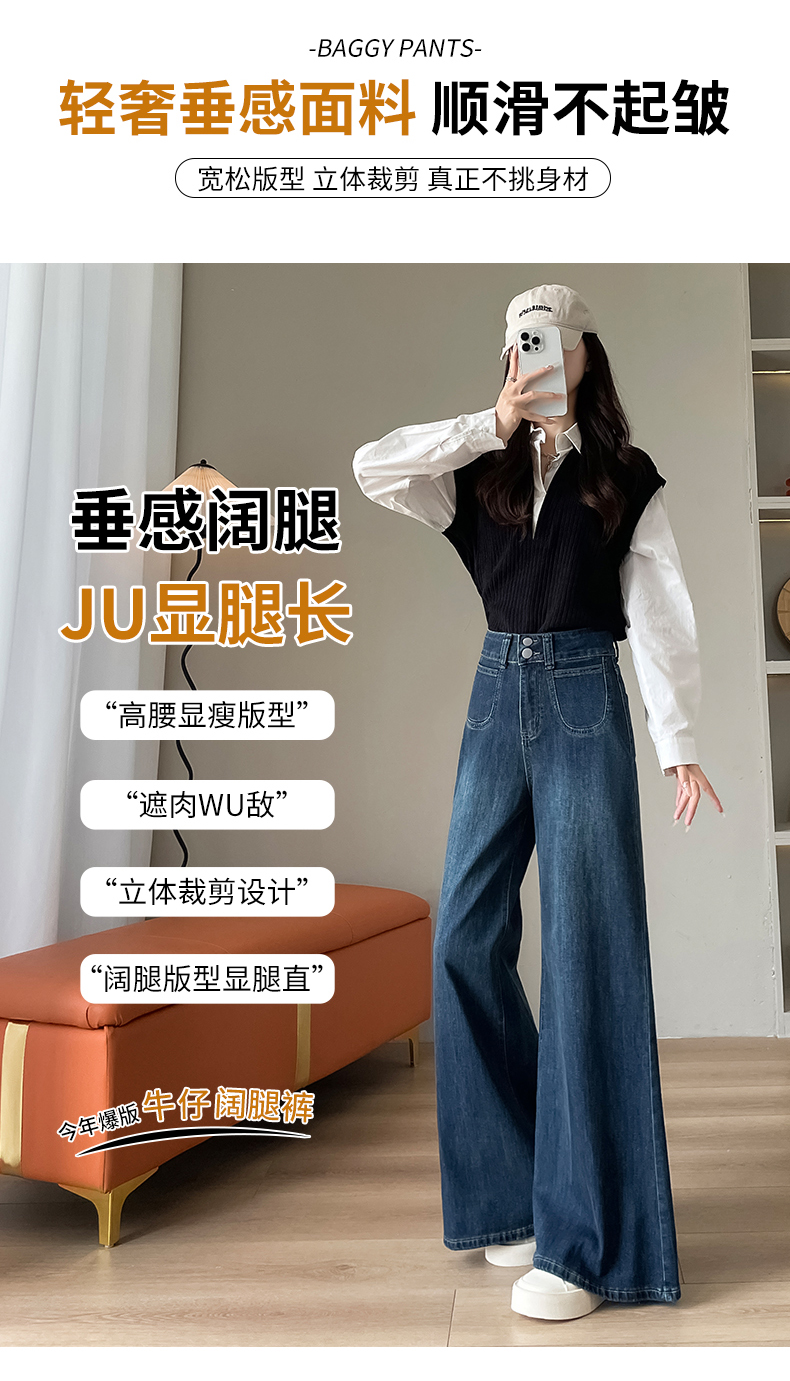 | 产品名称 : | 阔腿牛仔裤女春秋冬季加绒2025年新款显瘦宽松设计感喇叭直筒裤子 |
