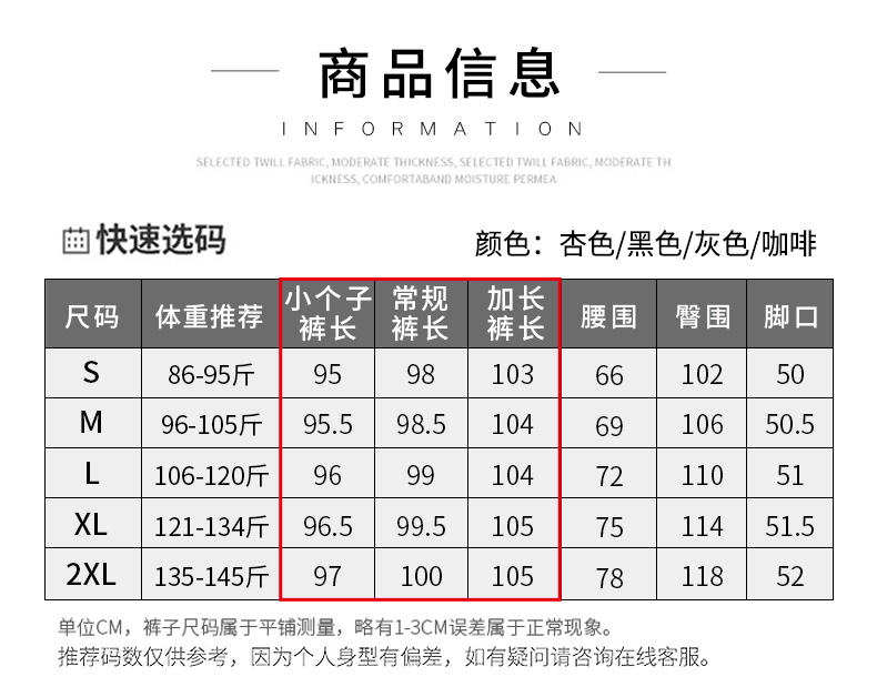 | 颜色分类: | 杏色小个子,杏色常规,杏色加长,黑色小个子,黑色常规,黑色加长,灰色小个子,灰色常规,灰色加长,咖啡色小个子,咖啡色常规,咖啡色加长,杏色加绒小个子,杏色加绒常规,杏色加绒加长,黑色加绒小个子,黑色加绒常规,黑色加绒加长,灰色加绒小个子,灰色加绒常规,灰色加绒加长,咖啡色加绒小个子,咖啡色加绒常规,咖啡色加绒加长 |