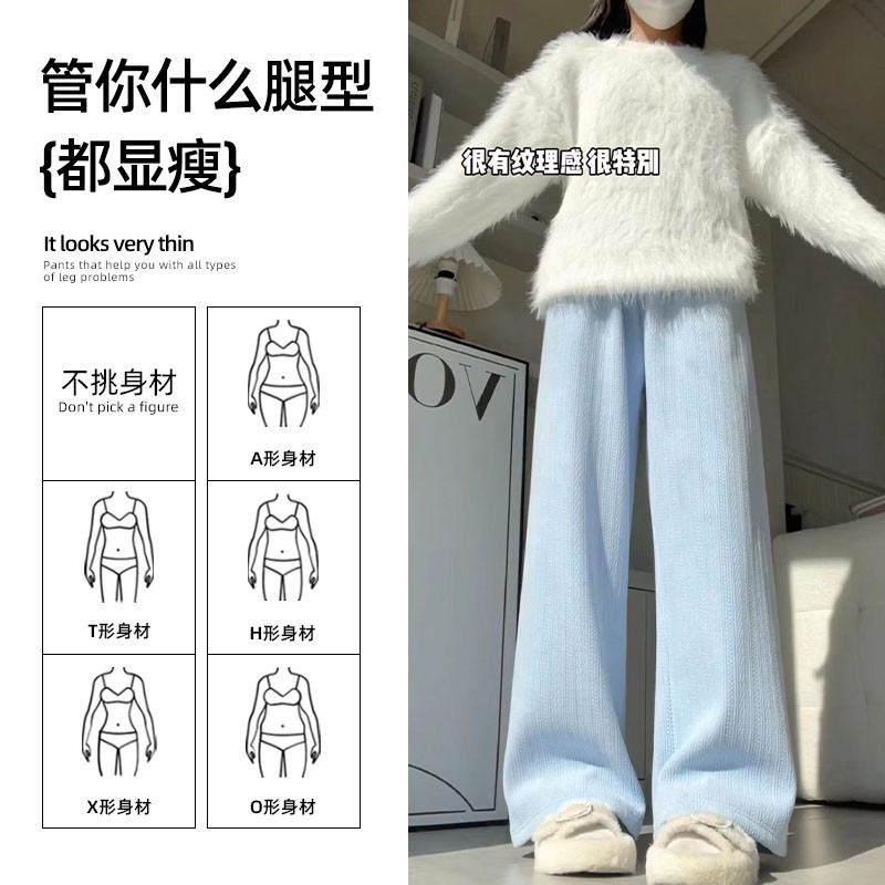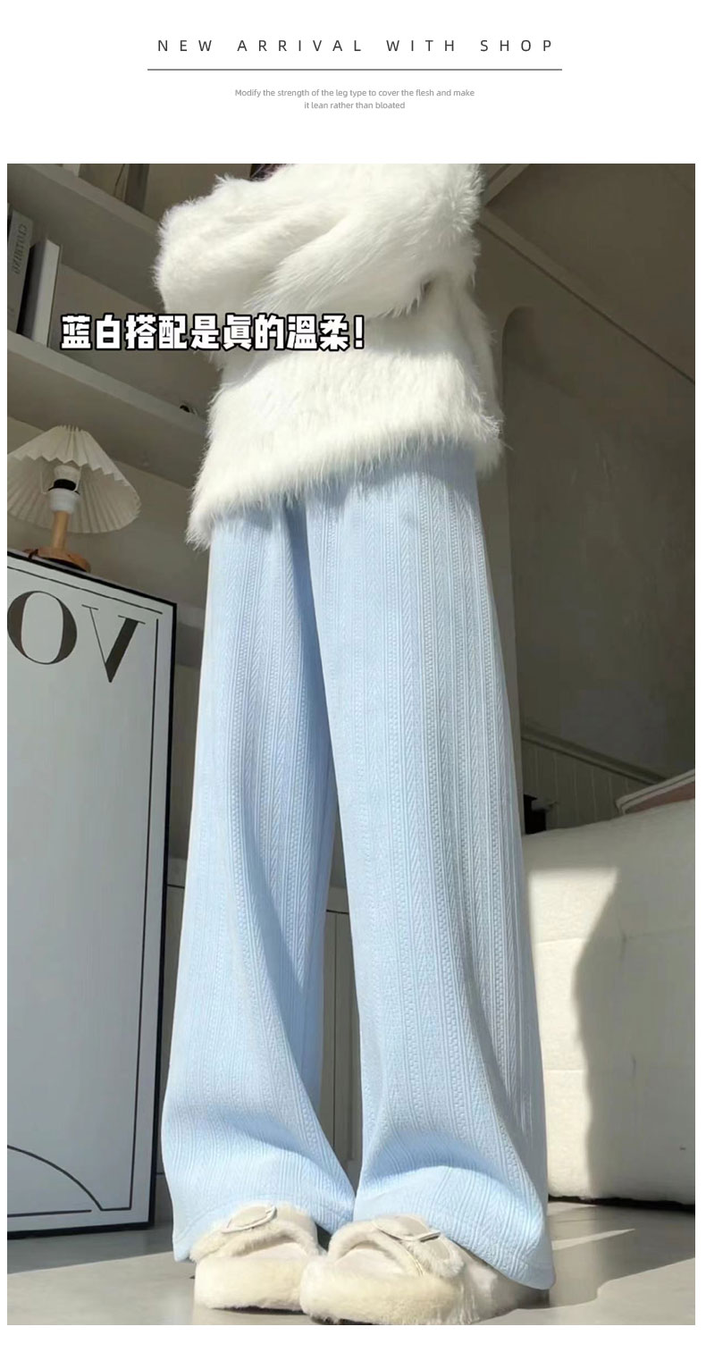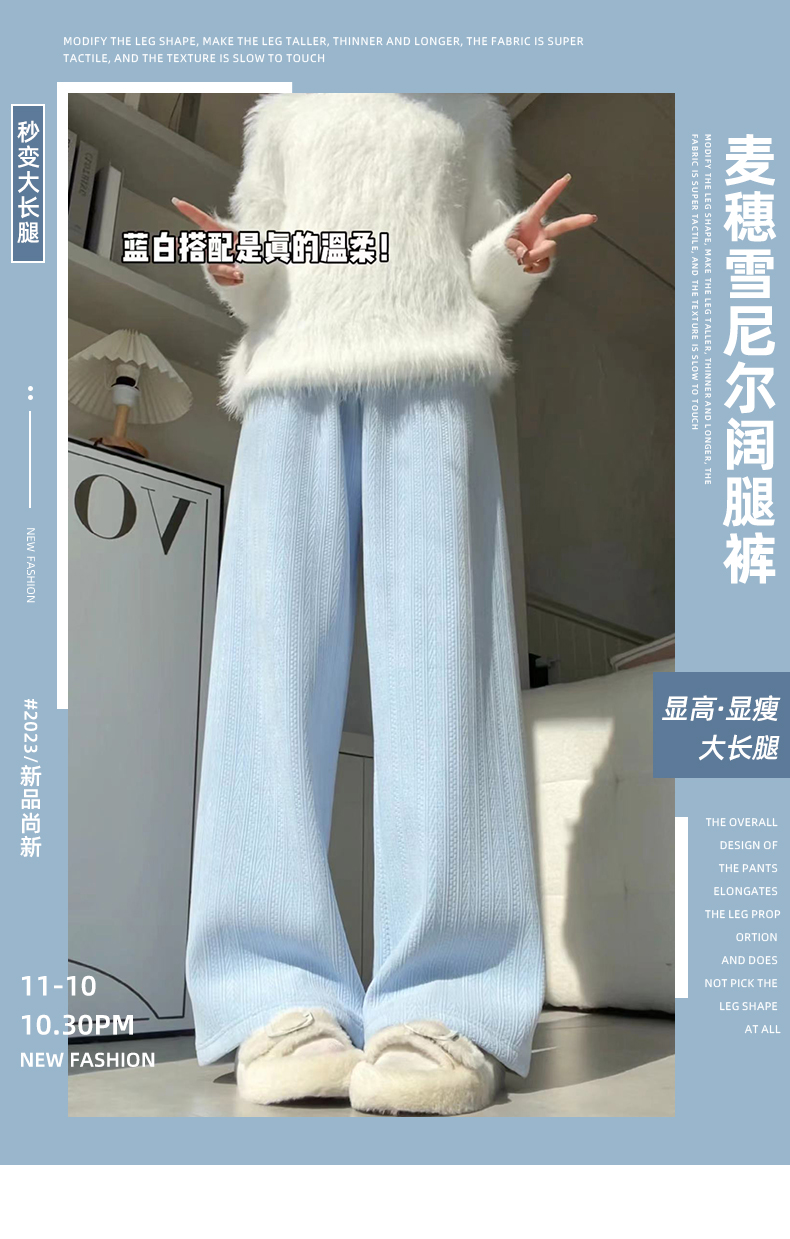 | 产品名称 : | 蓝色雪尼尔阔腿裤女秋冬季棉裤外穿高腰宽松直筒窄版休闲加绒裤子 |
