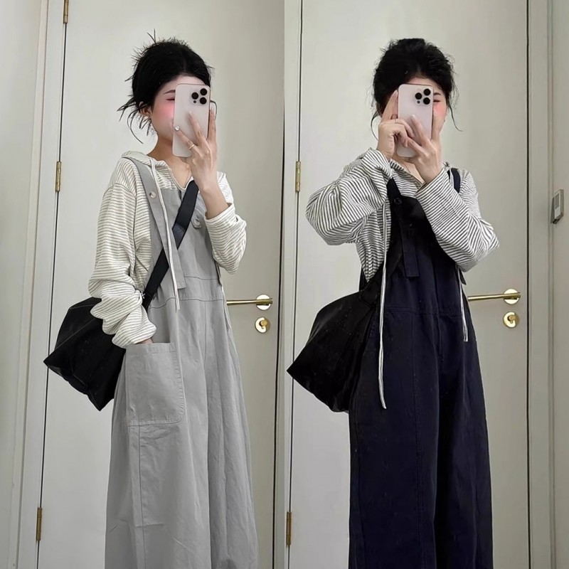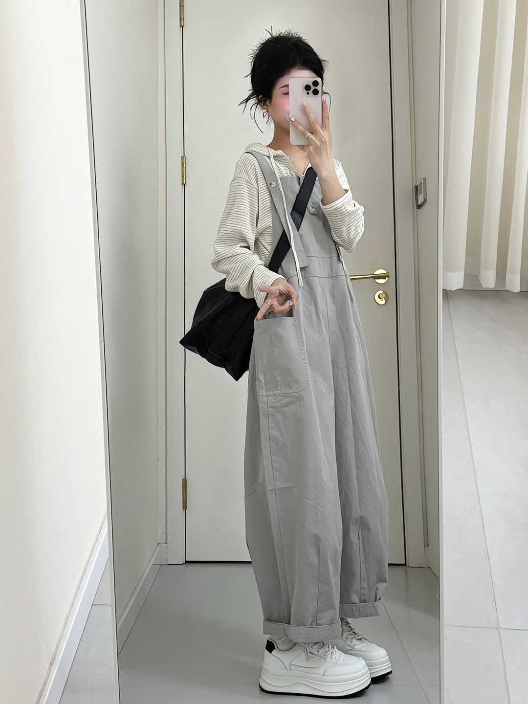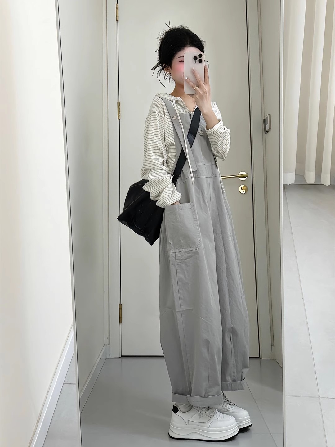 | 产品名称 : | 秋季穿搭一整套大码胖mm连帽条纹上衣背带连体裤休闲慵懒风套装女 |
