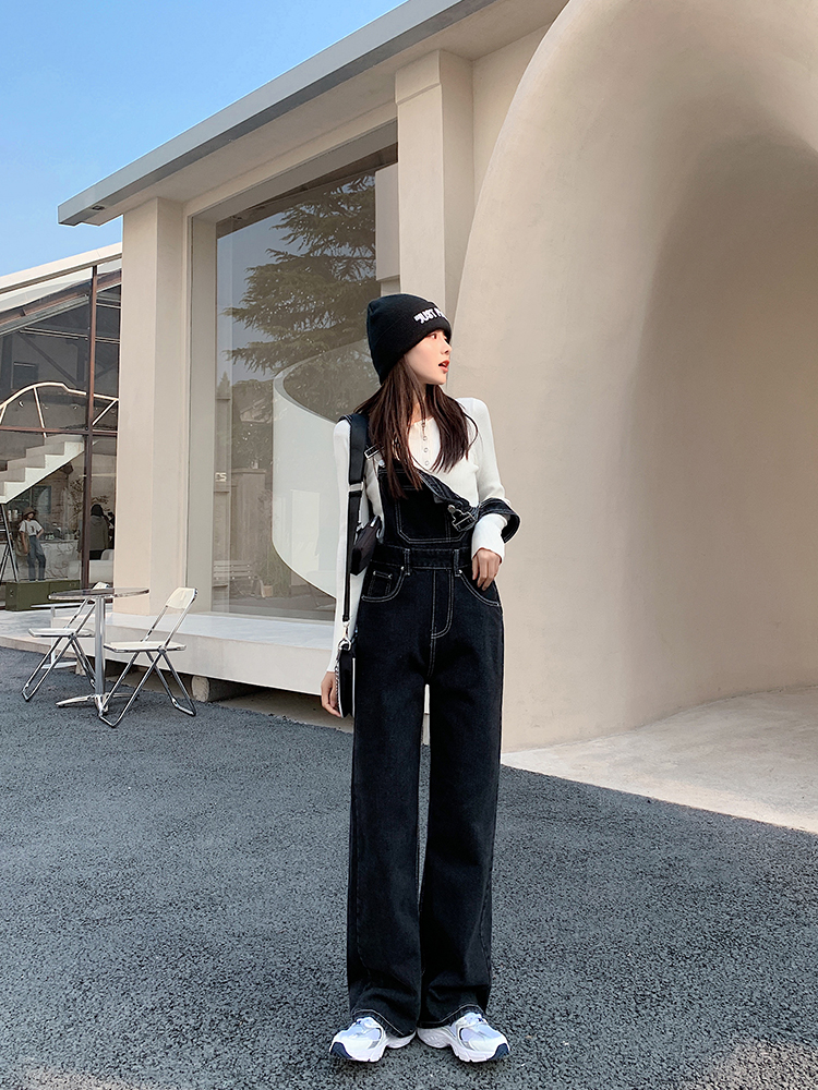| 产品名称 : | 大码胖妹妹牛仔背带裤女秋冬新款百搭宽松盐系直筒阔腿拖地长裤子 |