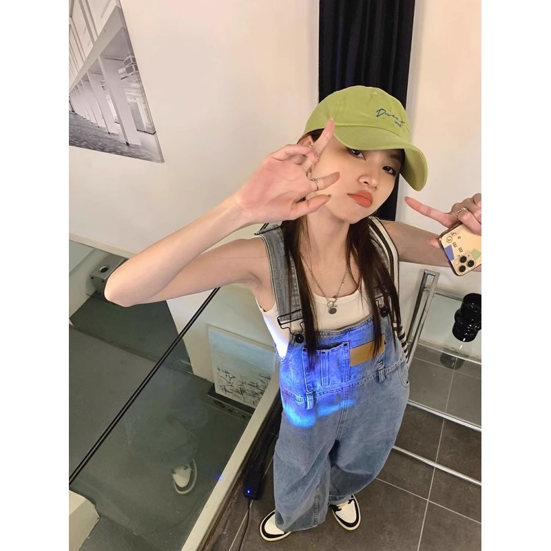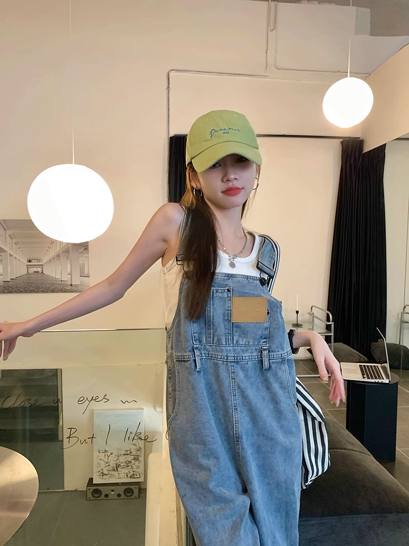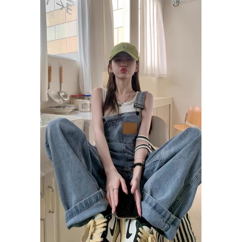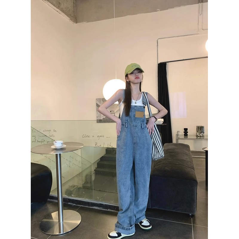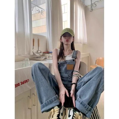 大码复古牛仔裤女直筒阔腿裤春秋吊带裤背带裤拖地裤子小众长裤子