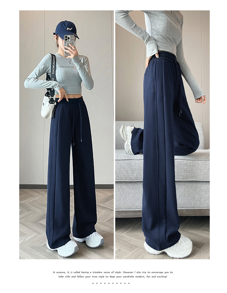 | 产品名称 : | 藏青色运动裤女秋冬季2025新款小个子加绒加厚卫裤窄版直筒阔腿裤 |