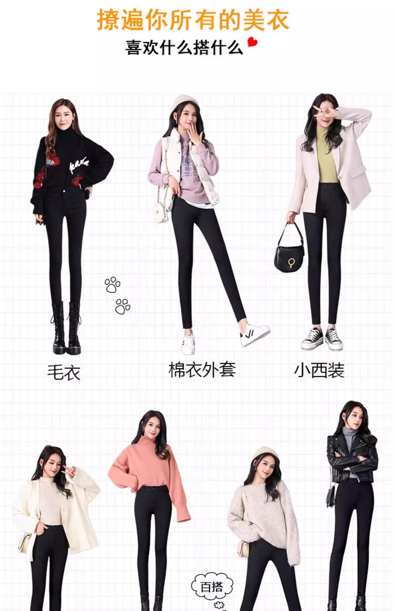 | 产品名称 : | 2025新款加绒小黑裤外穿打底女裤秋冬高腰修身显瘦小脚裤大码胖mm |