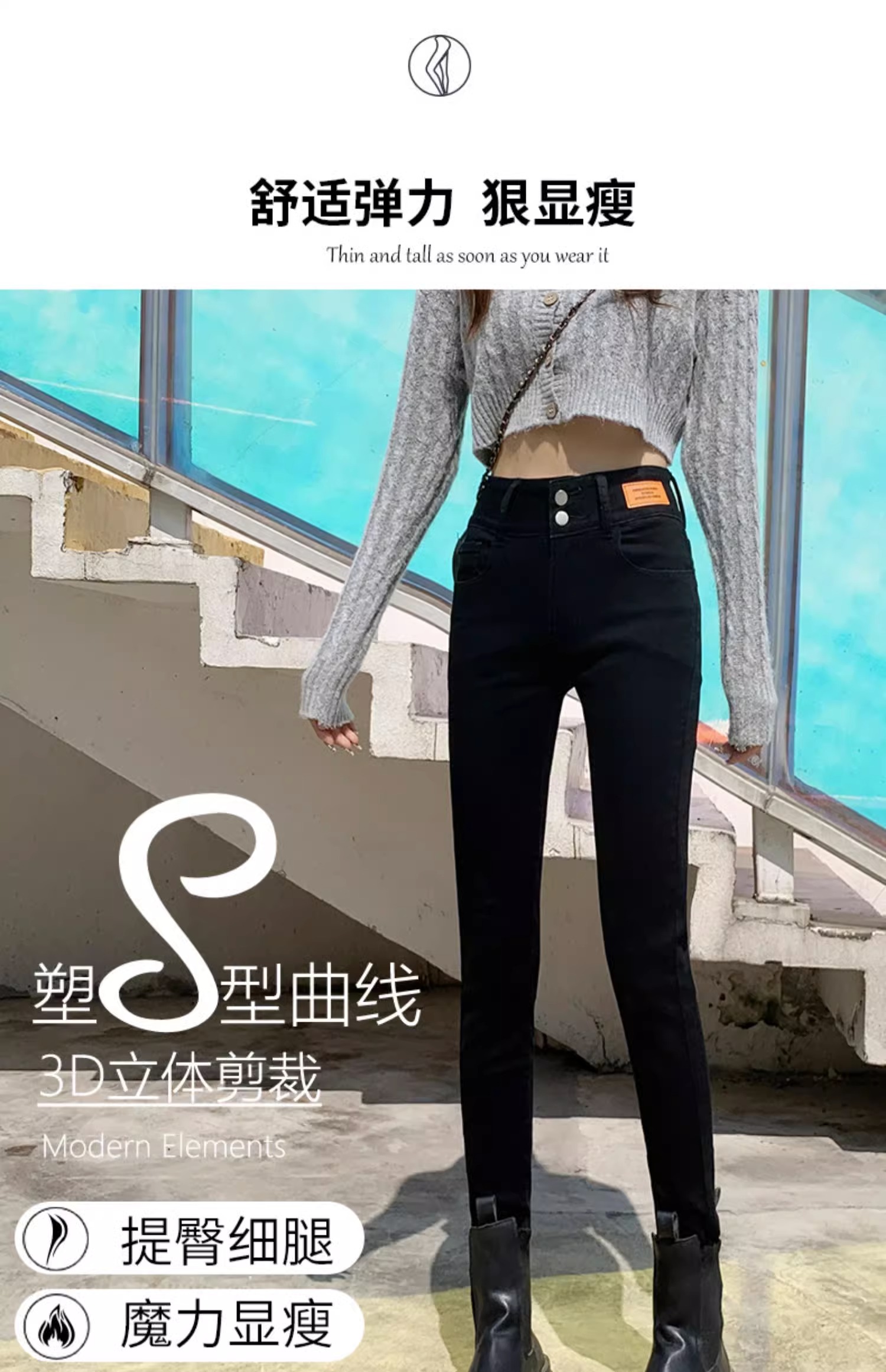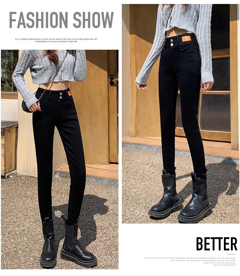 | 产品名称 : | 黑色高腰小脚牛仔裤女2025秋冬新款显瘦提臀弹力九分紧身铅笔裤子 |