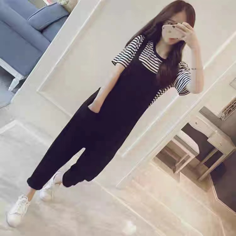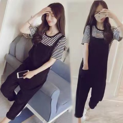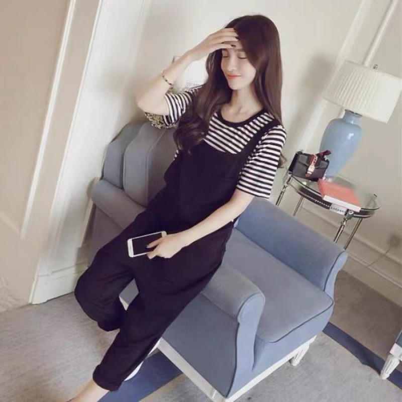 休闲背带裤套装女2025夏季新款宽松显瘦连体裤小个子吊带裤两...