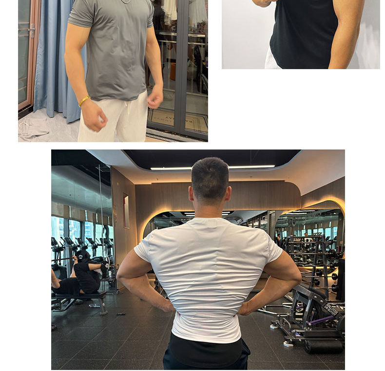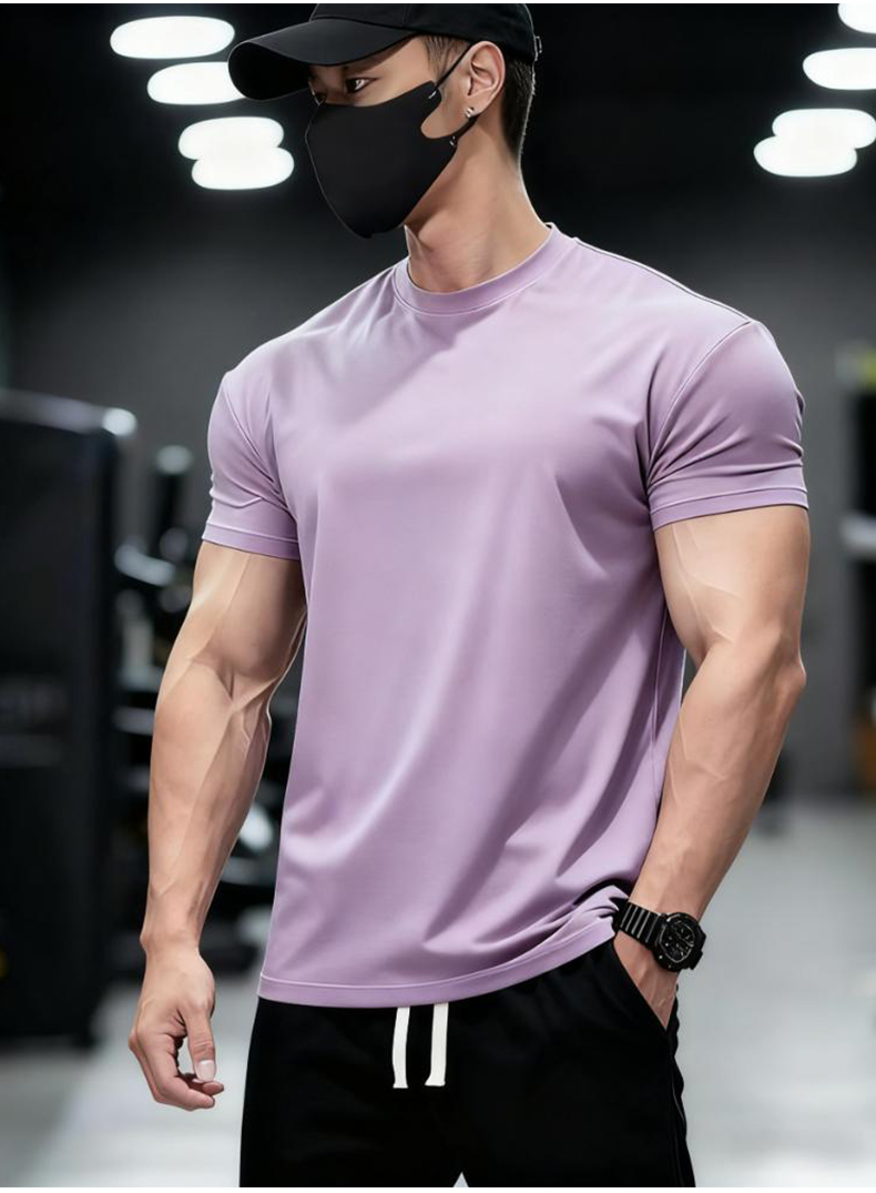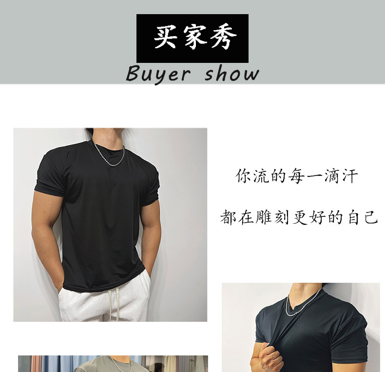 | 产品名称 : | 美式收袖口显肌肉冰丝透气速干弹力T恤男士健身衣大码运动短袖 |