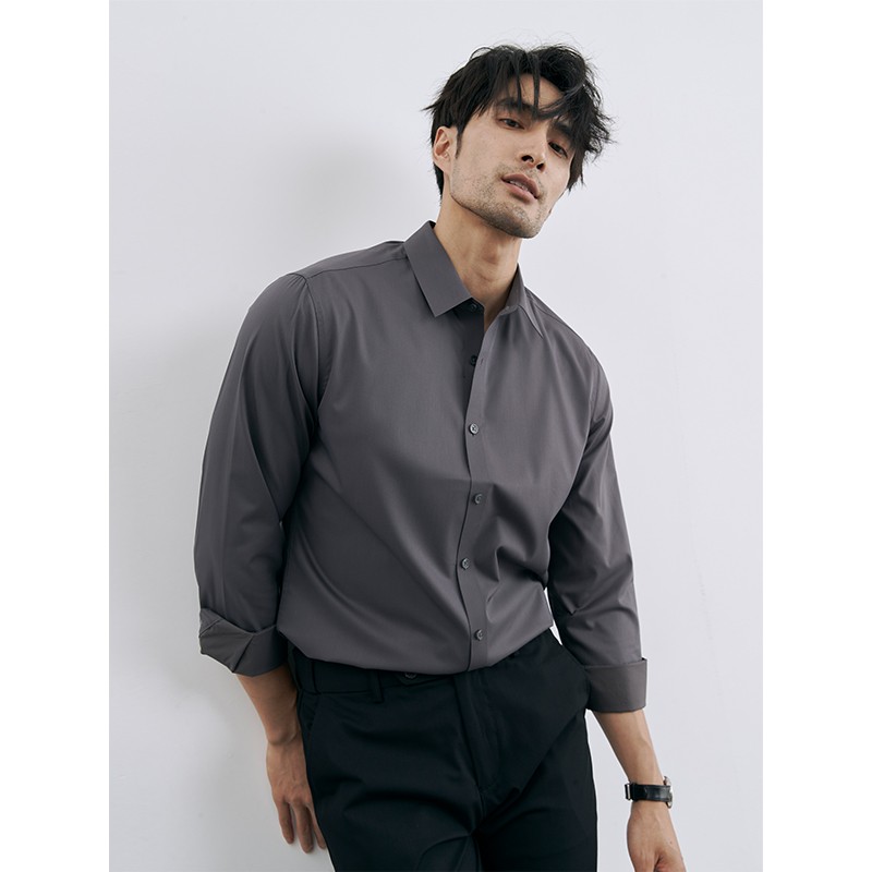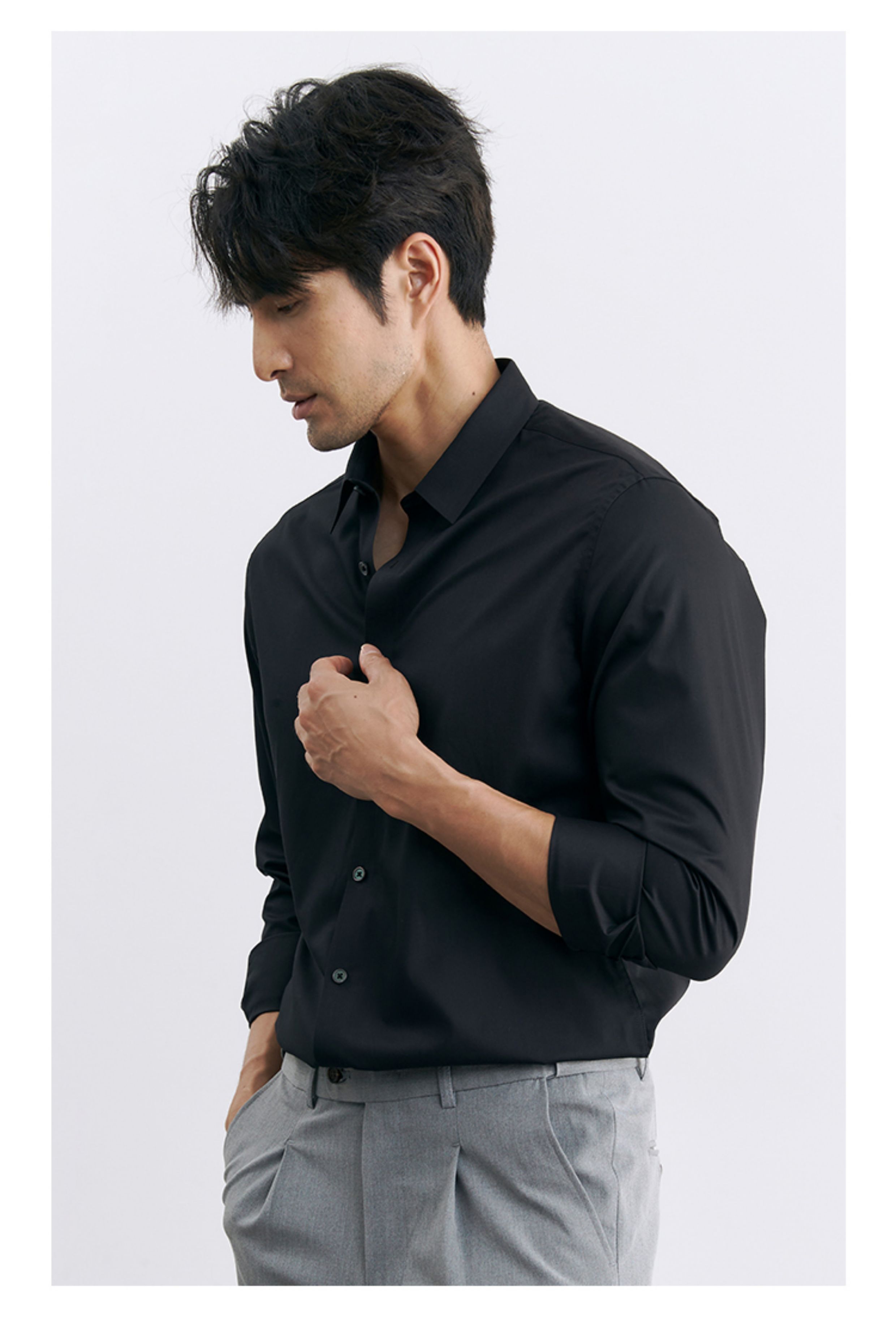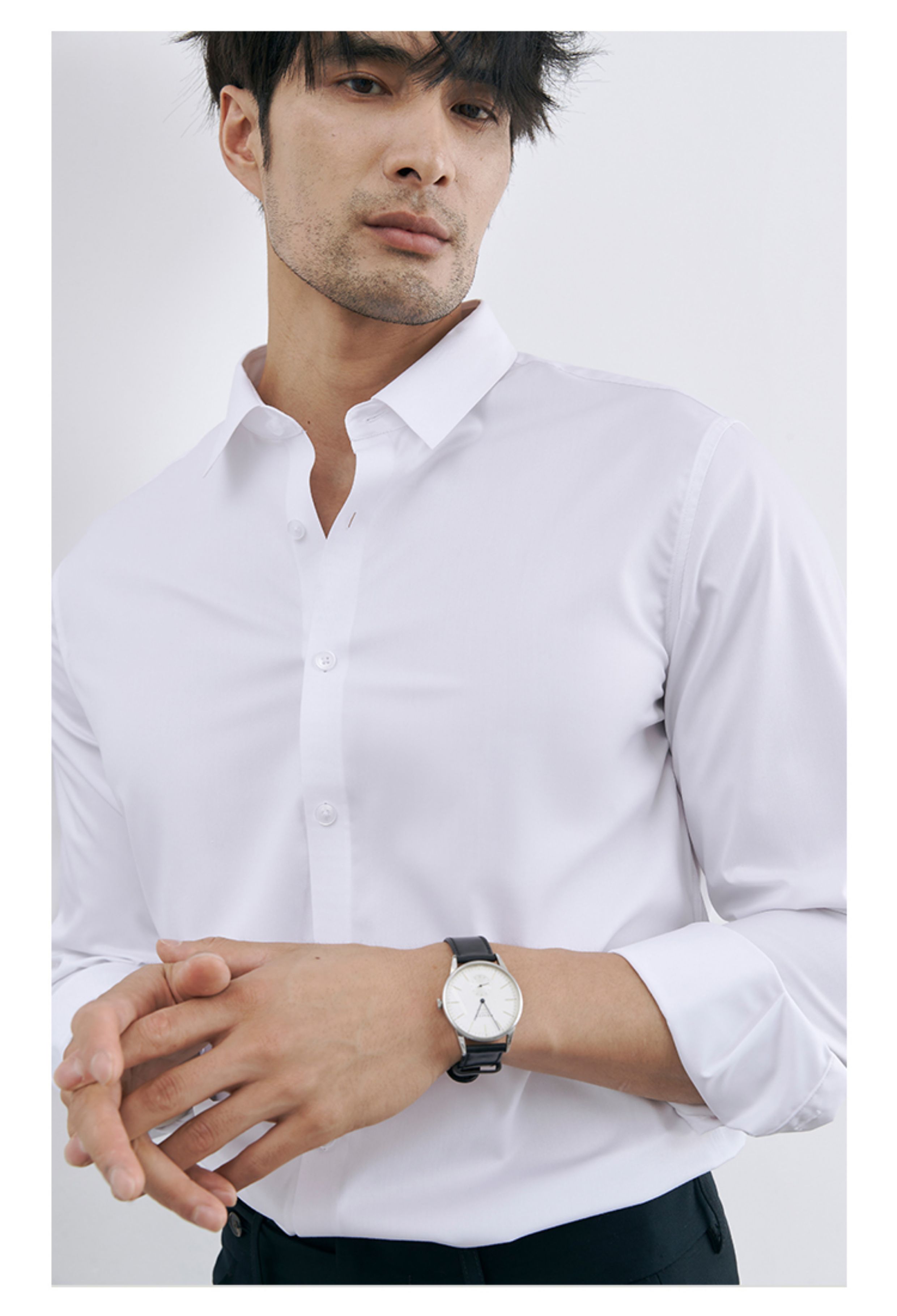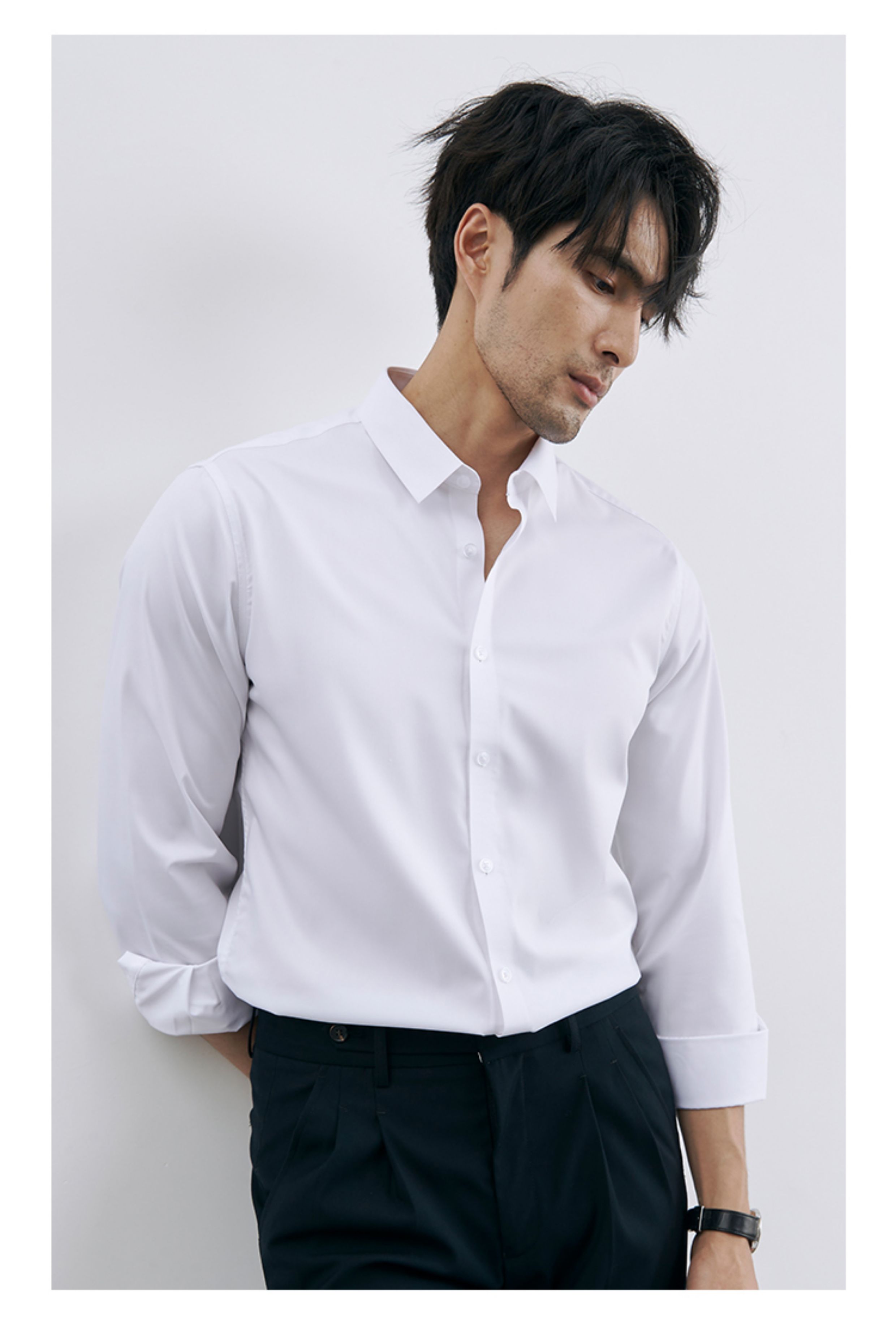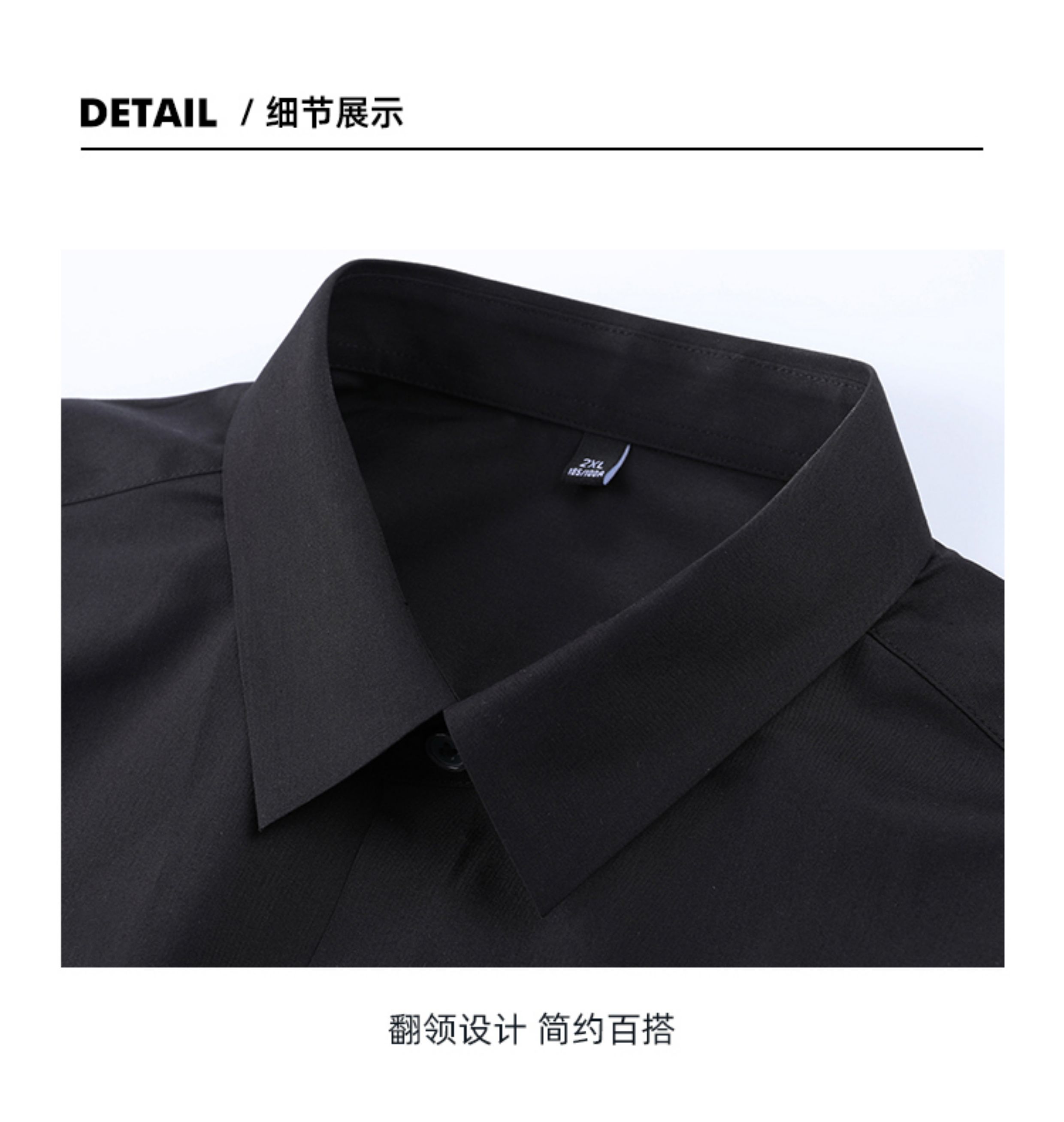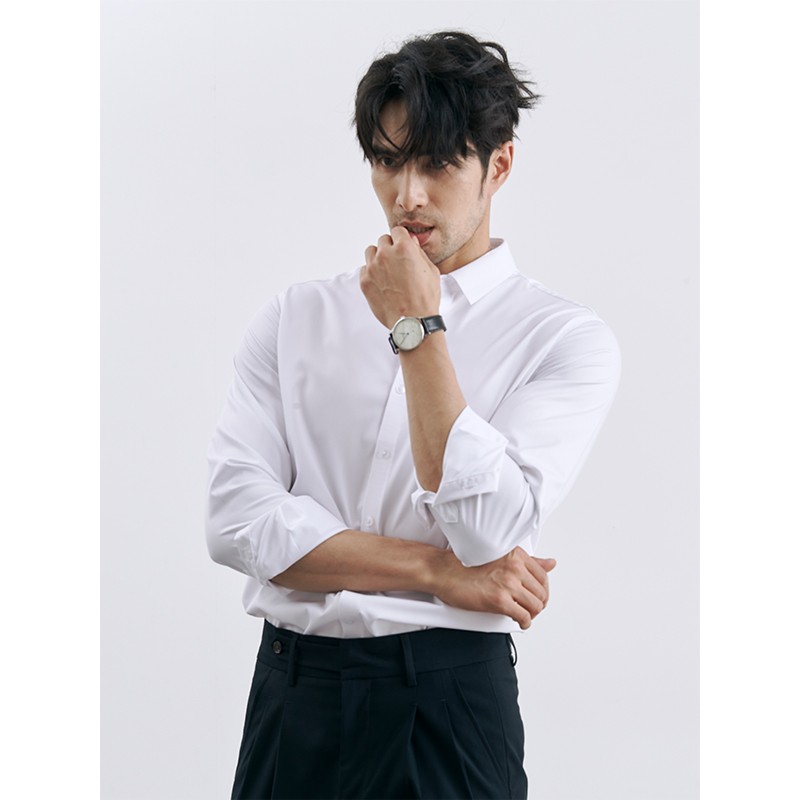| 产品名称 : | 韩版高级感职业免烫商务正装黑衬衫男士抗皱长袖白色休闲衬衣外套 |