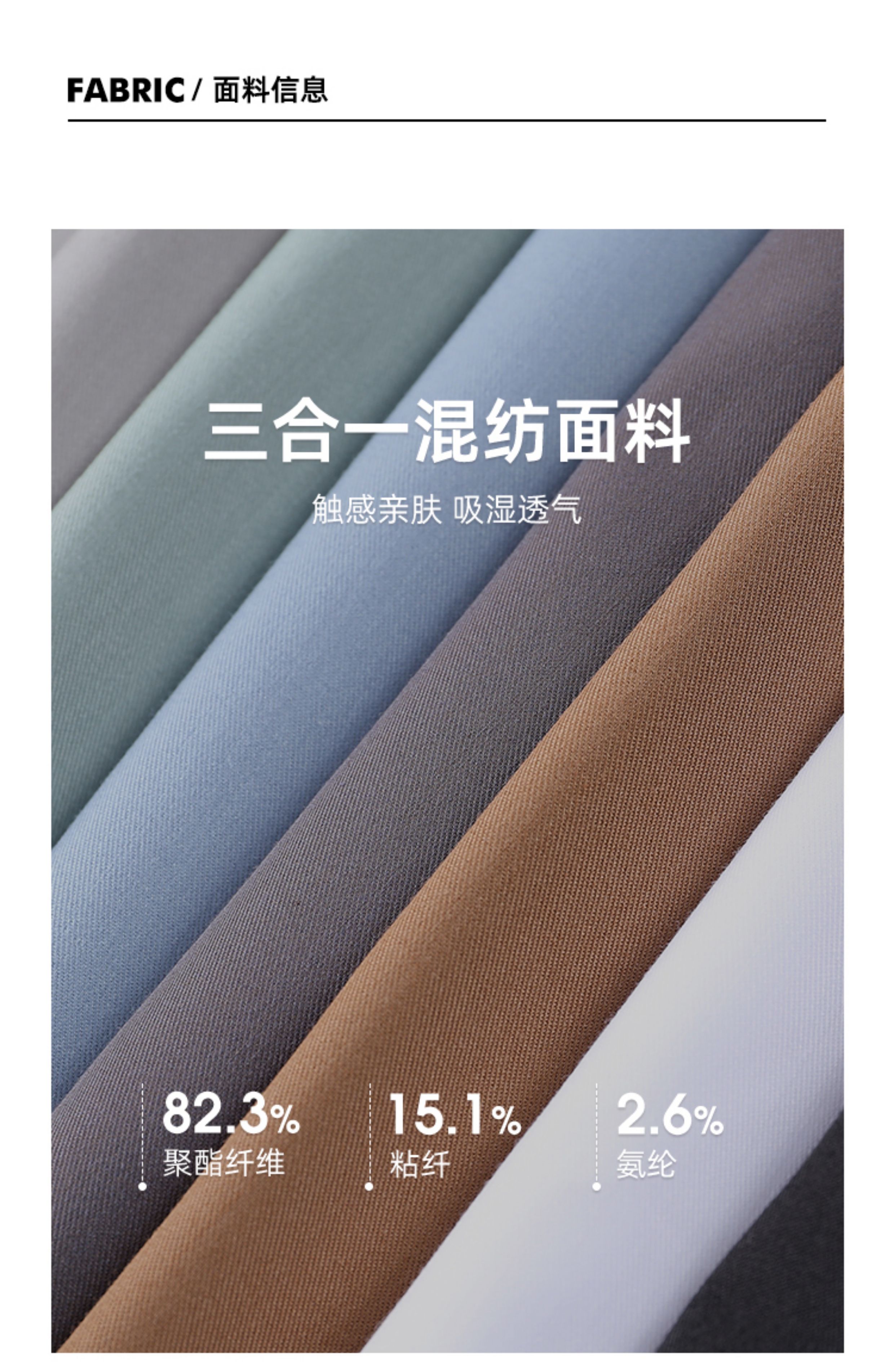 | 材质成分: | 聚酯纤维82.3% 粘胶纤维(粘纤)15.1% 聚氨酯弹性纤维(氨纶)2.6% |