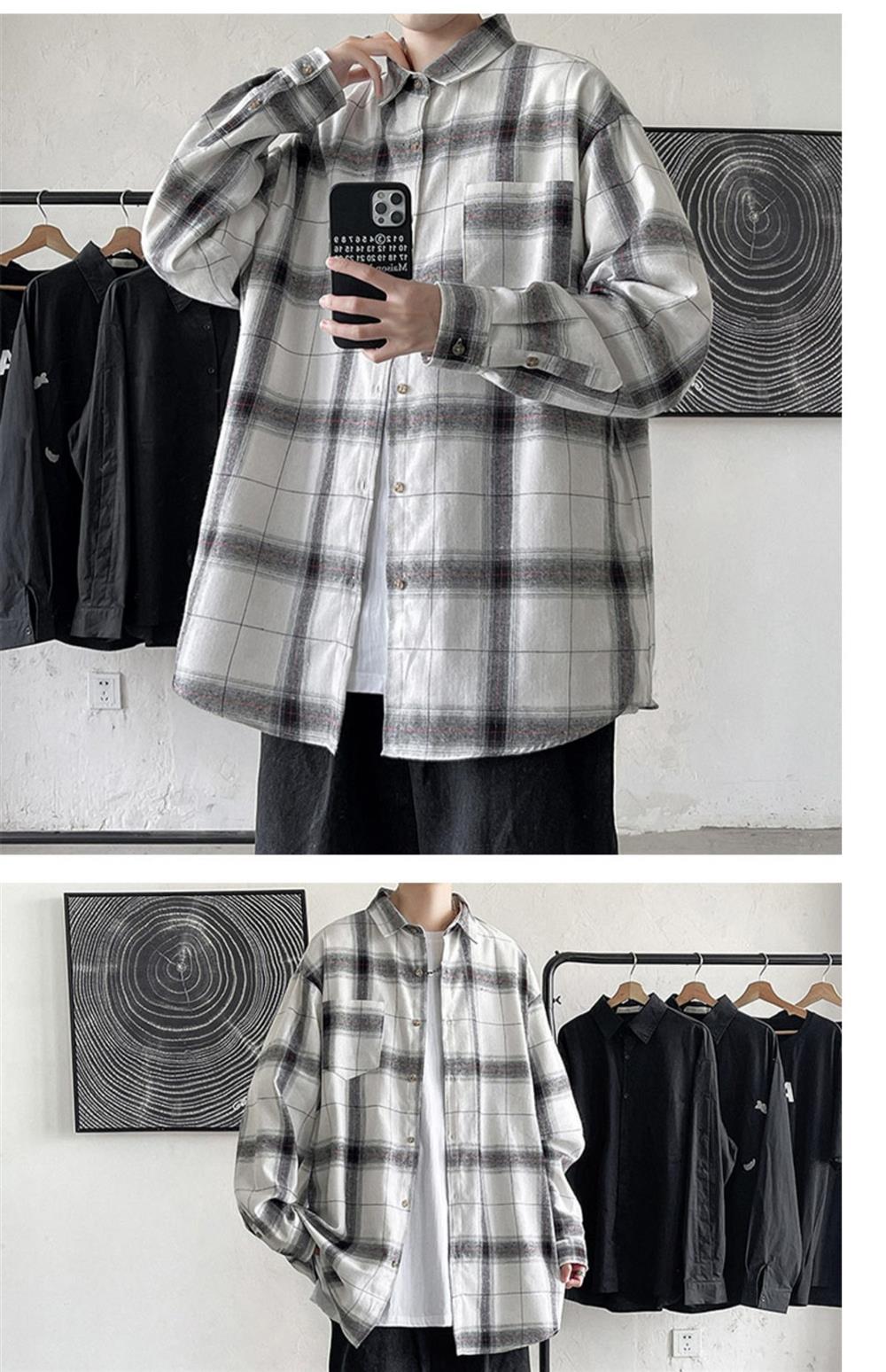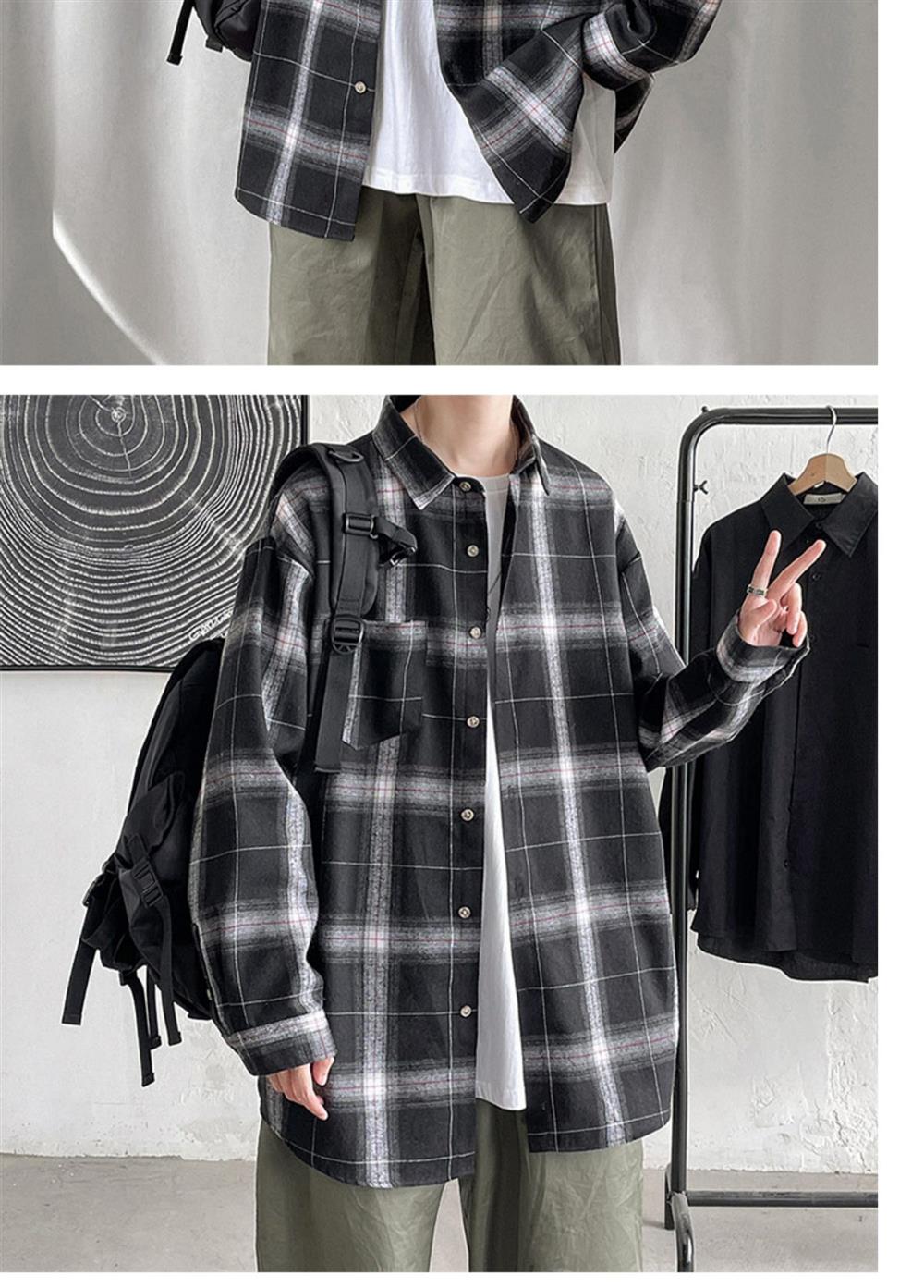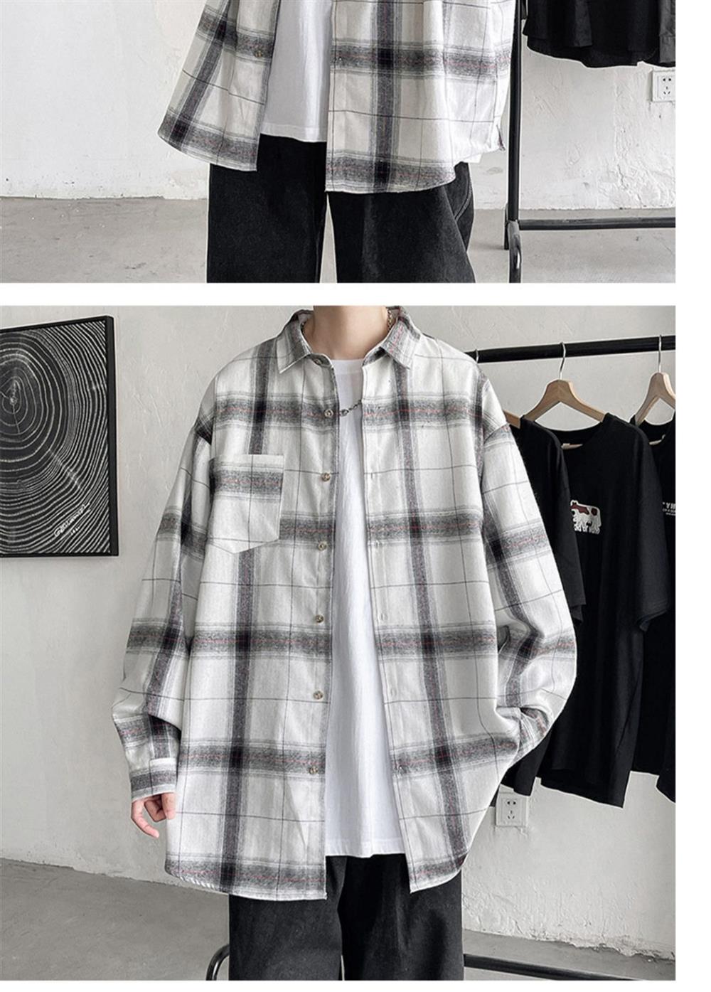 清仓捡漏春秋季2023潮流ins休闲薄款男外套港风宽松衬衣格...