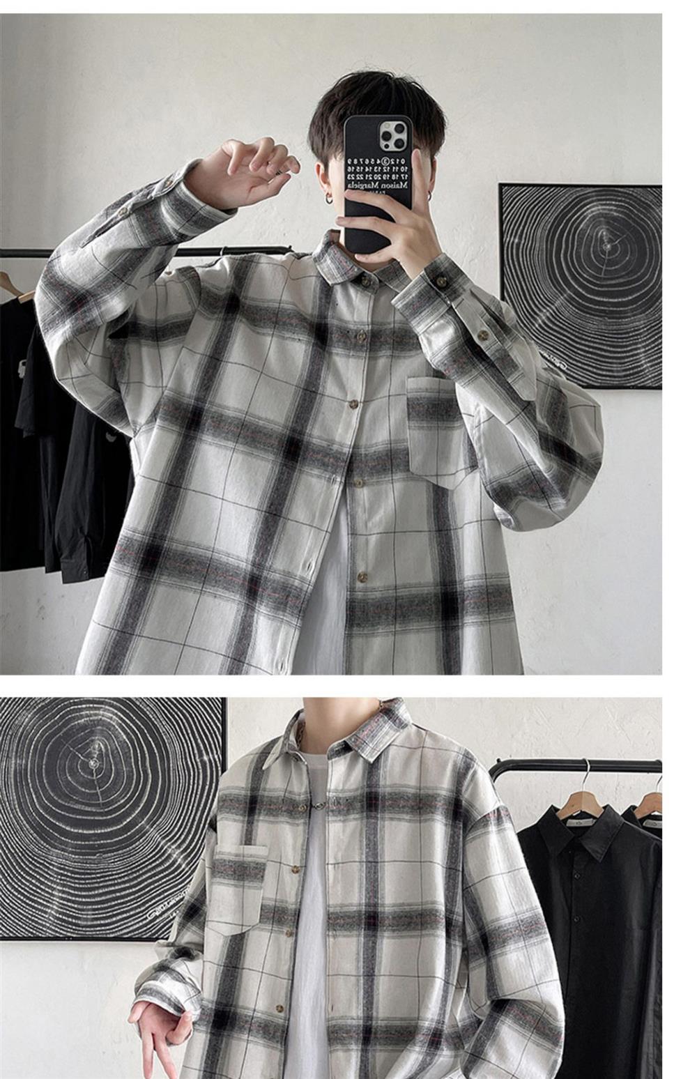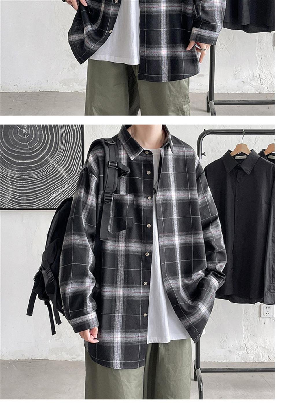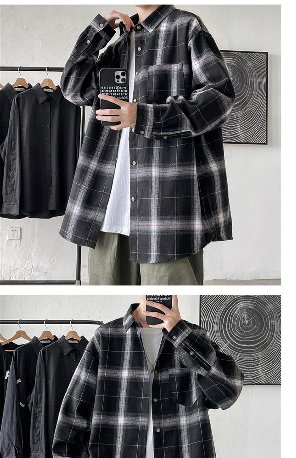 清仓捡漏春秋季2023潮流ins休闲薄款男外套港风宽松衬衣格...