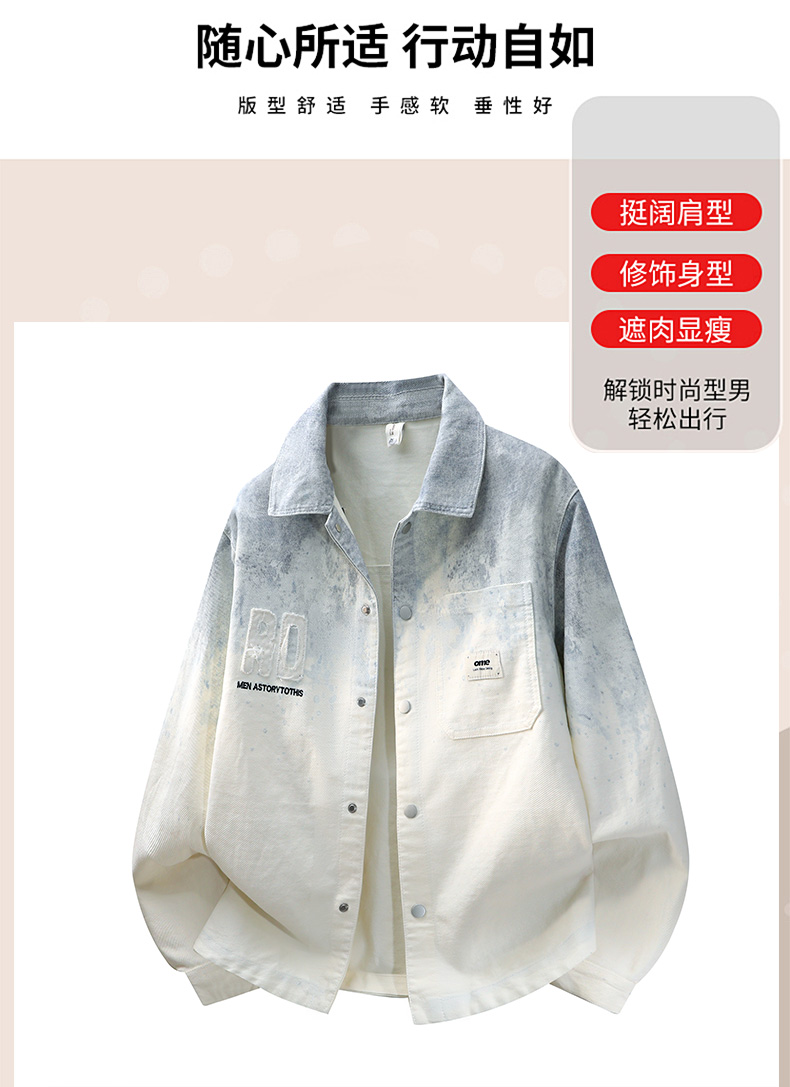 | 产品名称 : | 美式渐变色印花牛仔衬衫外套男春秋季时尚潮流青少年长袖衬衣男装 |