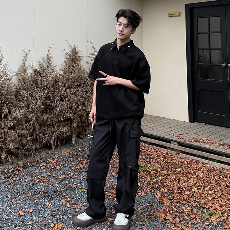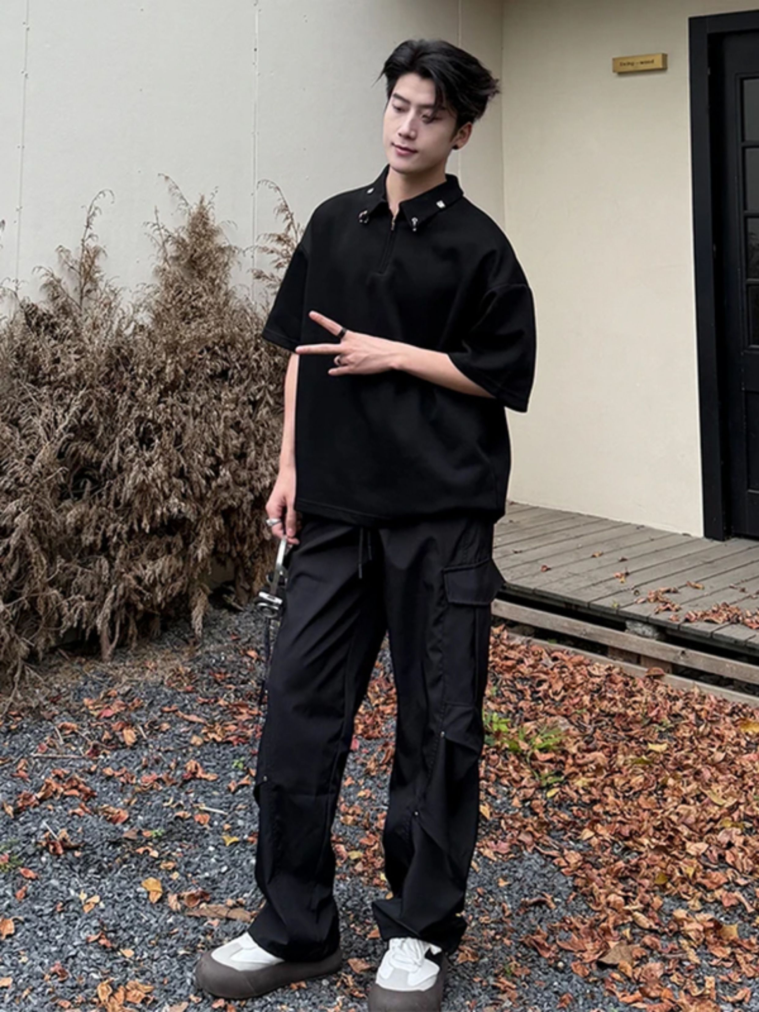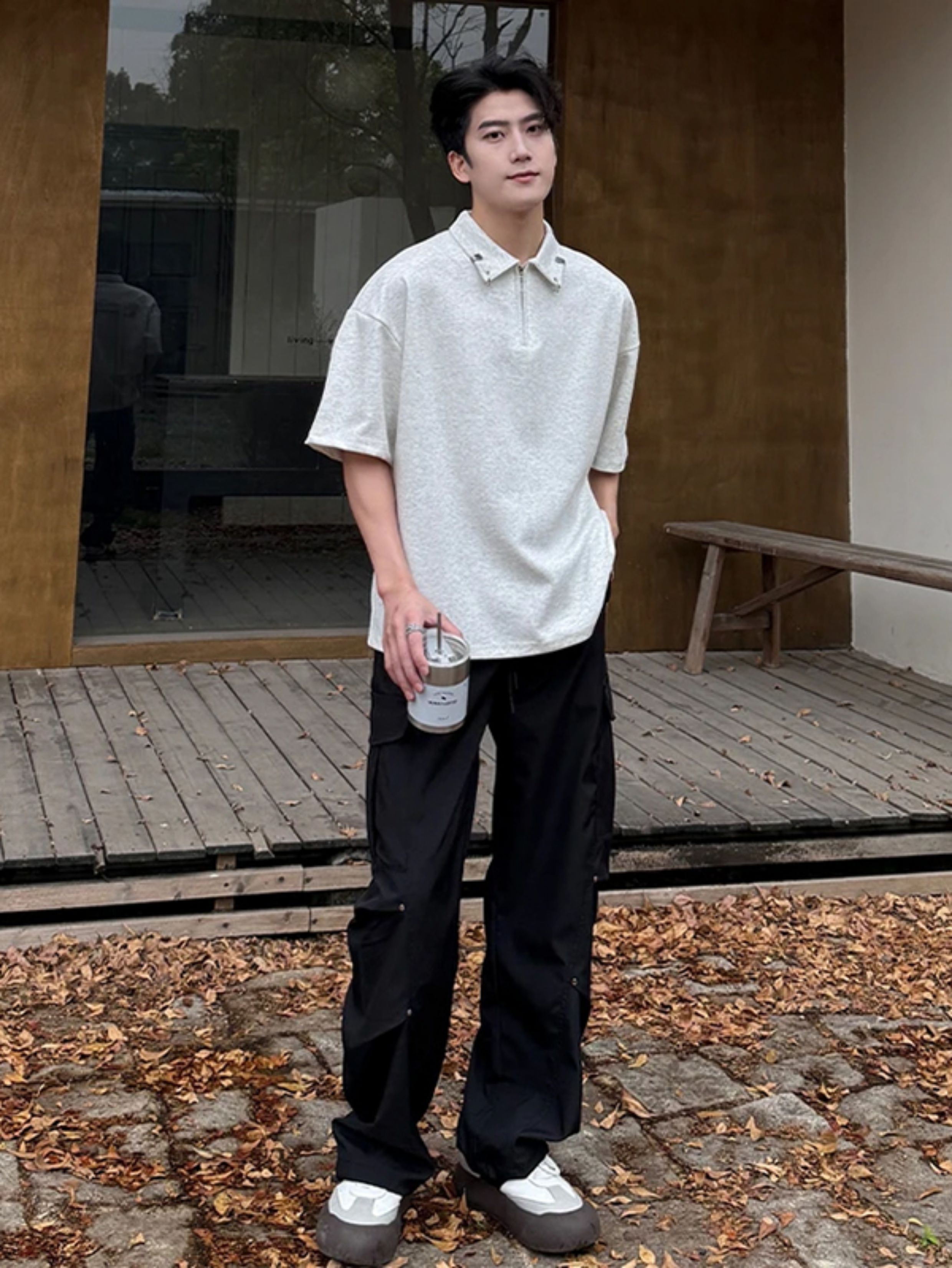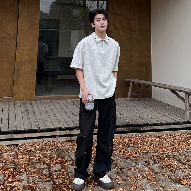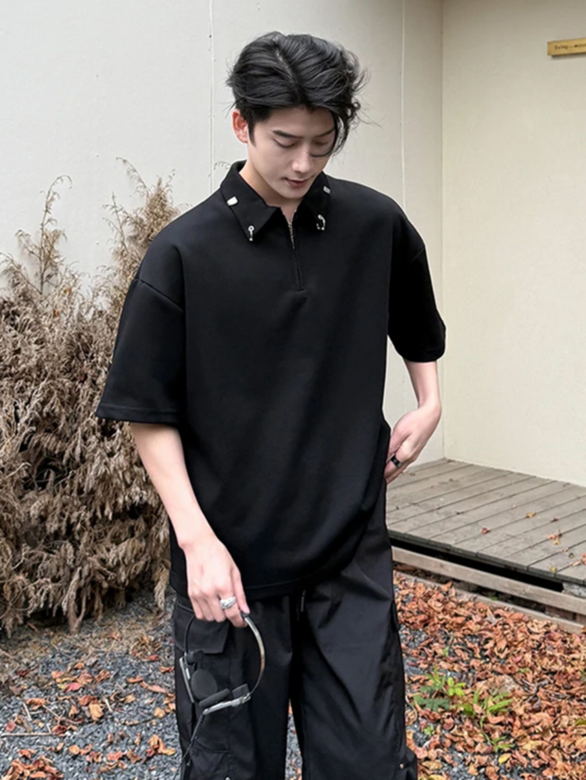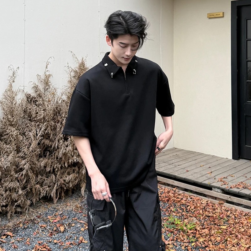 | 产品名称 : | 金属扣半拉链t恤男款美式高街短袖polo衫潮牌320g重磅正肩半截袖 |