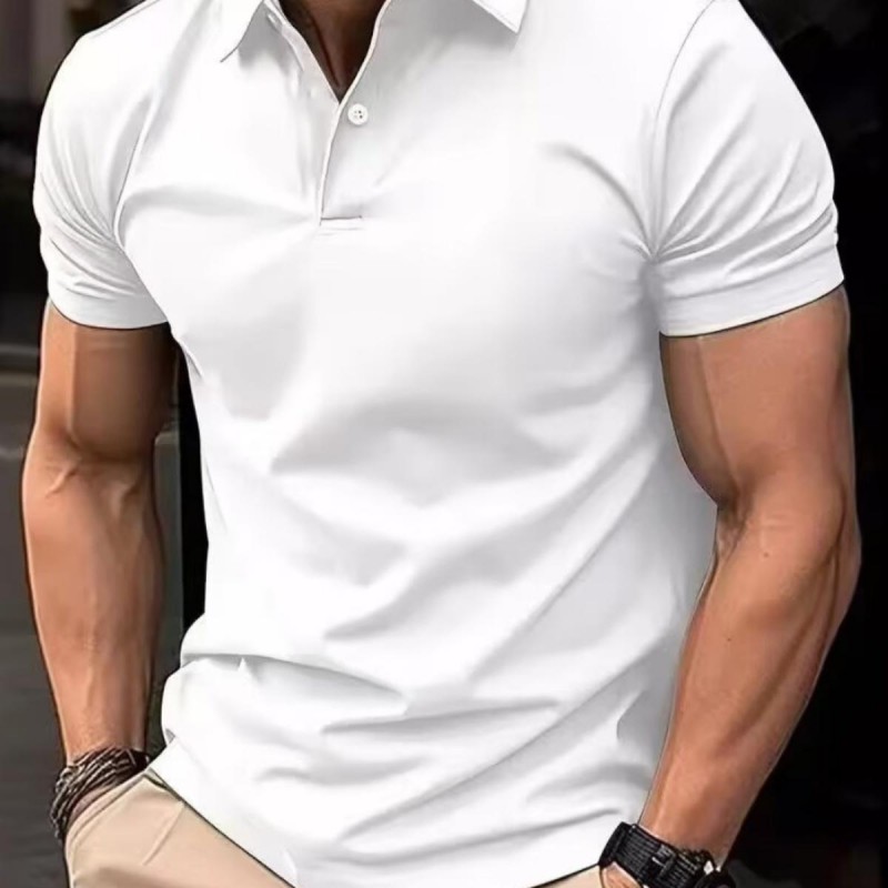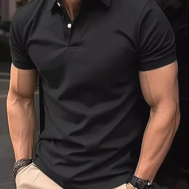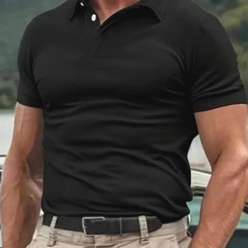 美式冰丝棉纯色polo衫肌肉男修身弹力短袖翻领工装t恤紧袖保...