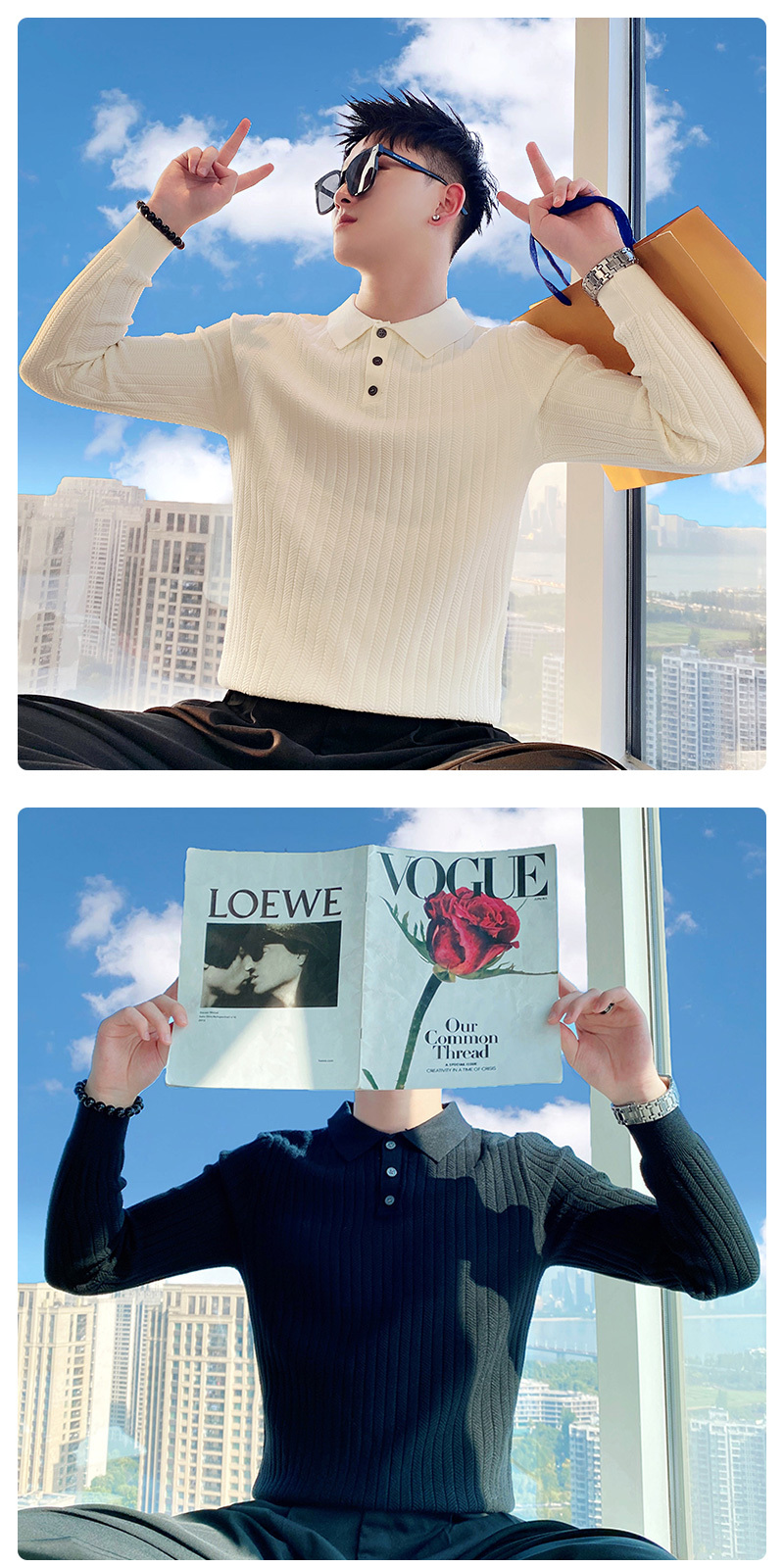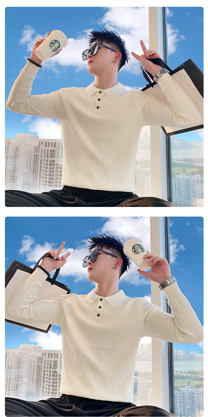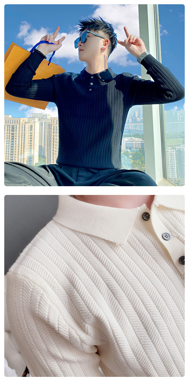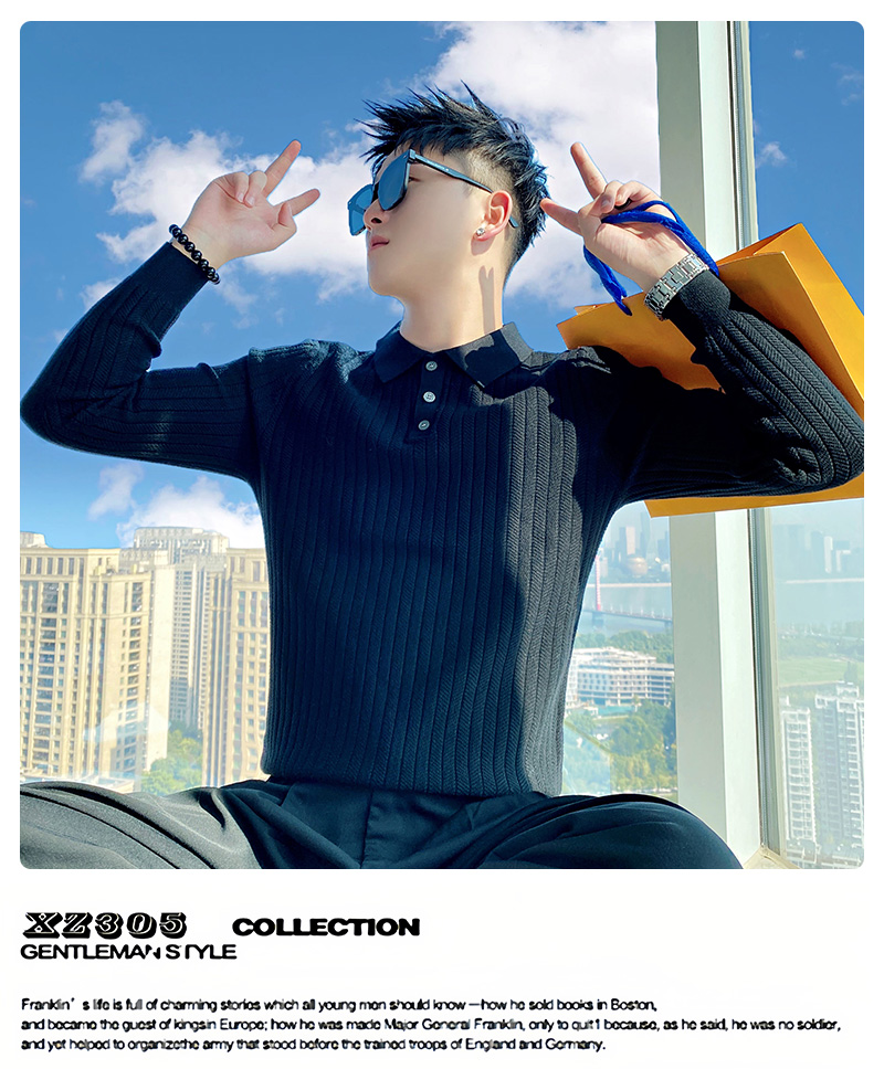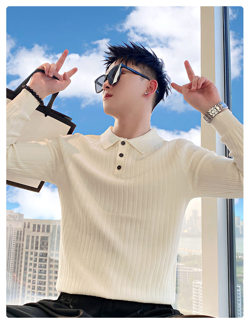 | 产品名称 : | 设计感翻领毛衣休闲潮流男士针织衫高级春秋新款男式慵懒内搭上衣 |