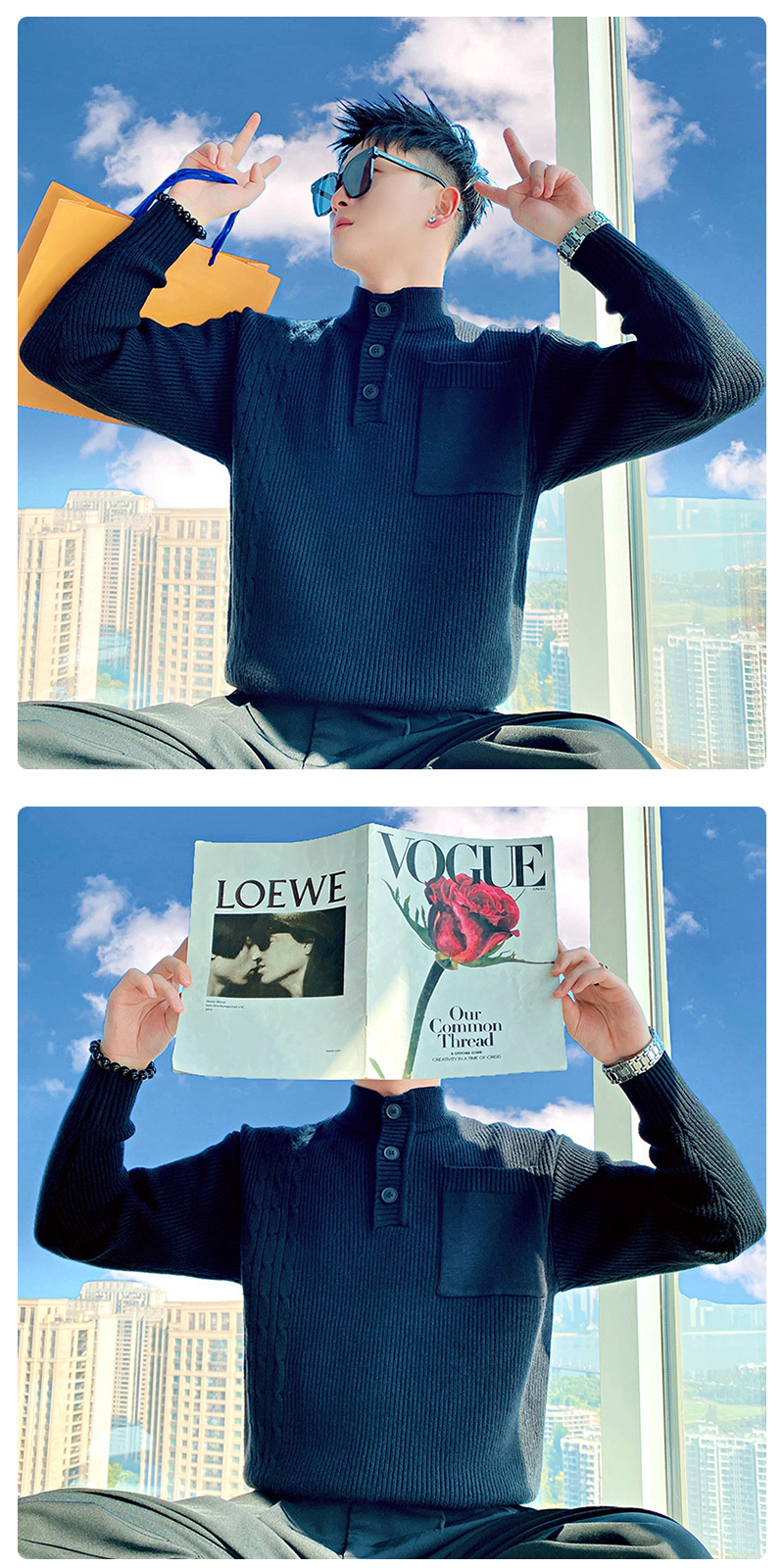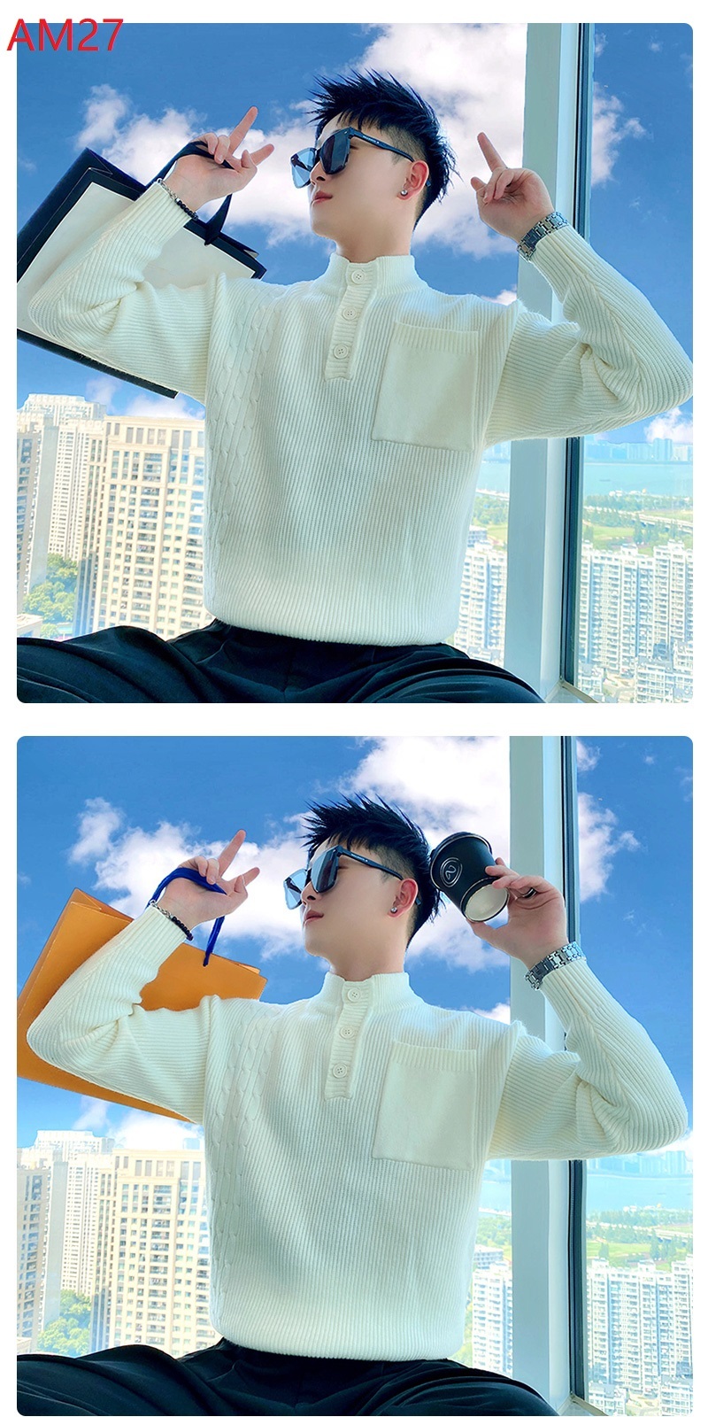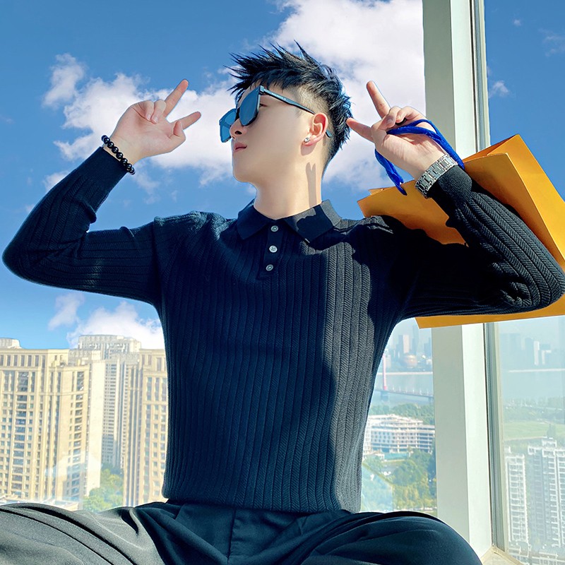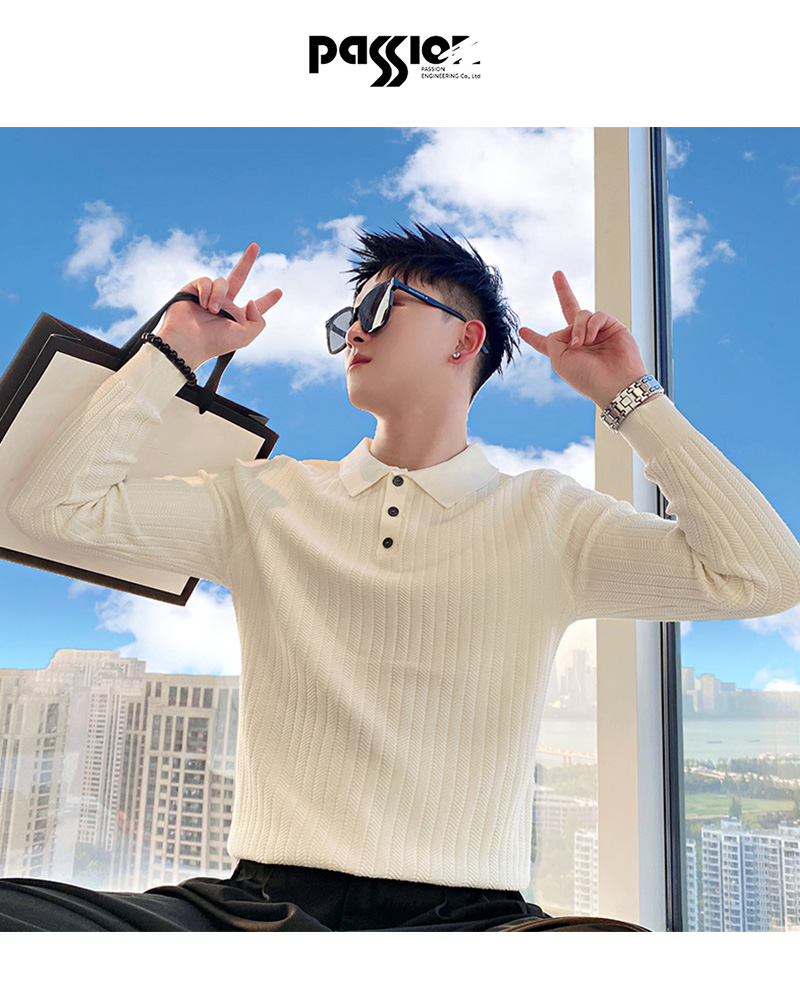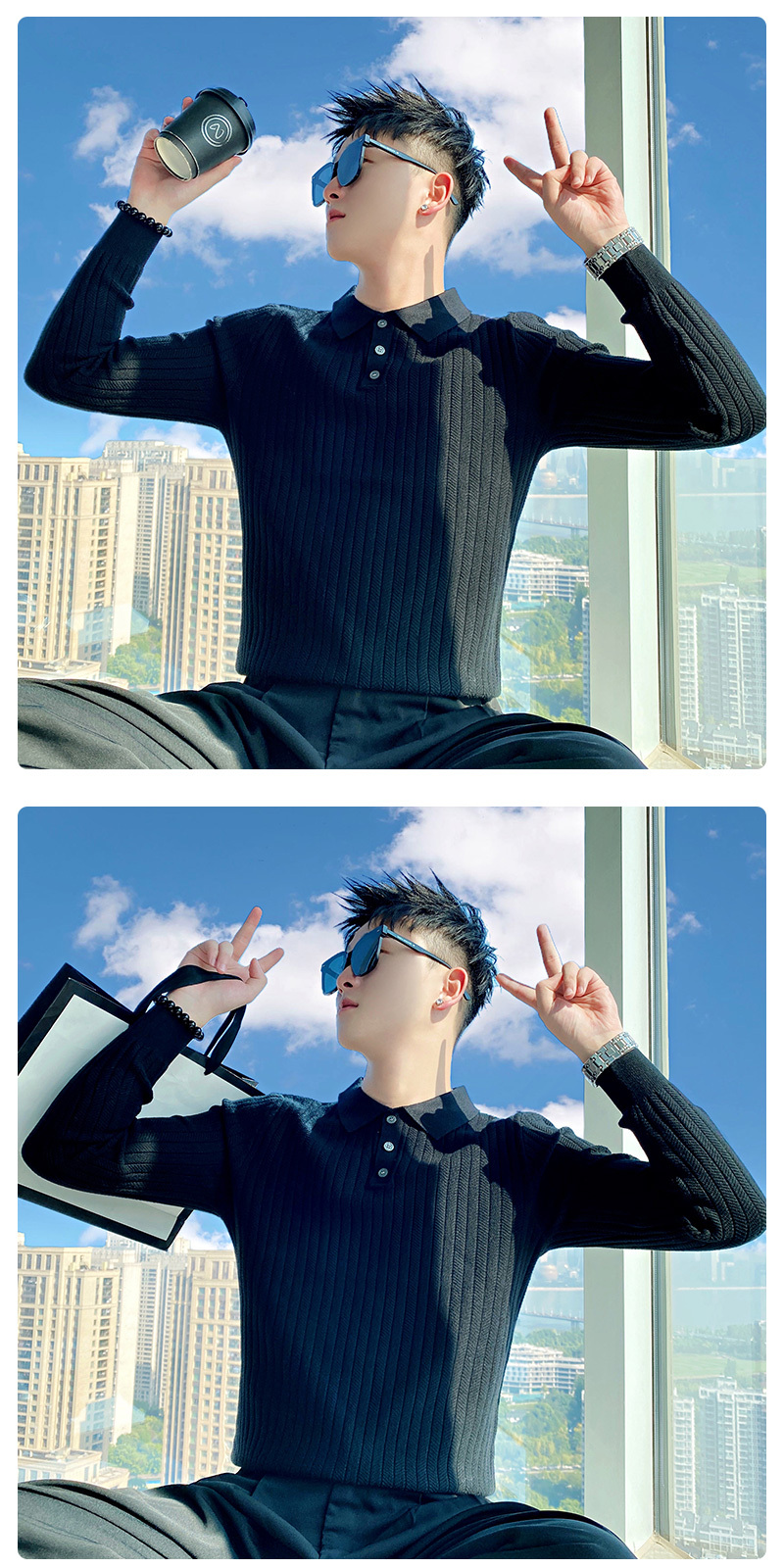 | 产品名称 : | 设计感翻领毛衣休闲潮流男士针织衫高级春秋新款男式慵懒内搭上衣 |