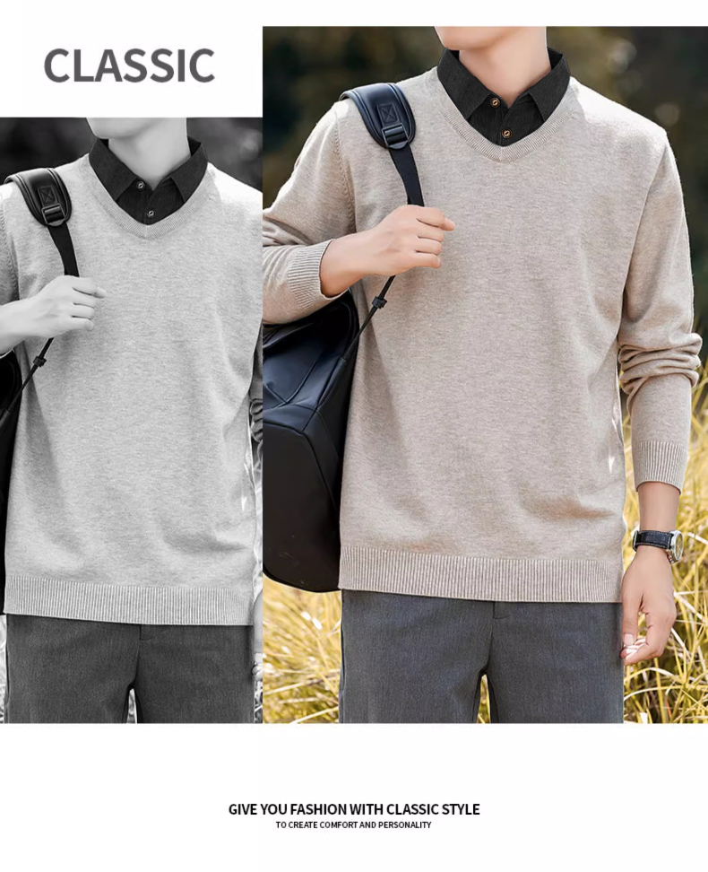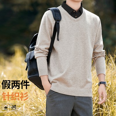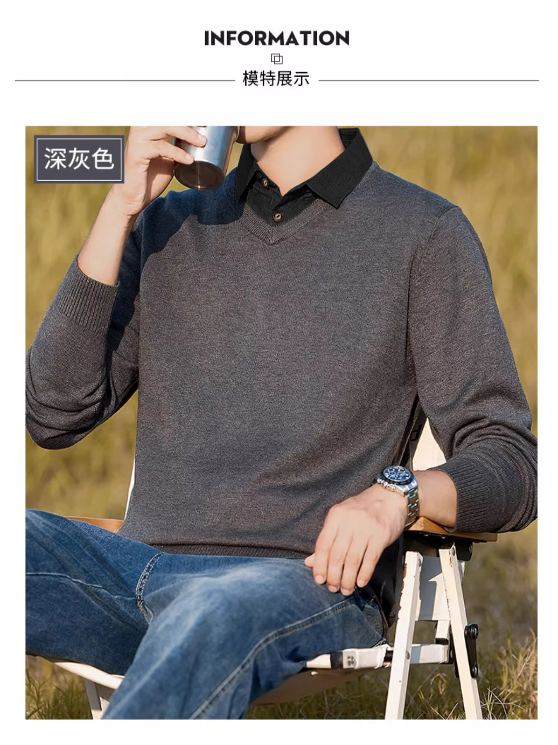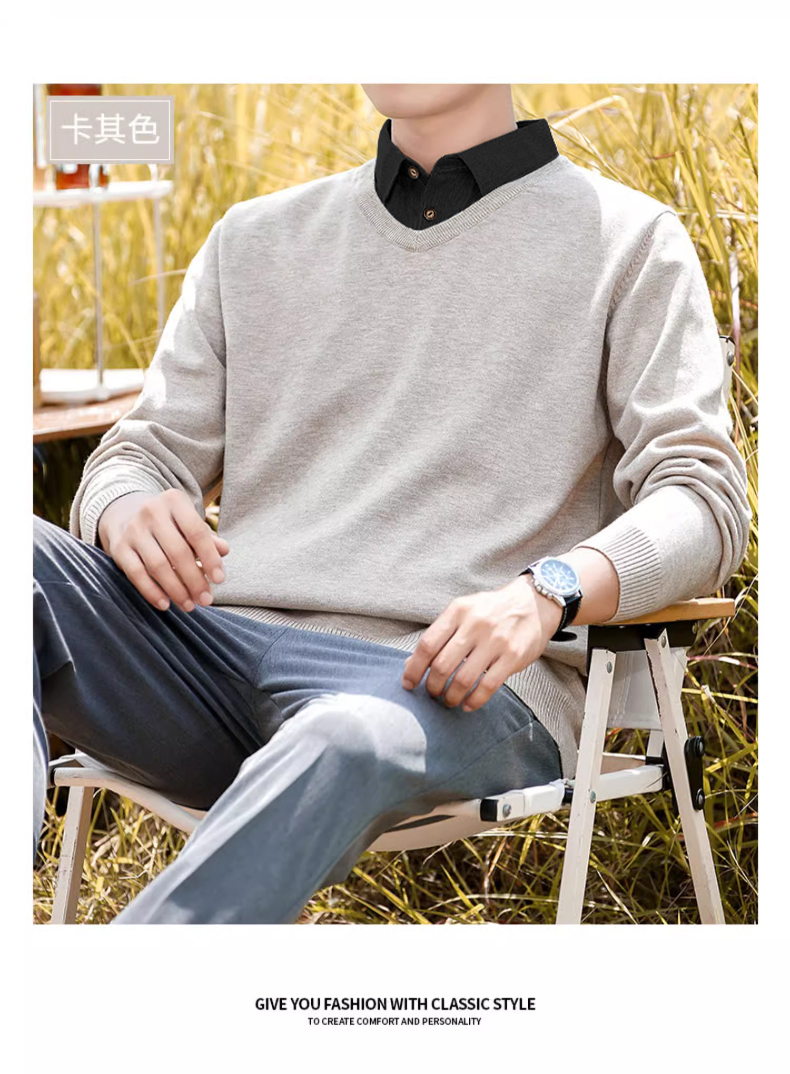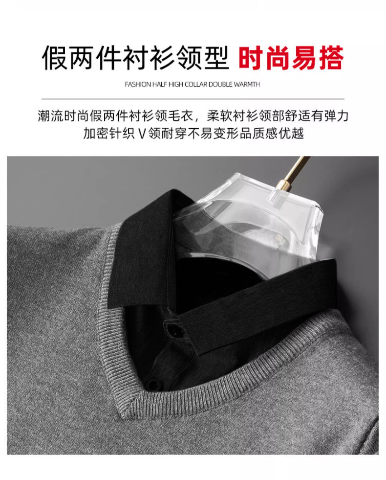 | 产品名称 : | 加绒假两件针织衫男士秋冬季长袖休闲衬衫领毛衣2025百搭套头上衣 |