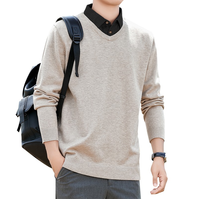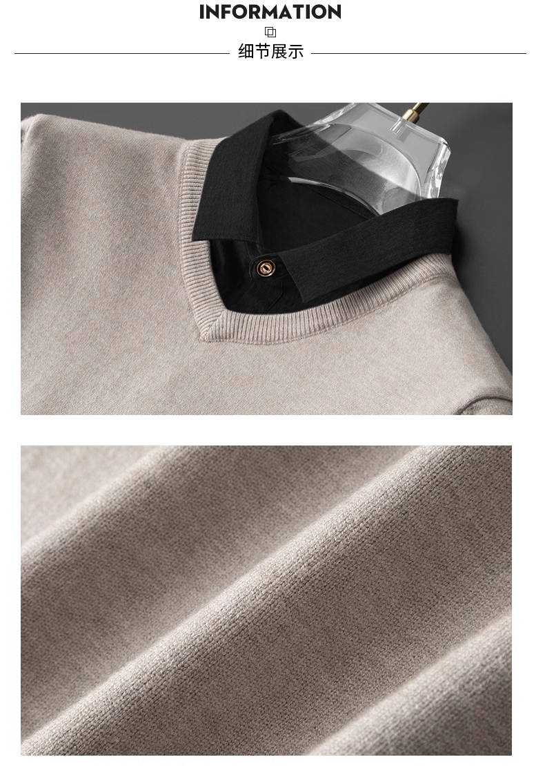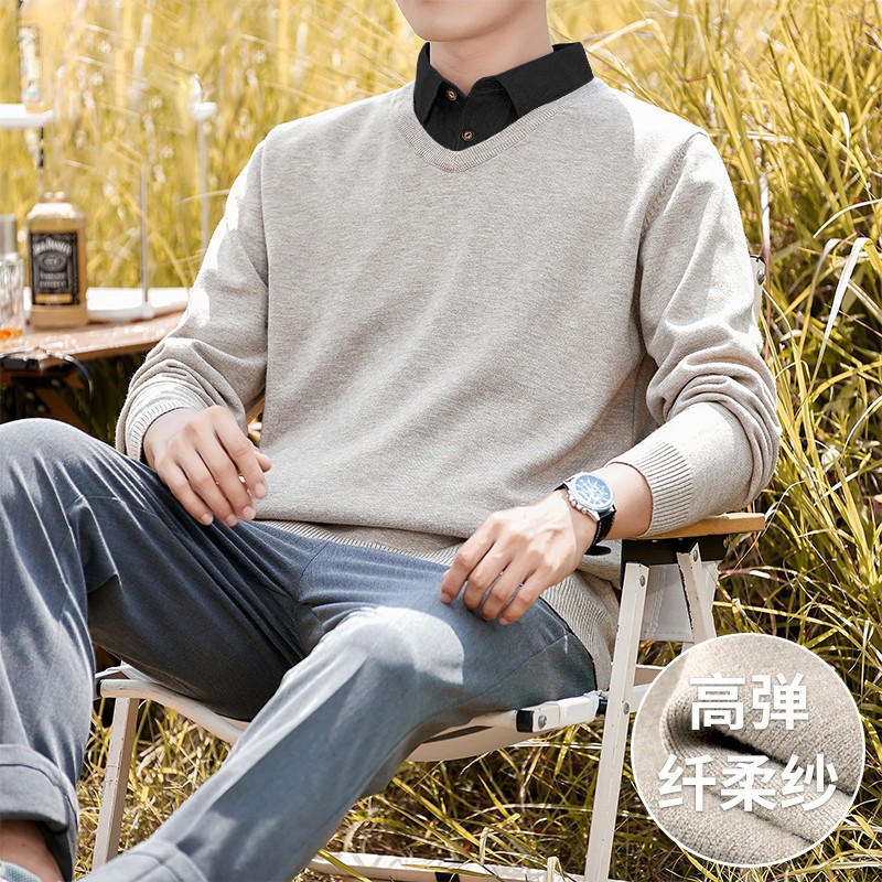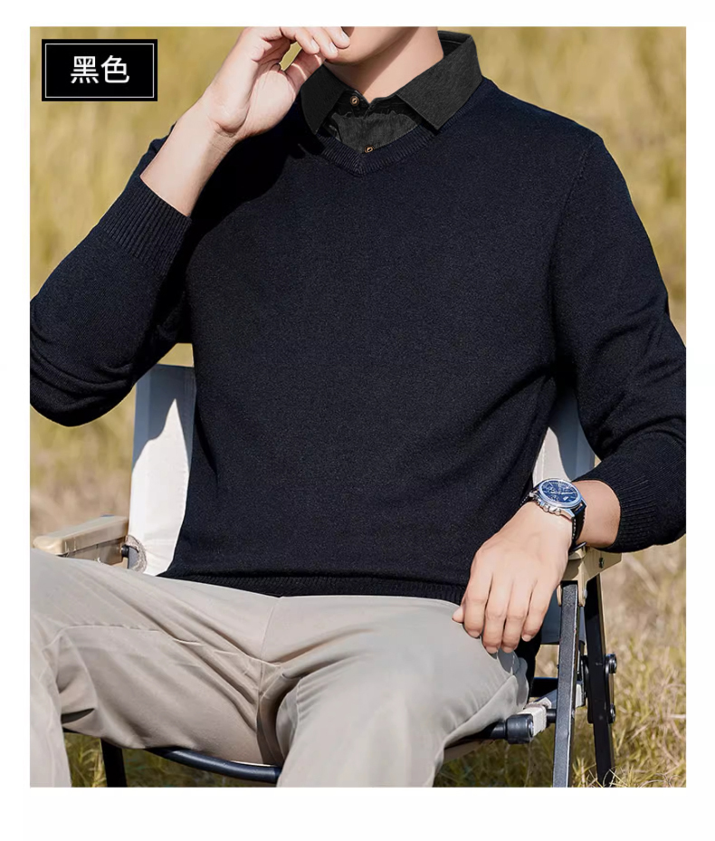 | 产品名称 : | 加绒假两件针织衫男士秋冬季长袖休闲衬衫领毛衣2025百搭套头上衣 |