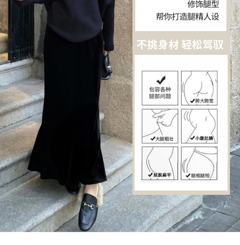 | 产品名称 : | 黑色鱼尾裙女秋冬长裙2025新款加绒高腰a字包臀裙显瘦针织半身裙 |