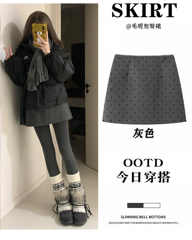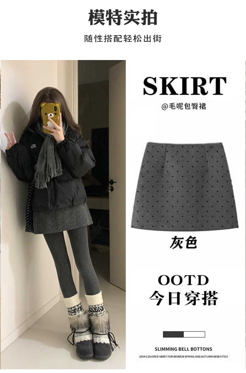 | 产品名称 : | 灰色毛呢波点半身裙女秋季冬天小个子a字包臀短裙子格雷miu系穿搭 |