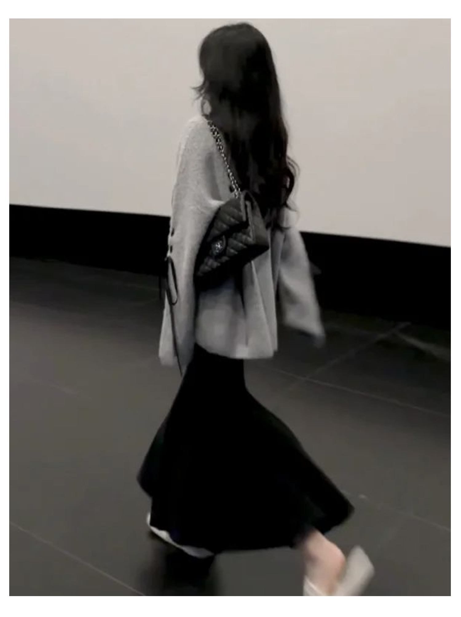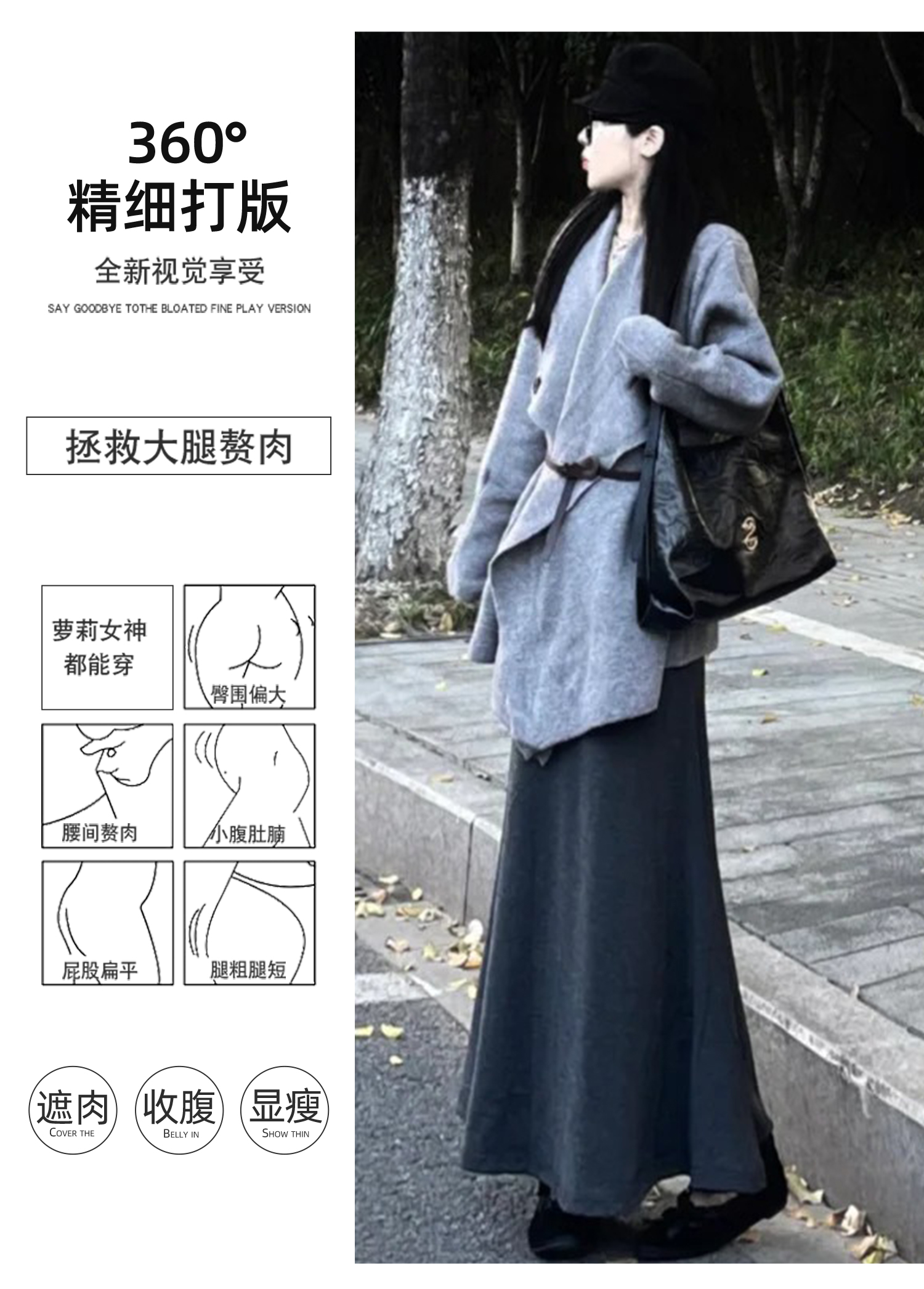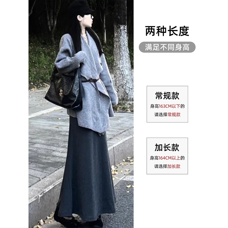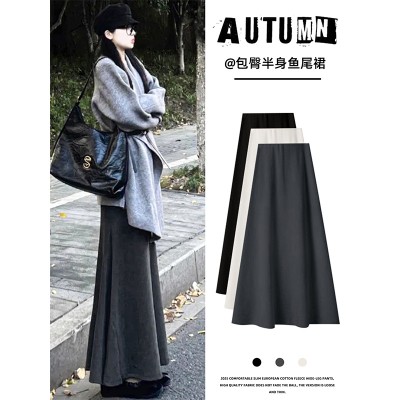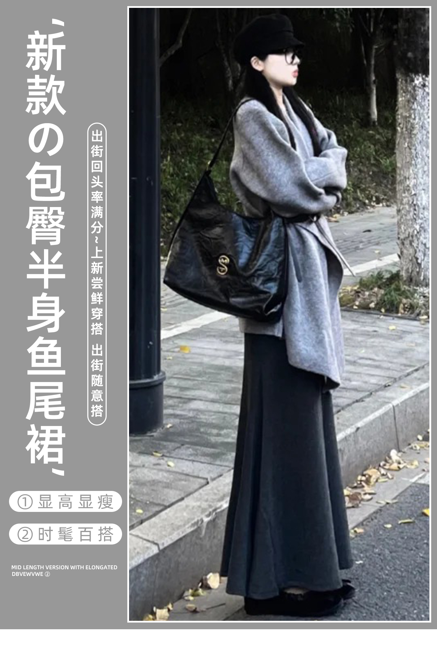 | 产品名称 : | 深灰色鱼尾裙女秋2025新款高腰显瘦a字半身长裙小个子针织包臀裙 |