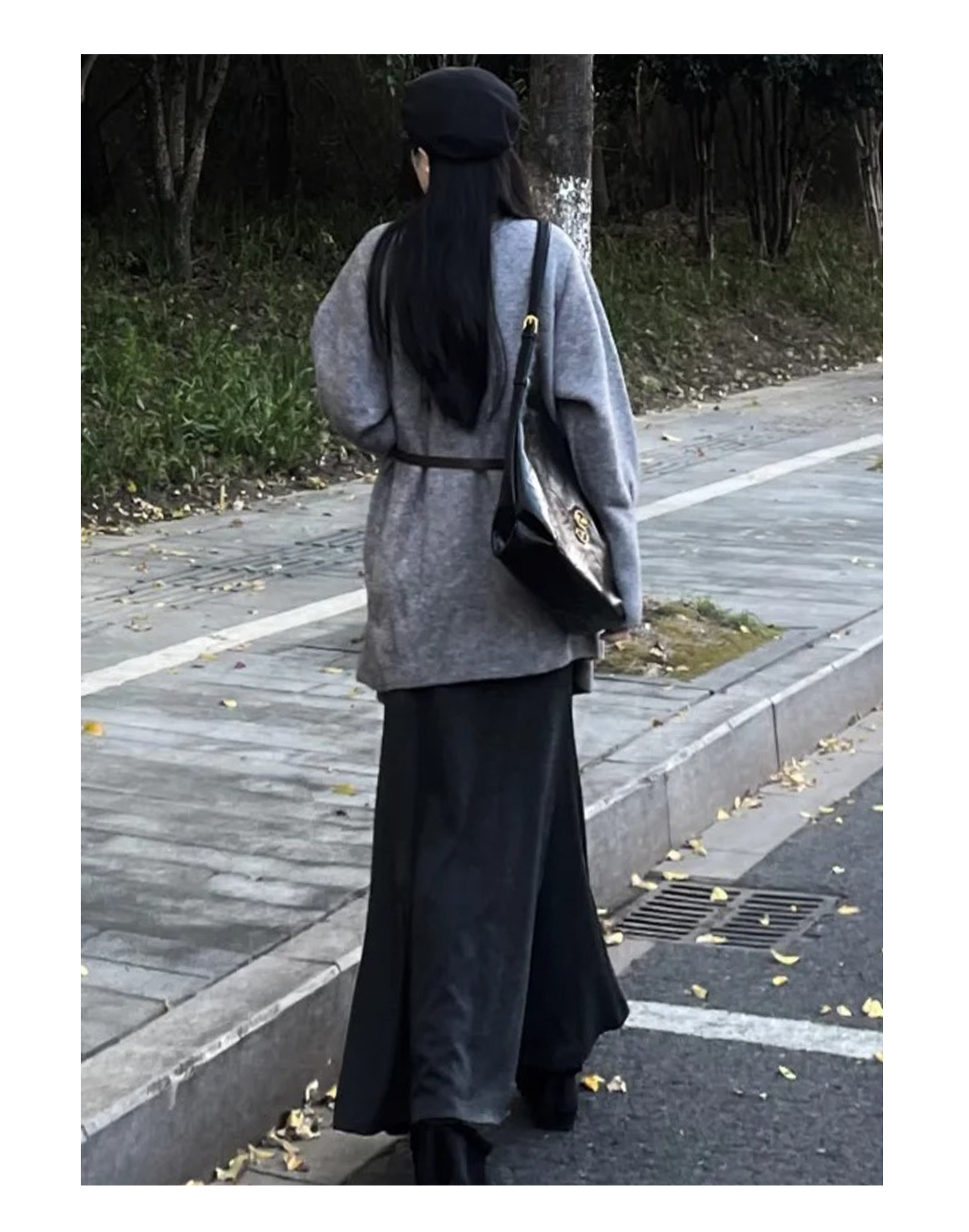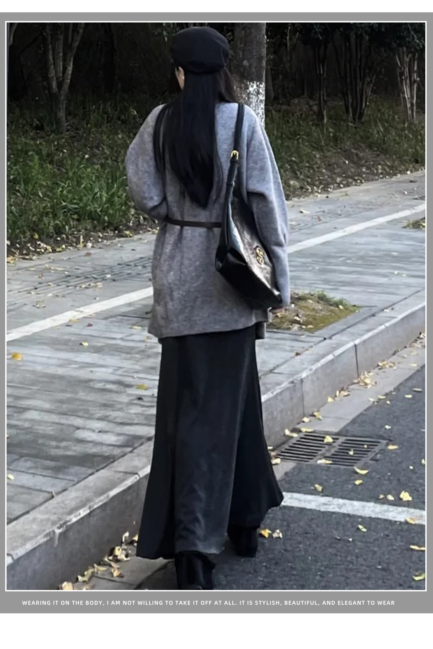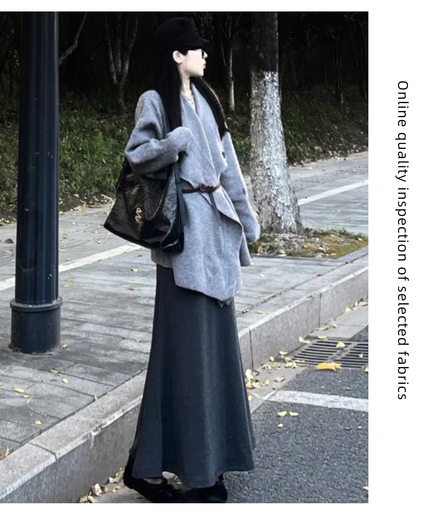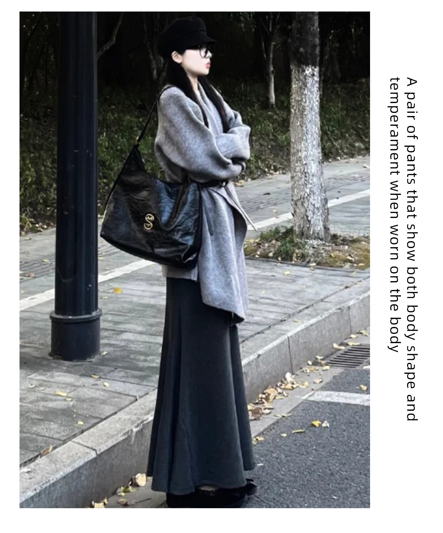 | 产品名称 : | 深灰色鱼尾裙女秋2025新款高腰显瘦a字半身长裙小个子针织包臀裙 |