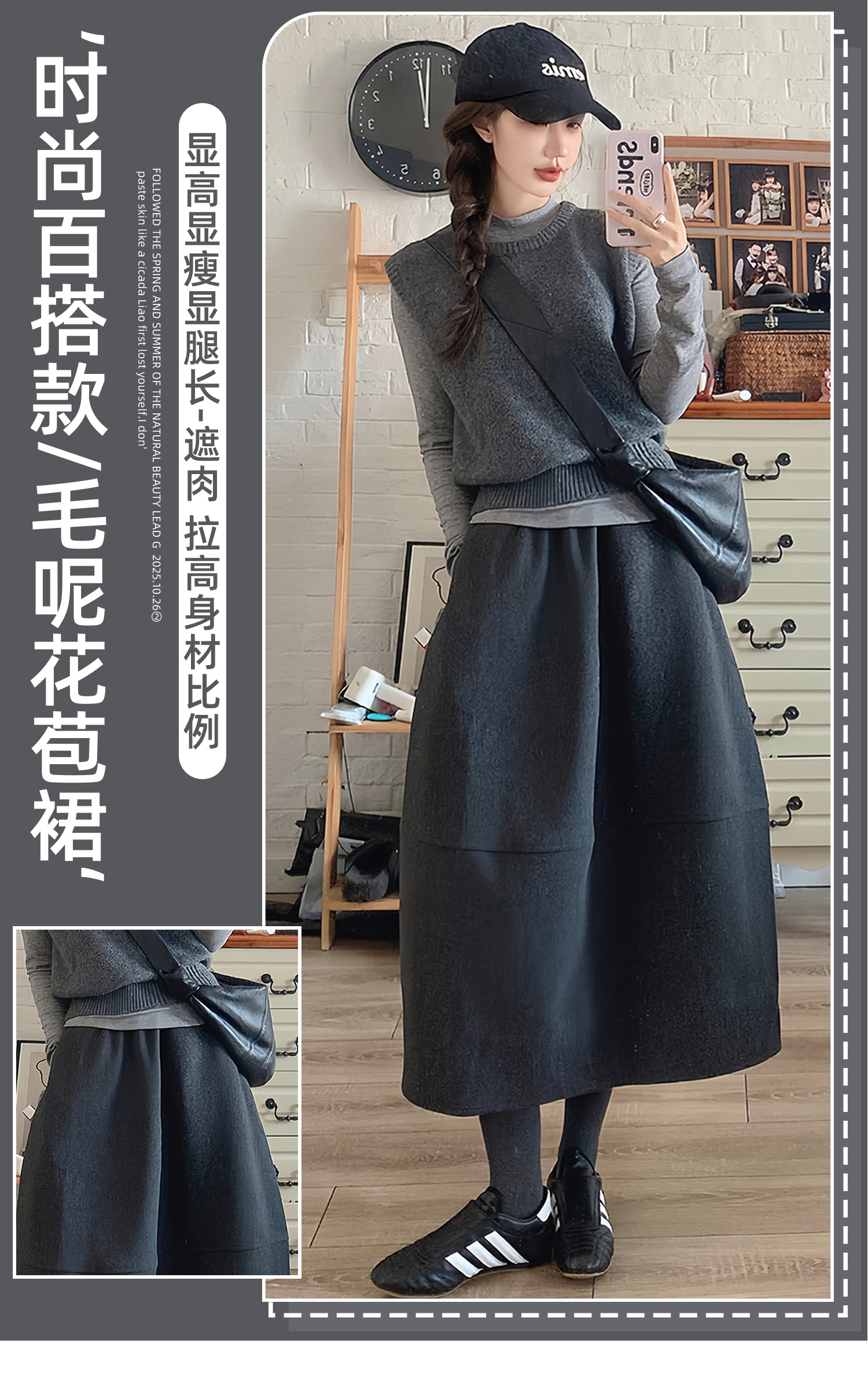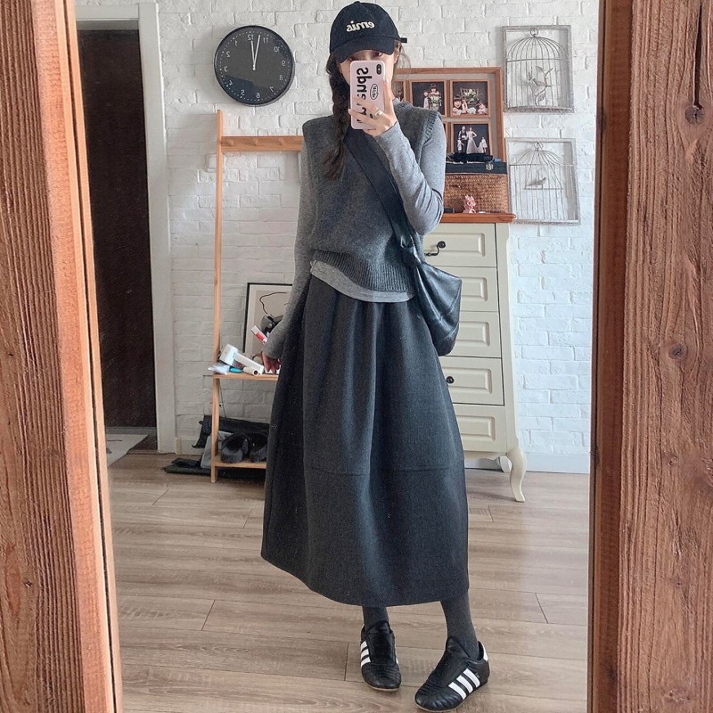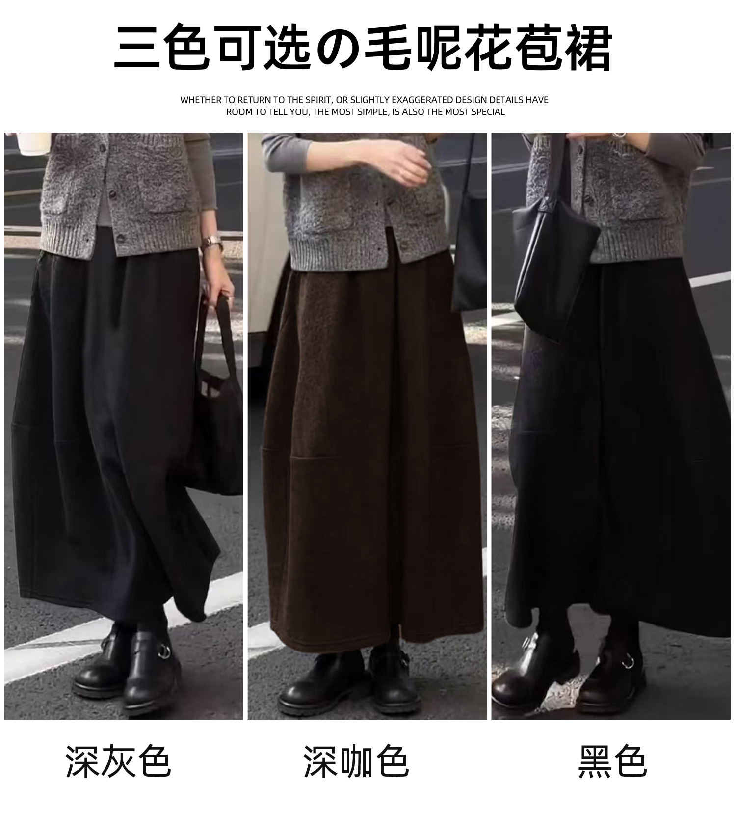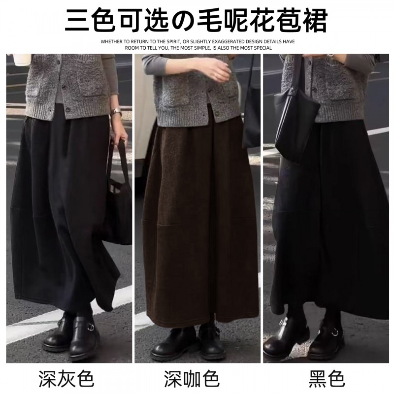 | 产品名称 : | 深灰色加厚花苞半身裙女秋冬2025新款毛呢松紧腰遮垮显瘦中长伞裙 |