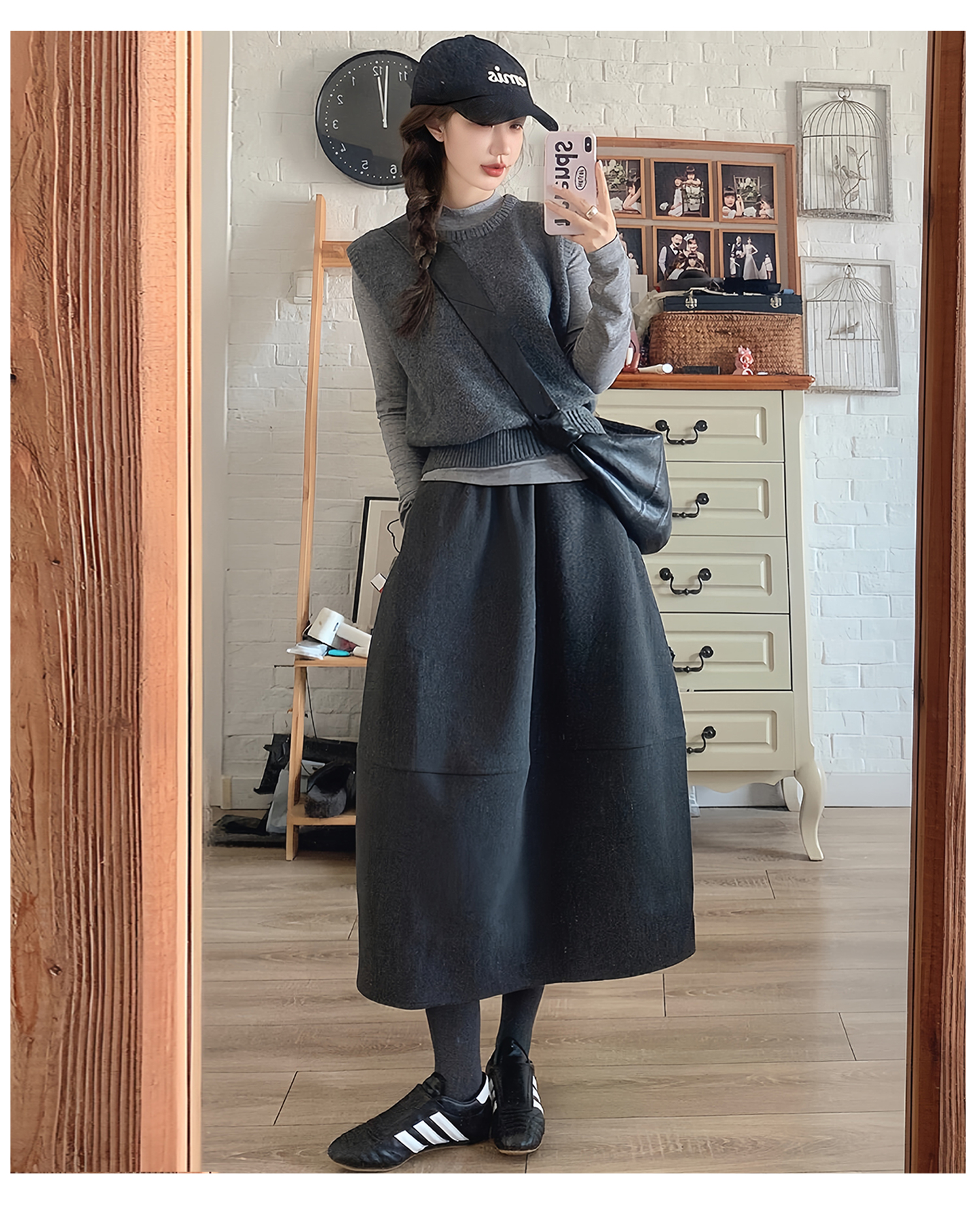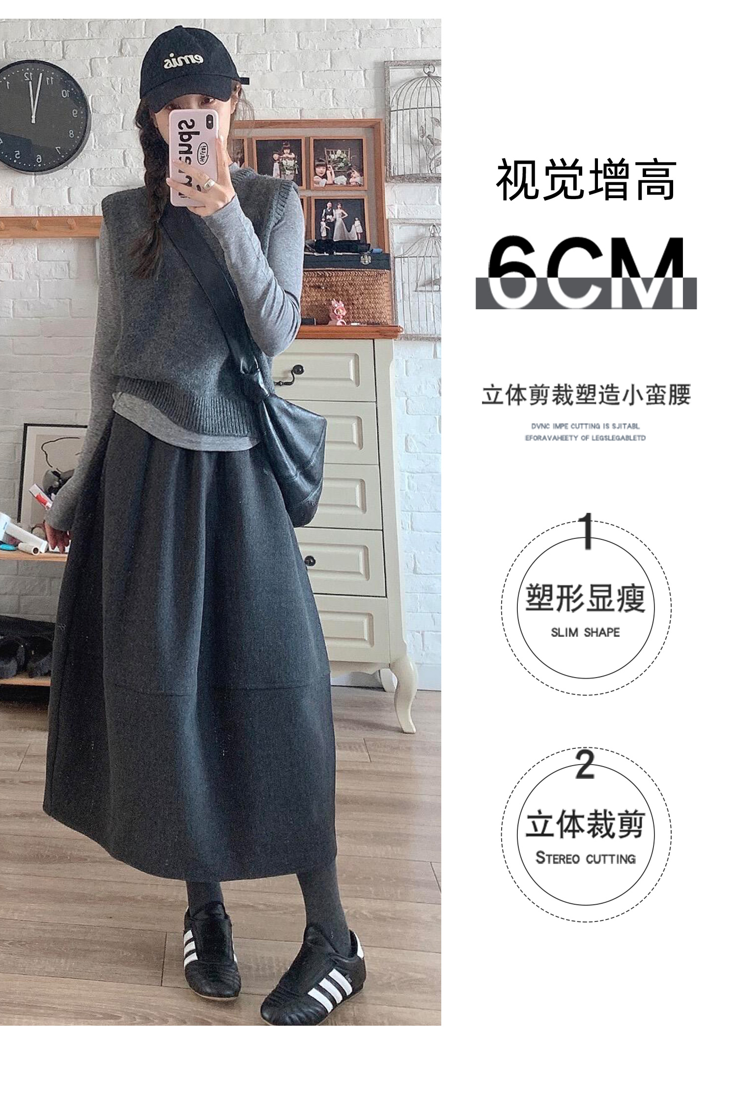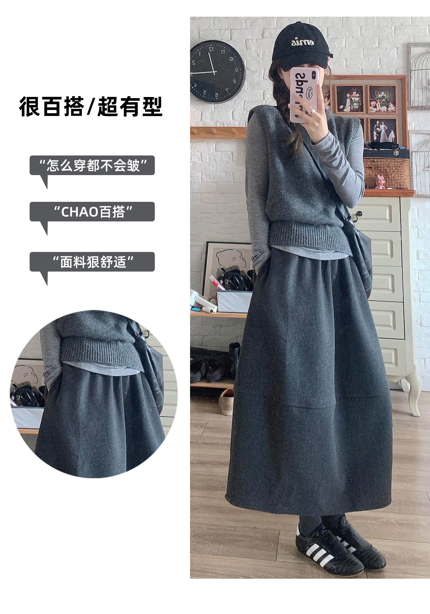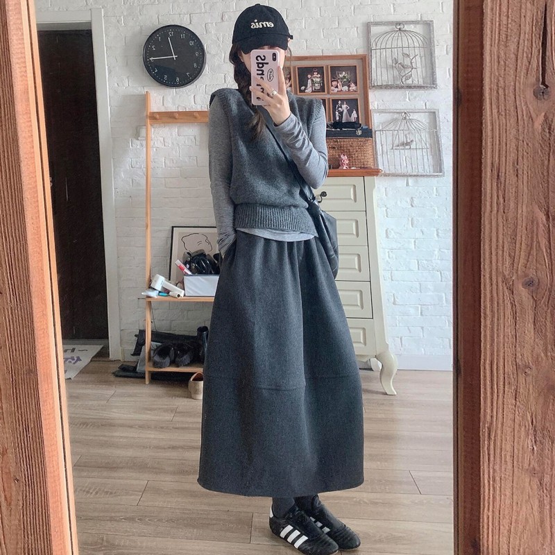 | 产品名称 : | 深灰色加厚花苞半身裙女秋冬2025新款毛呢松紧腰遮垮显瘦中长伞裙 |