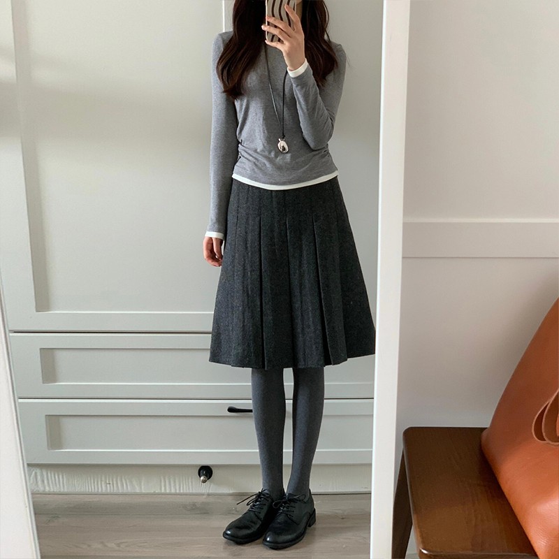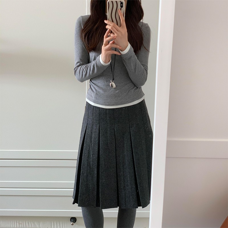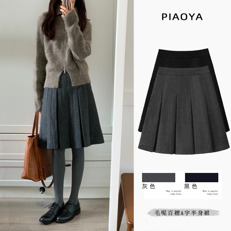 | 产品名称 : | 灰色毛呢百褶裙女秋冬新款高腰韩版中裙高级感通勤显瘦a字半身裙 |