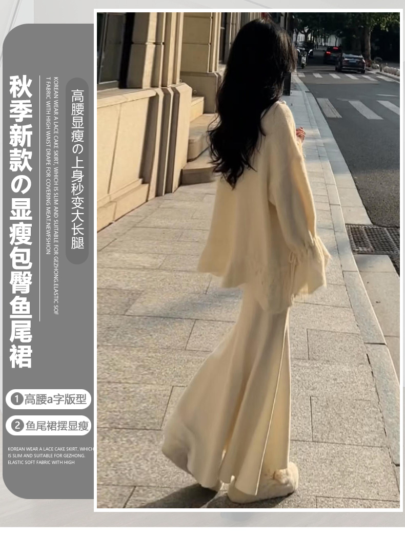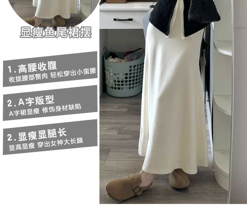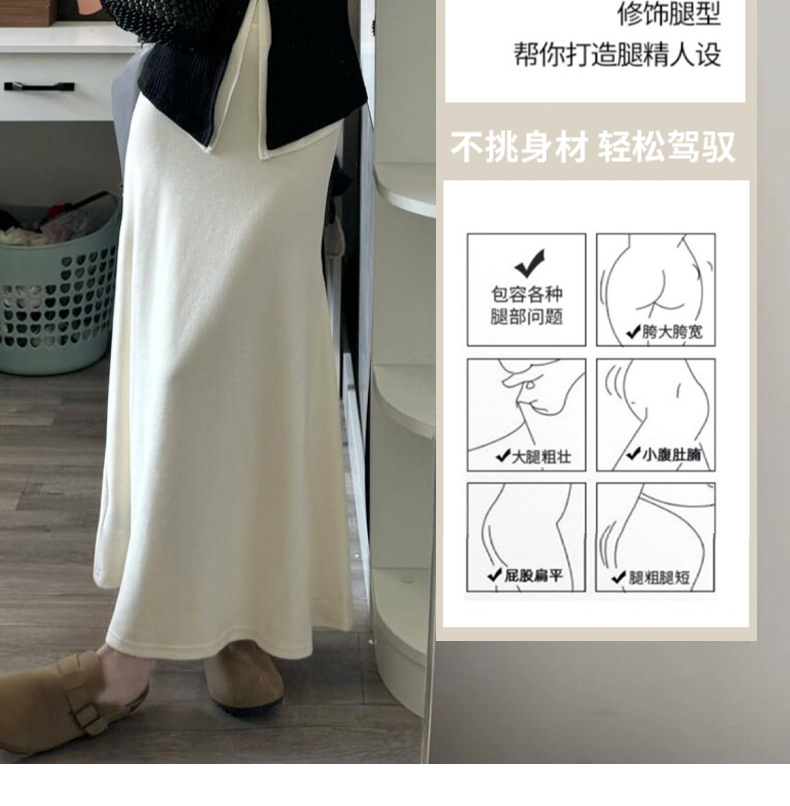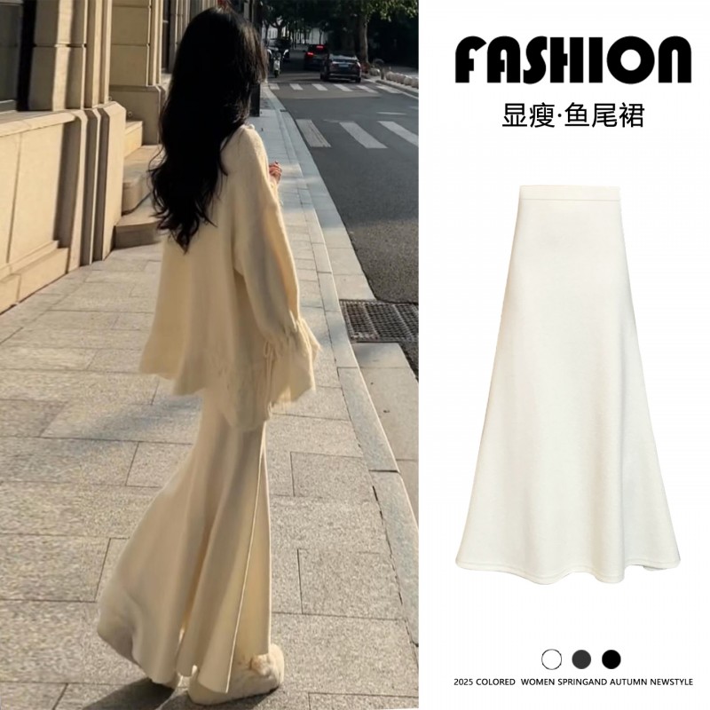| 产品名称 : | 白色鱼尾裙半身裙女秋冬2025新款高腰a字毛呢长裙显瘦针织包臀裙 |