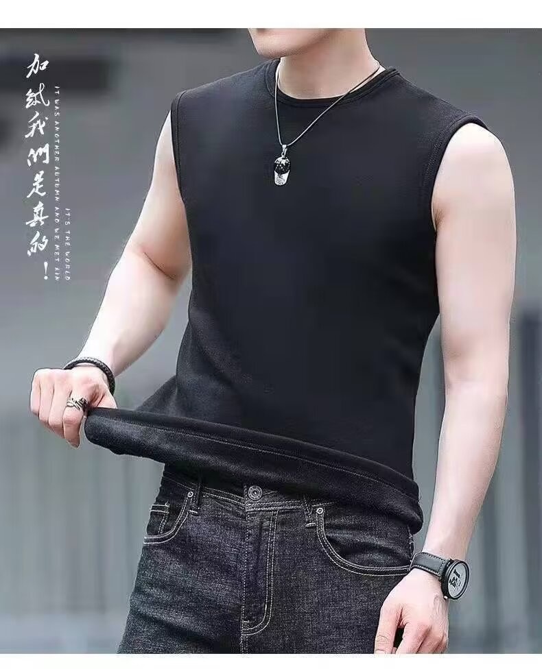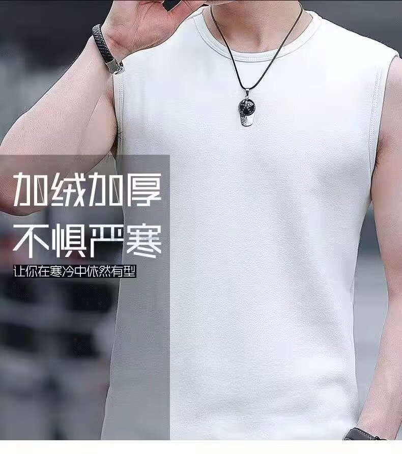 | 产品名称 : | 加绒大码保暖背心男修身秋冬款无袖T恤马夹内穿修身打底上衣男装 |